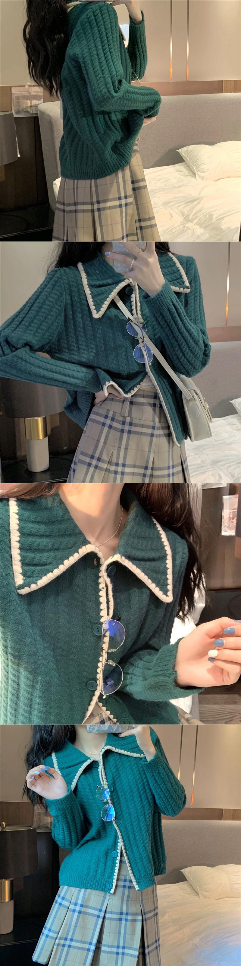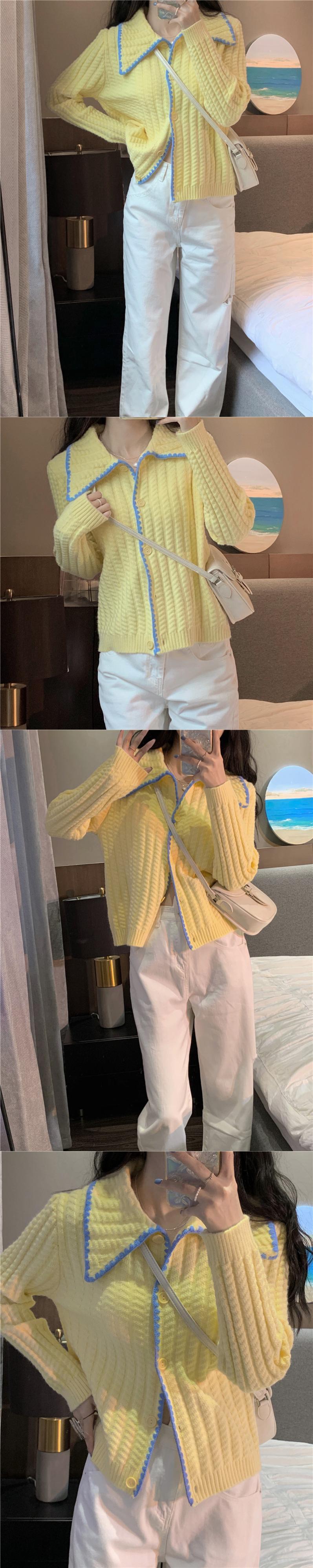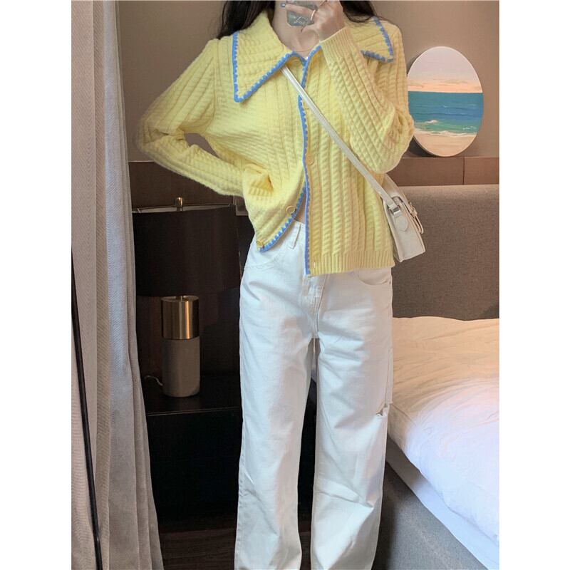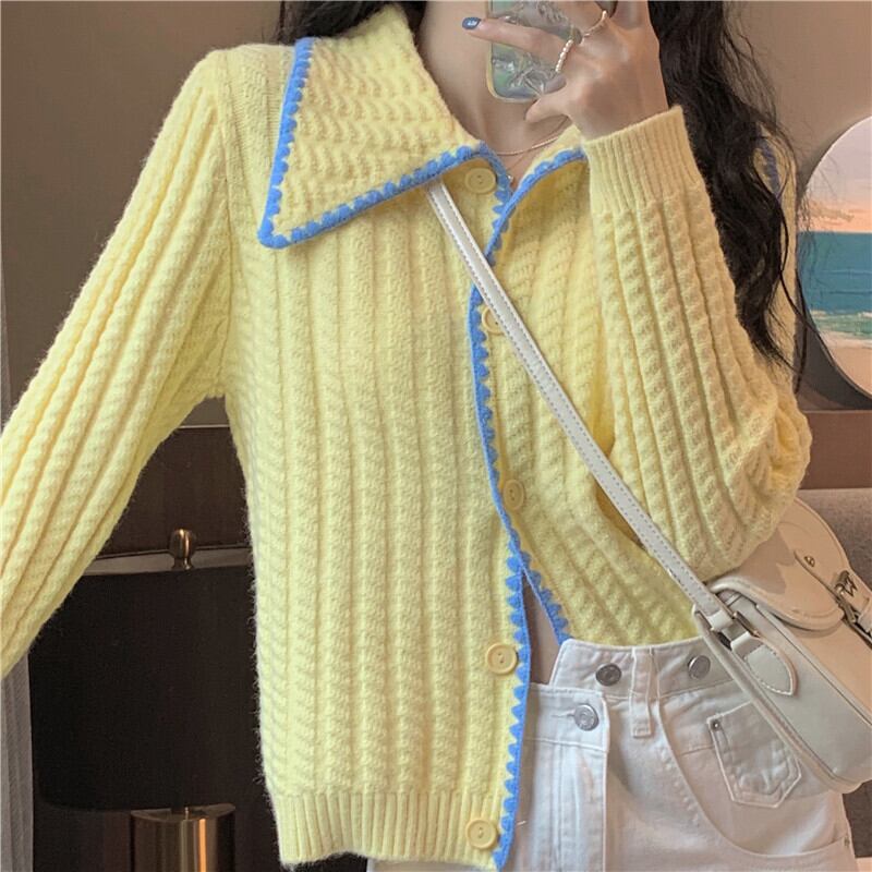 ブルーセーター オータムトップス カラーニットカーディガンジャケット ロング 秋物 萌量不足49785096097