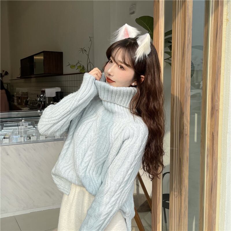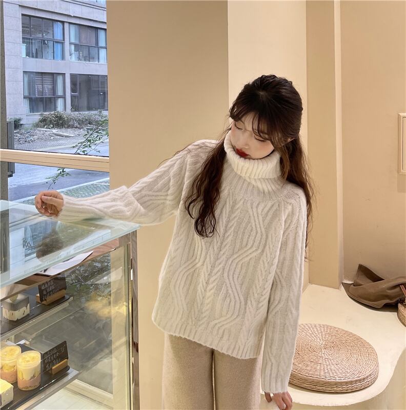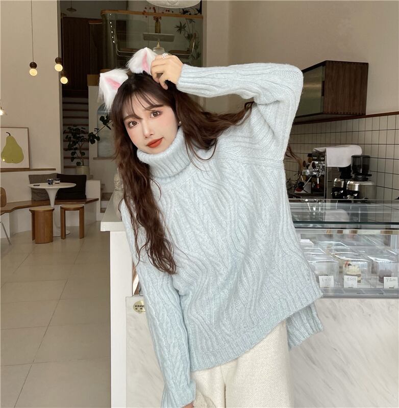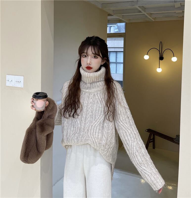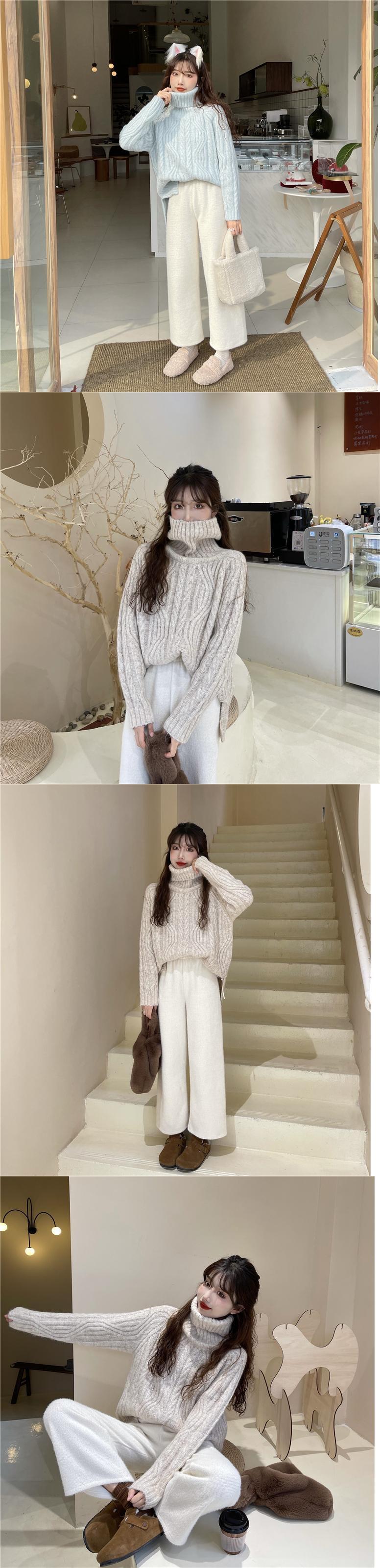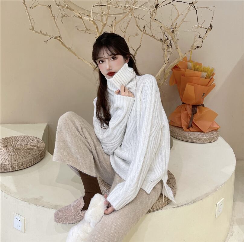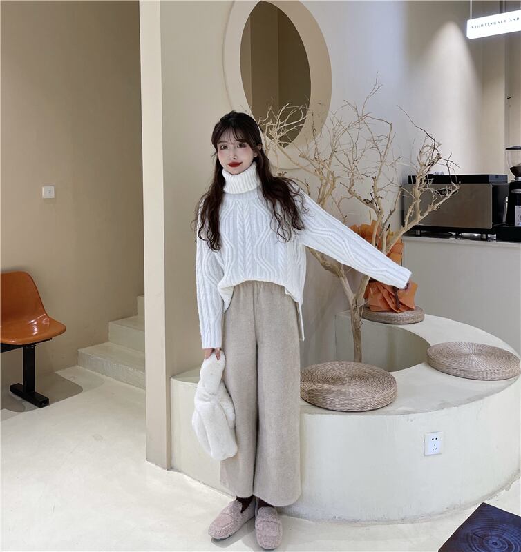 色:ミルクブルーのセーター,暖かいアプリコットセーター,白いセーター,白いズボン,シャンパンパンツ