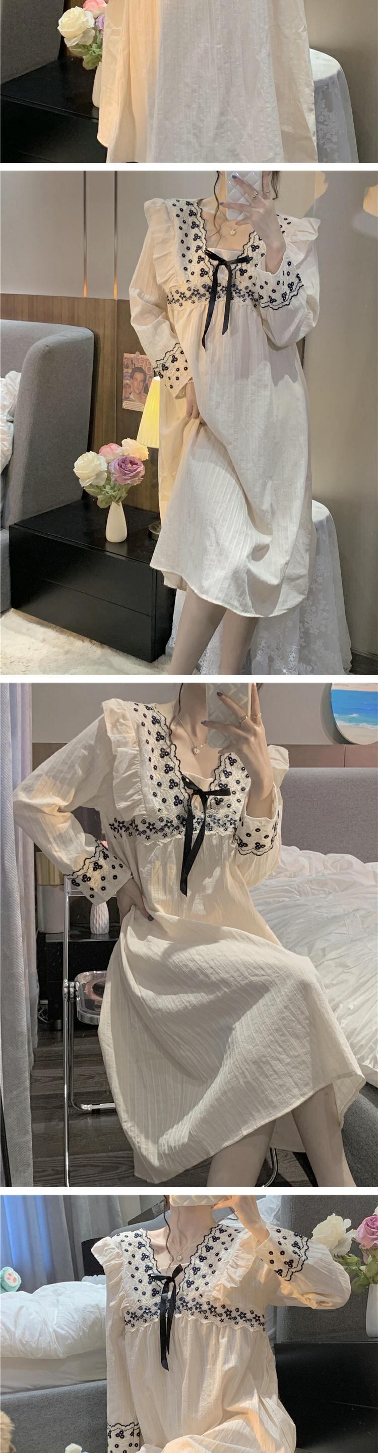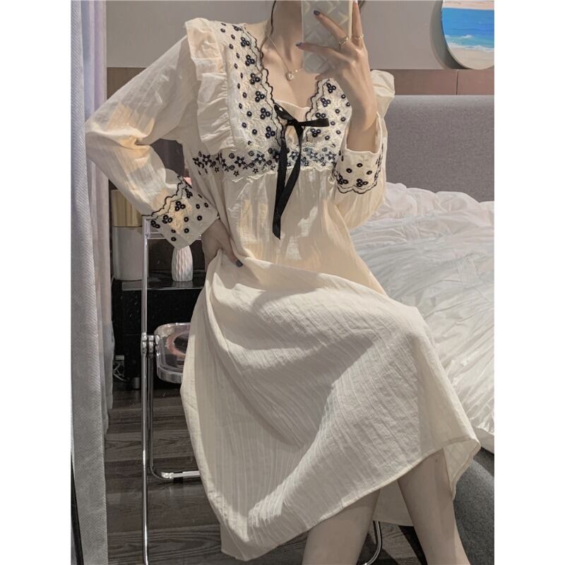 レースVネックレディースオータムスプリング ロング コットン 春物 秋物 ピュア 萌量不足8139769499