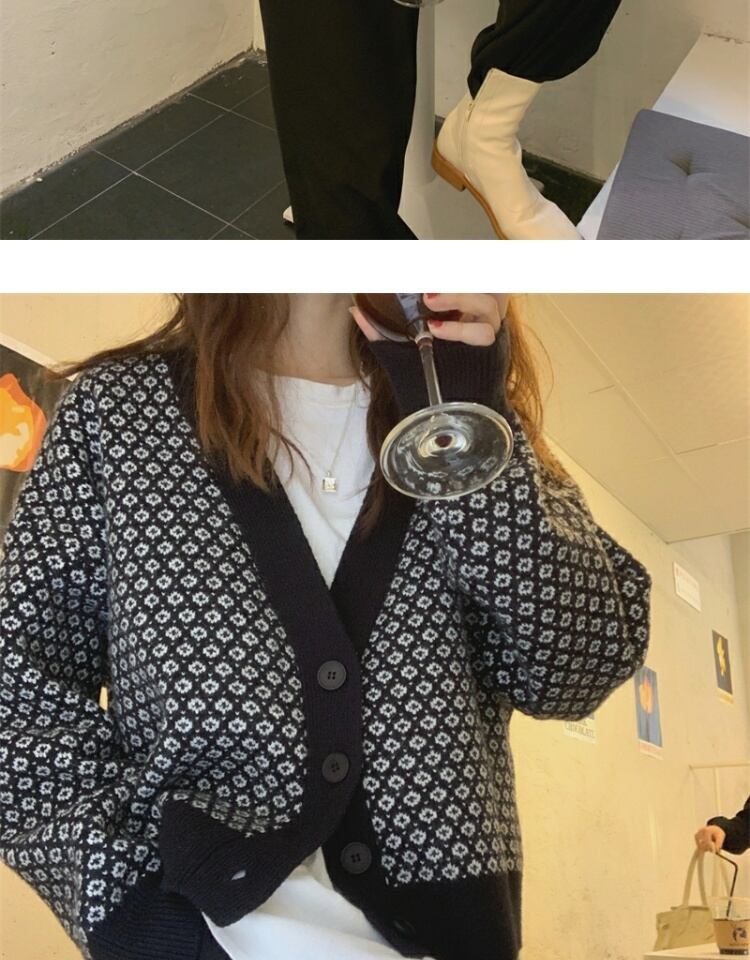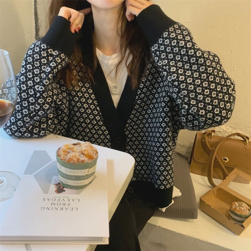 スタイルスタンダードVネックニットカーディガンオータム薄手ルーズセーター コート トップス レトロ 秋物 萌量不足38810529524