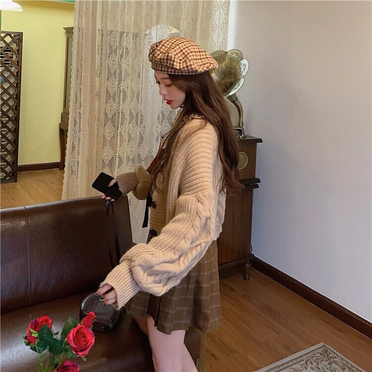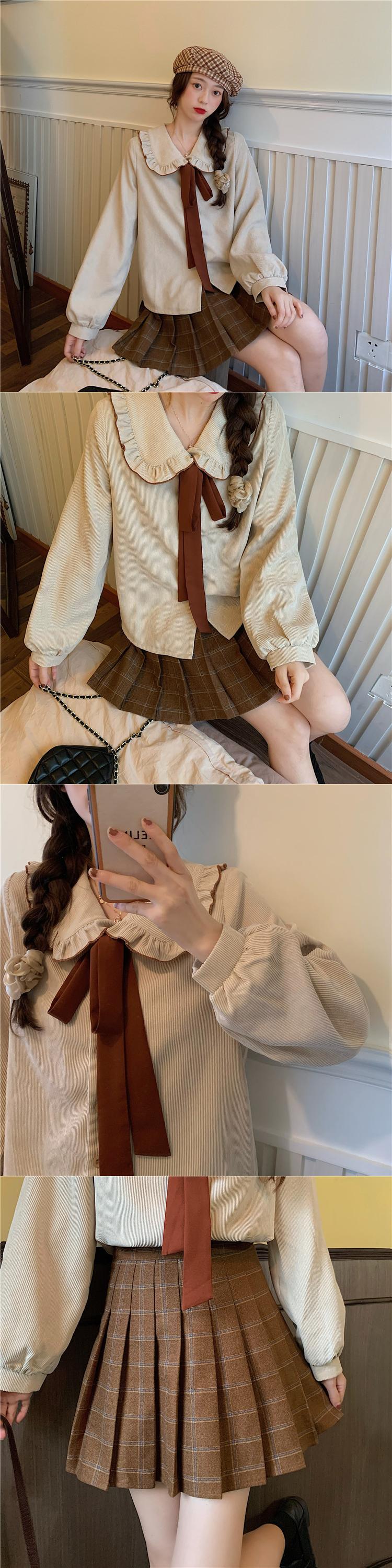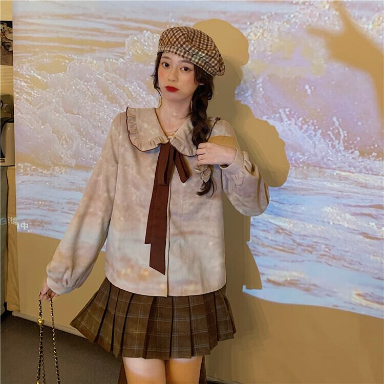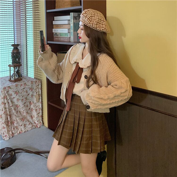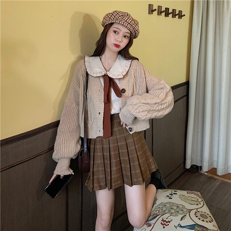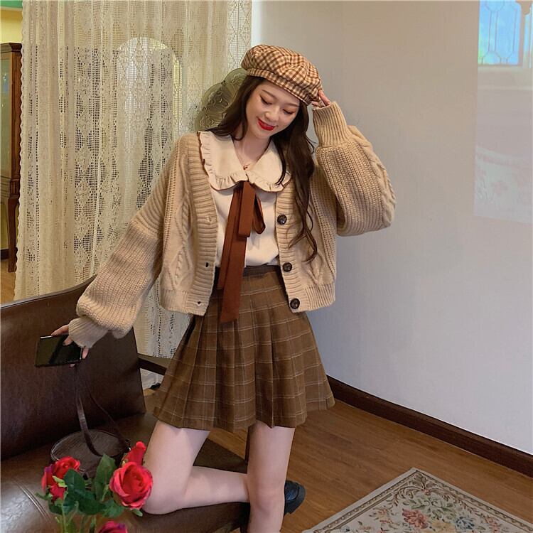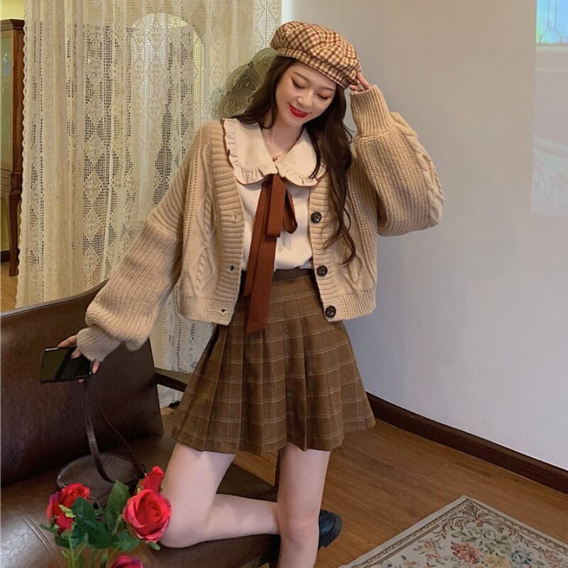 シャツ スタンダード格子柄プリーツスカート セット オータムセーター ジャケット レトロ 秋物 萌量不足40763298027
