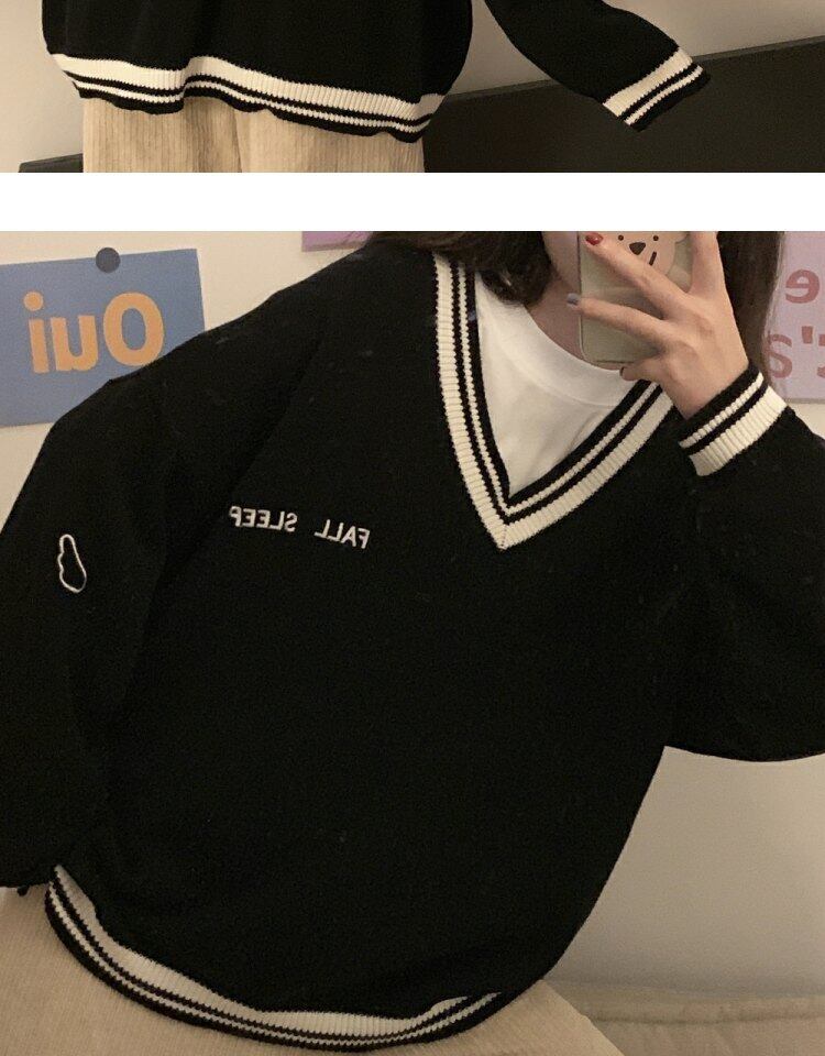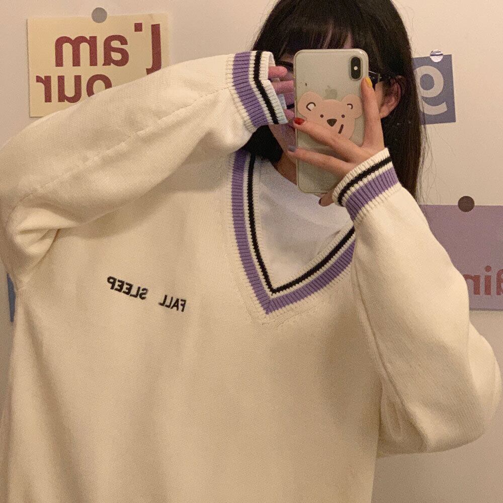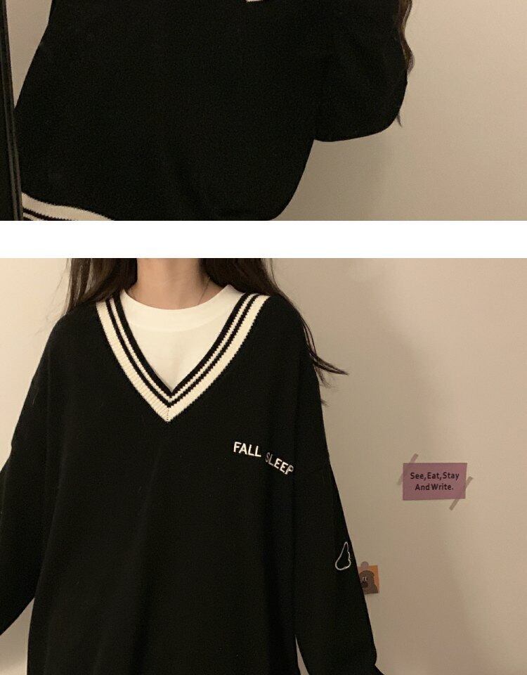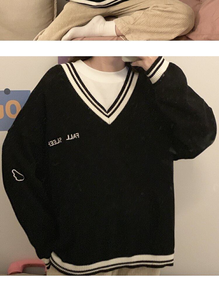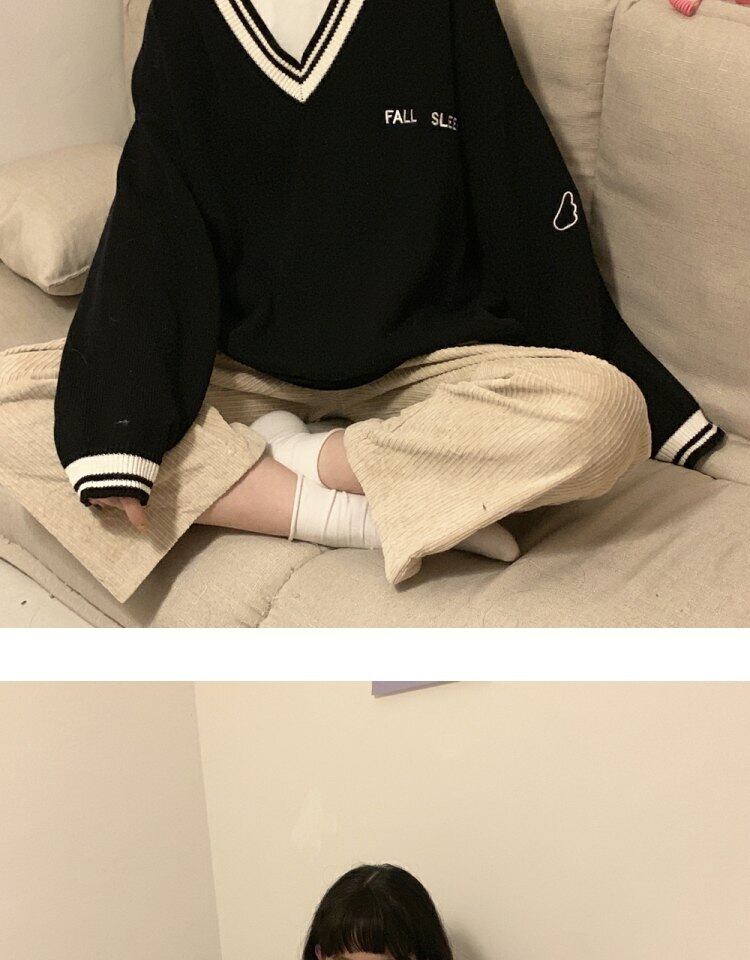 スタイル刺繍Vネックプルオーバー ニットセーター レディースオータムルーズジャケット 秋物 萌量不足70859581376