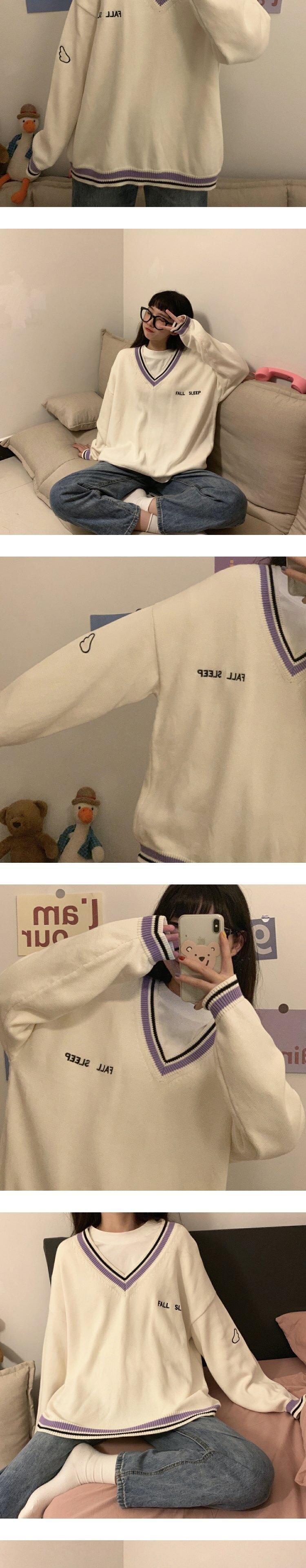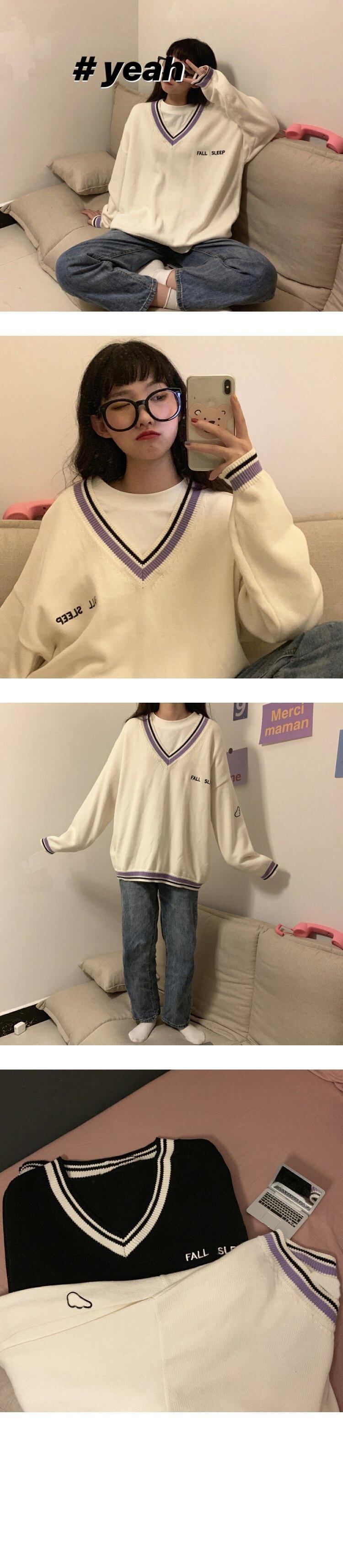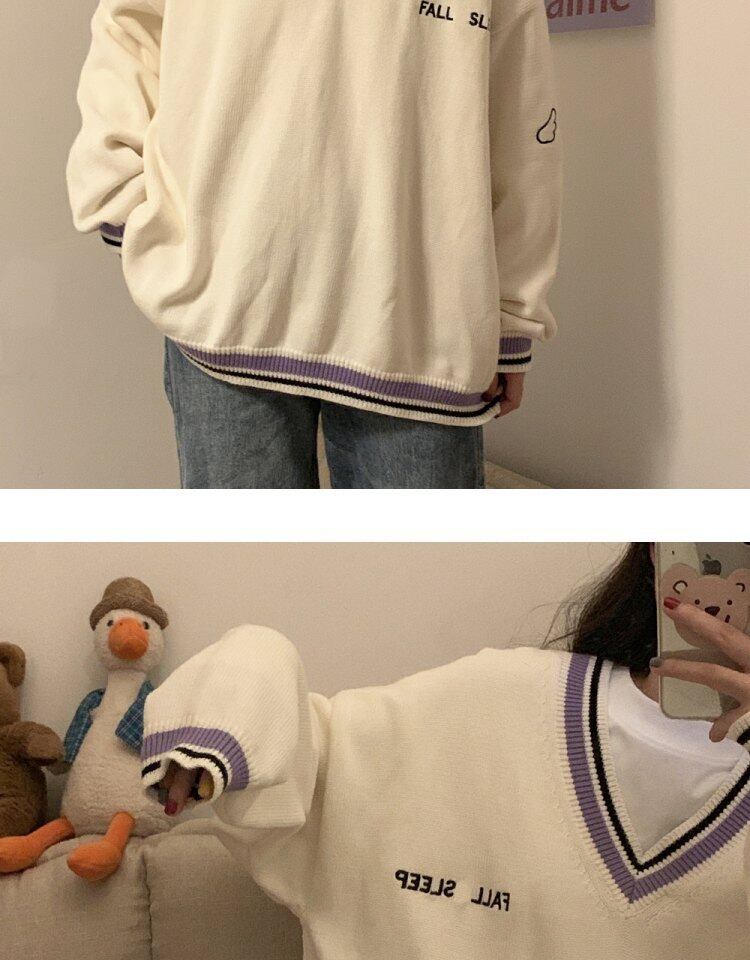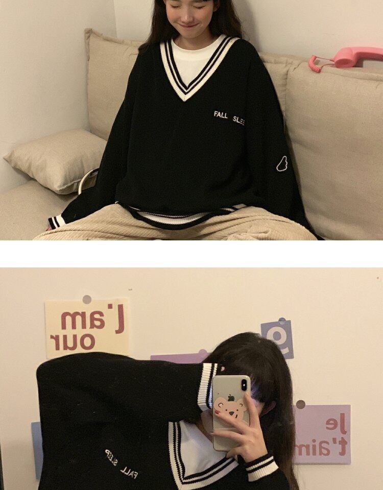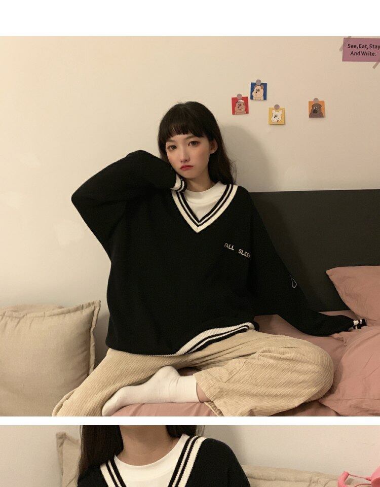 スタイル刺繍Vネックプルオーバー ニットセーター レディースオータムルーズジャケット 秋物 萌量不足70859581376