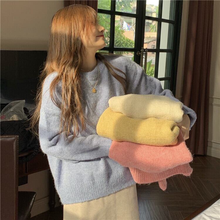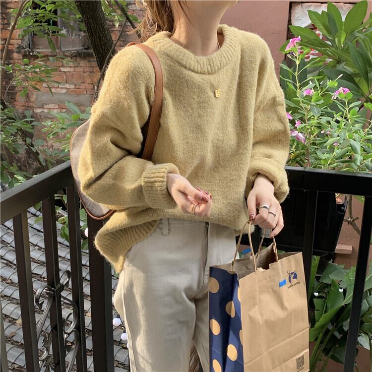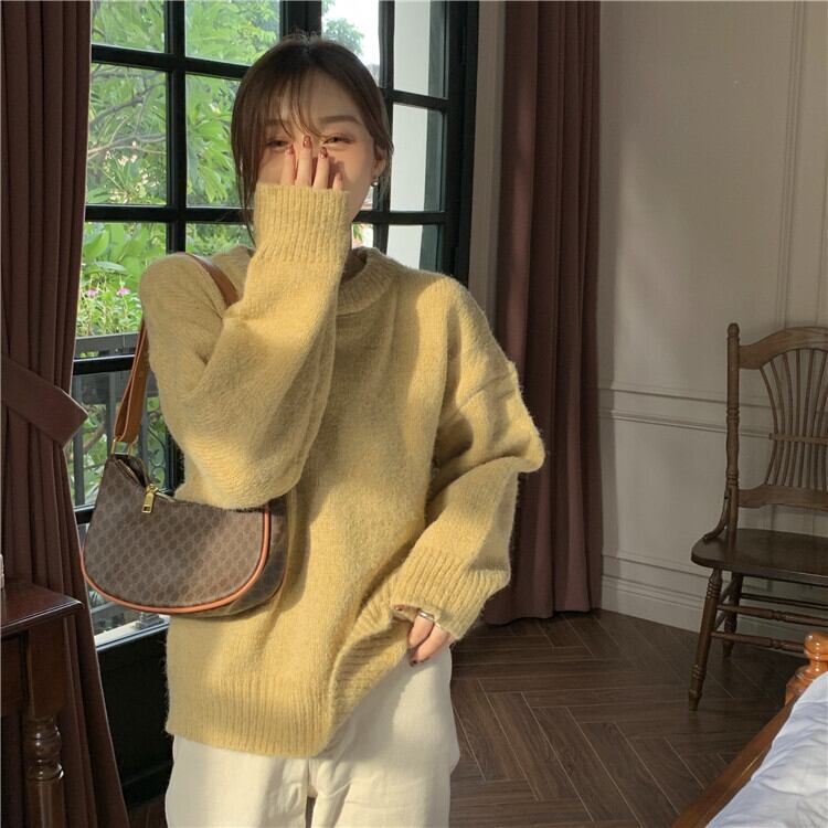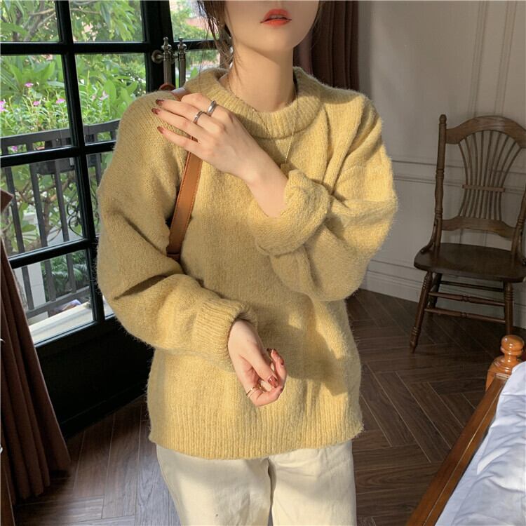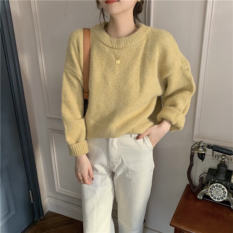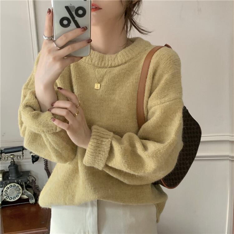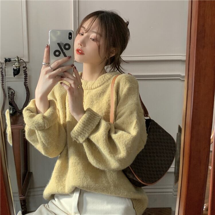イエロープルオーバー セーター レディースルーズトップス ウィンター 冬物 萌量不足30848074277