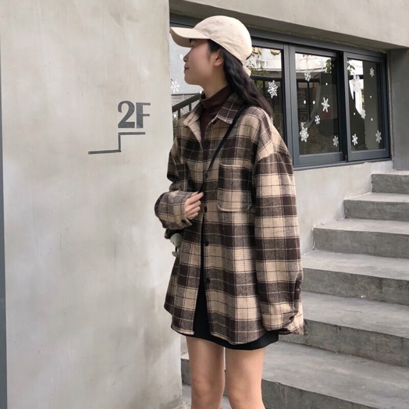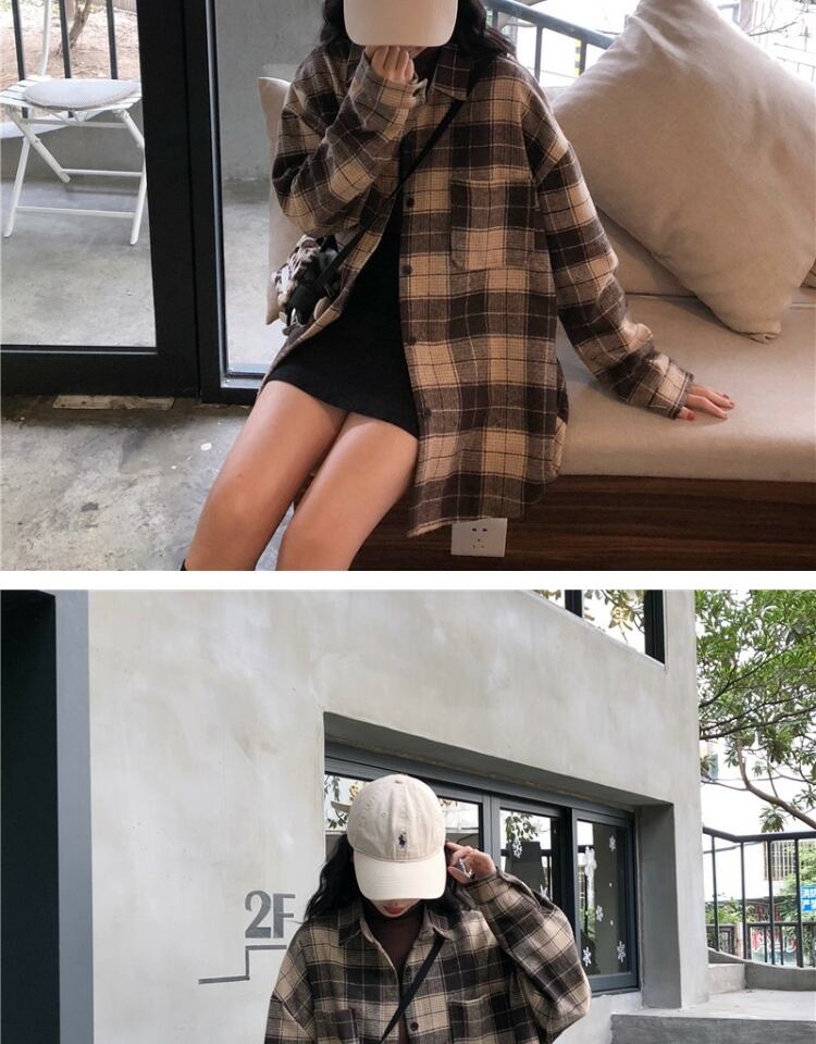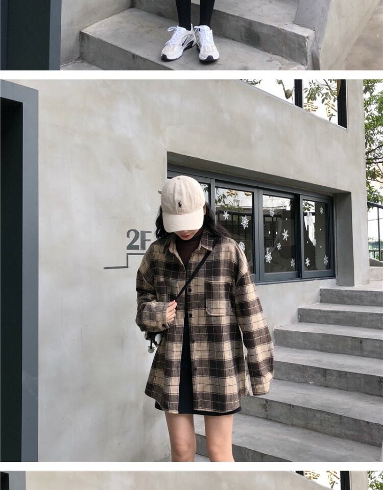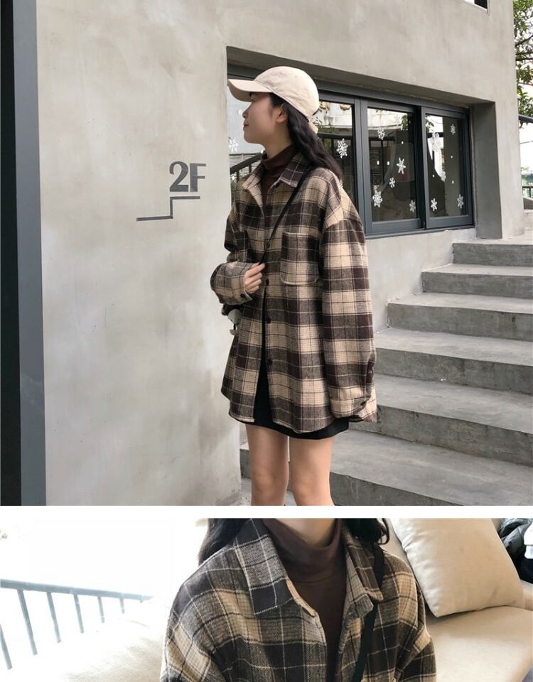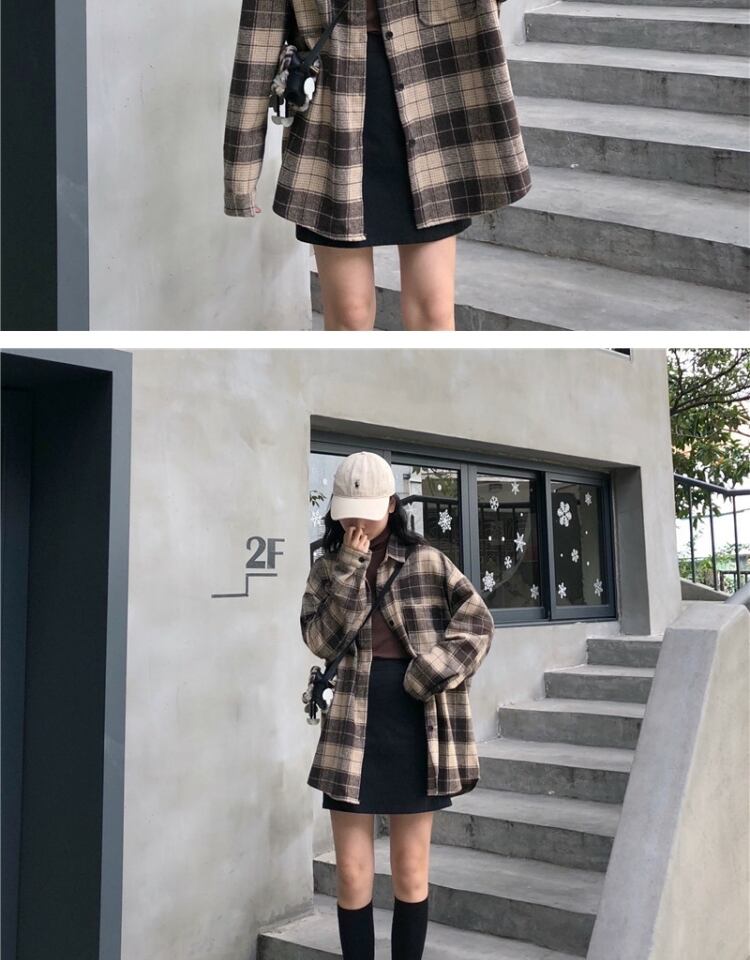 スタンダード格子柄シャツ オータム薄手ジャケット トップス ロング レトロ 秋物 萌量不足8569521294