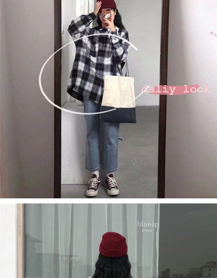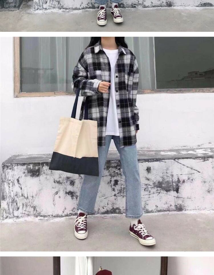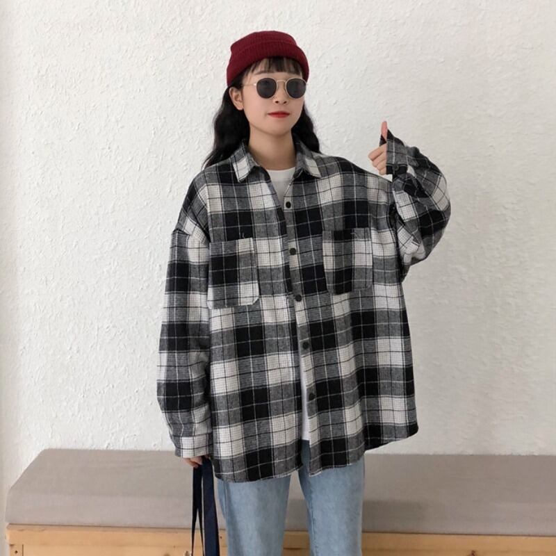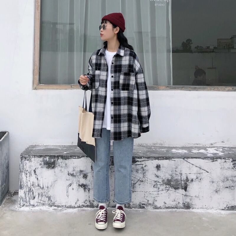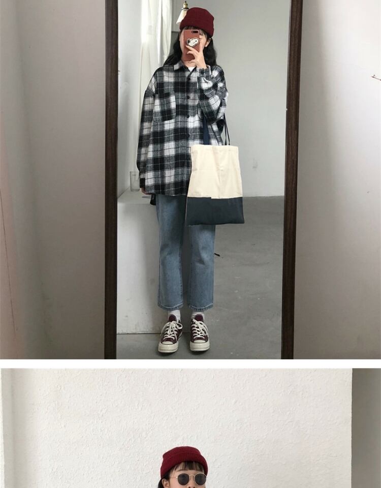 スタンダード格子柄シャツ オータム薄手ジャケット トップス ロング レトロ 秋物 萌量不足8569521294