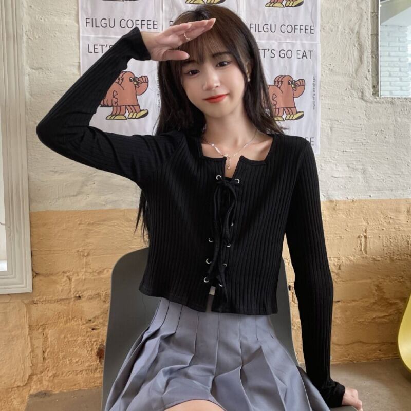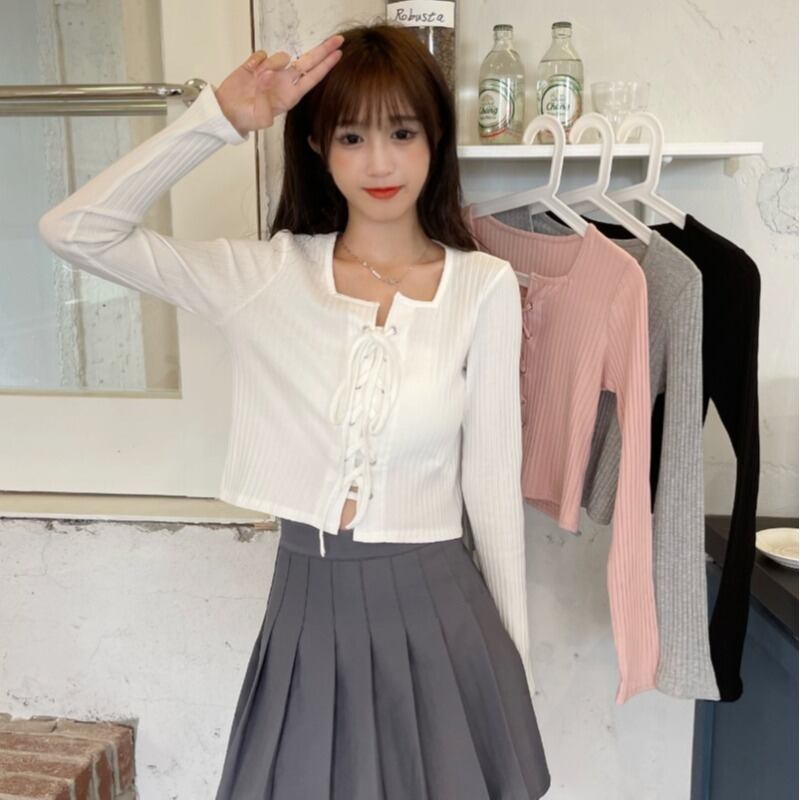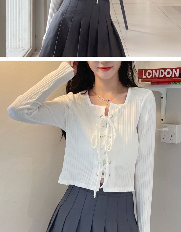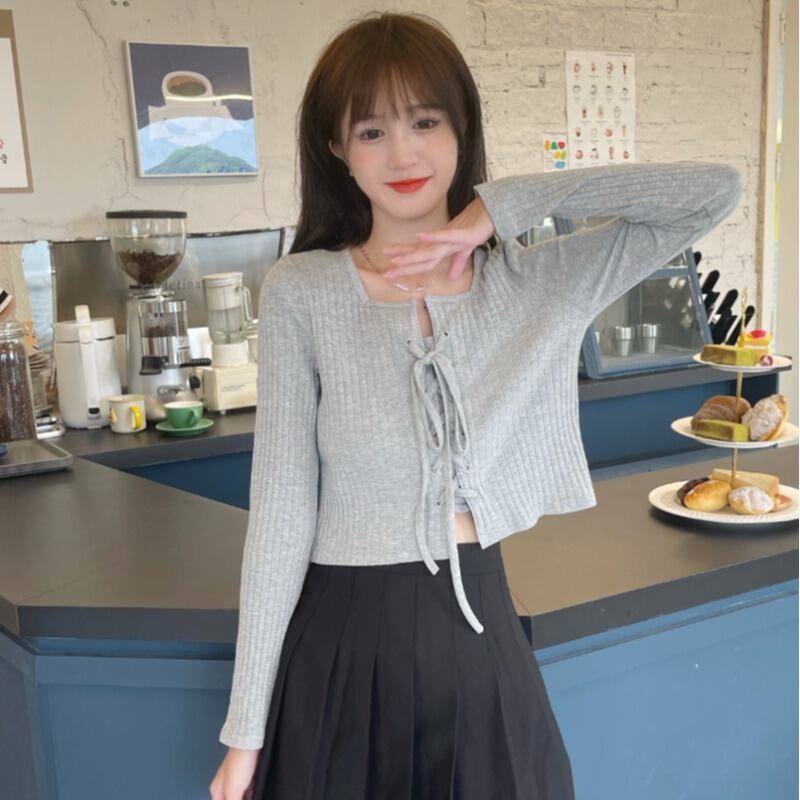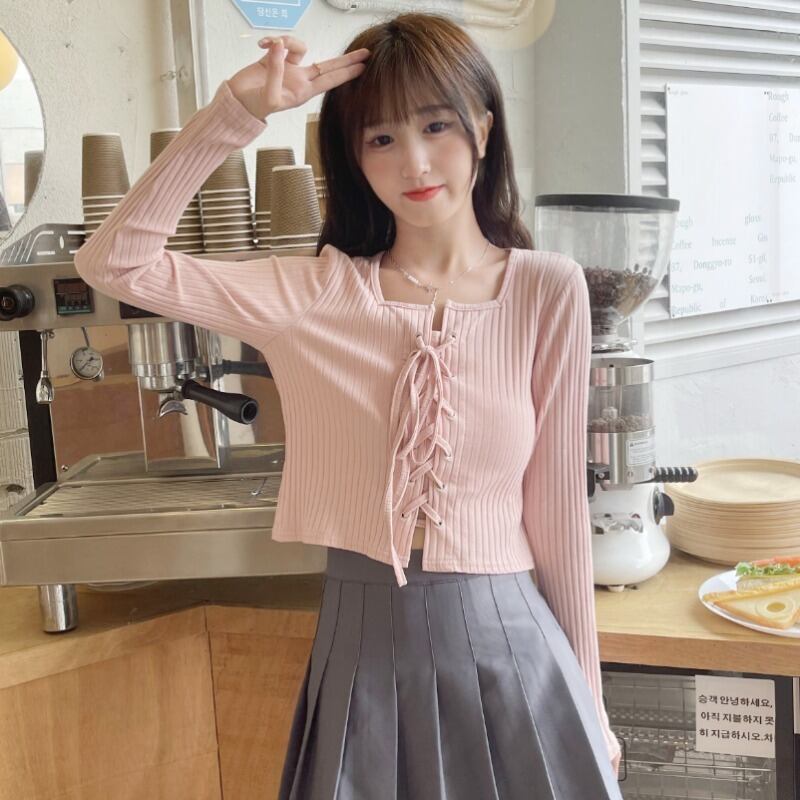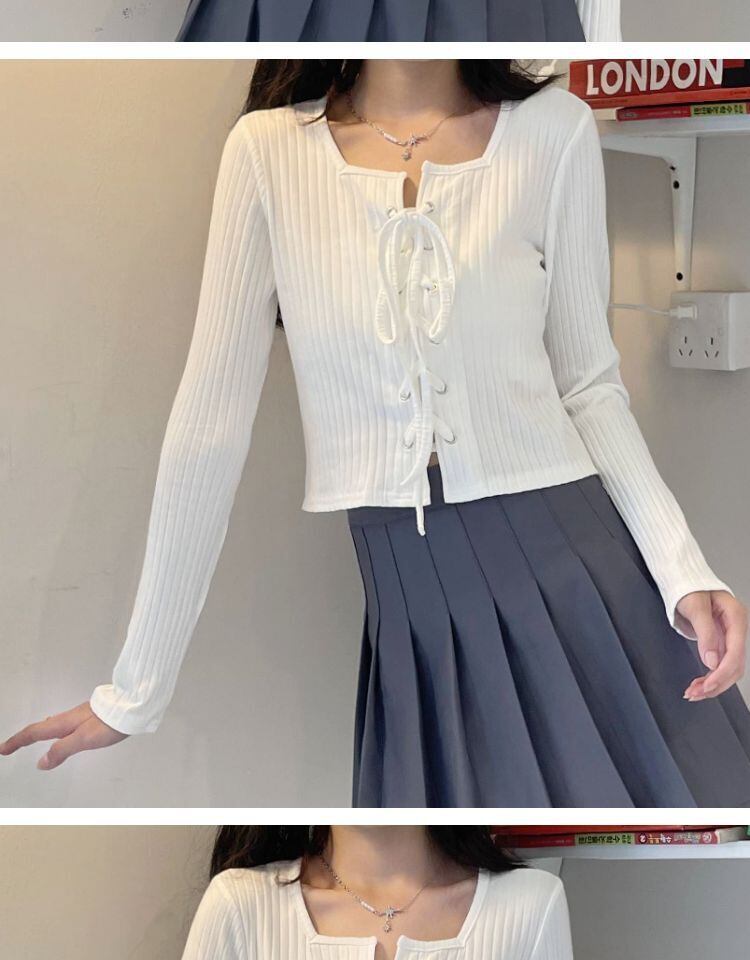 Tシャツ シャツ スプリングオータムクロスストラップ スリムトップス ロング 春物 秋物 スクウェア 萌量不足22815084777