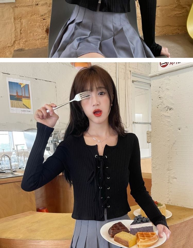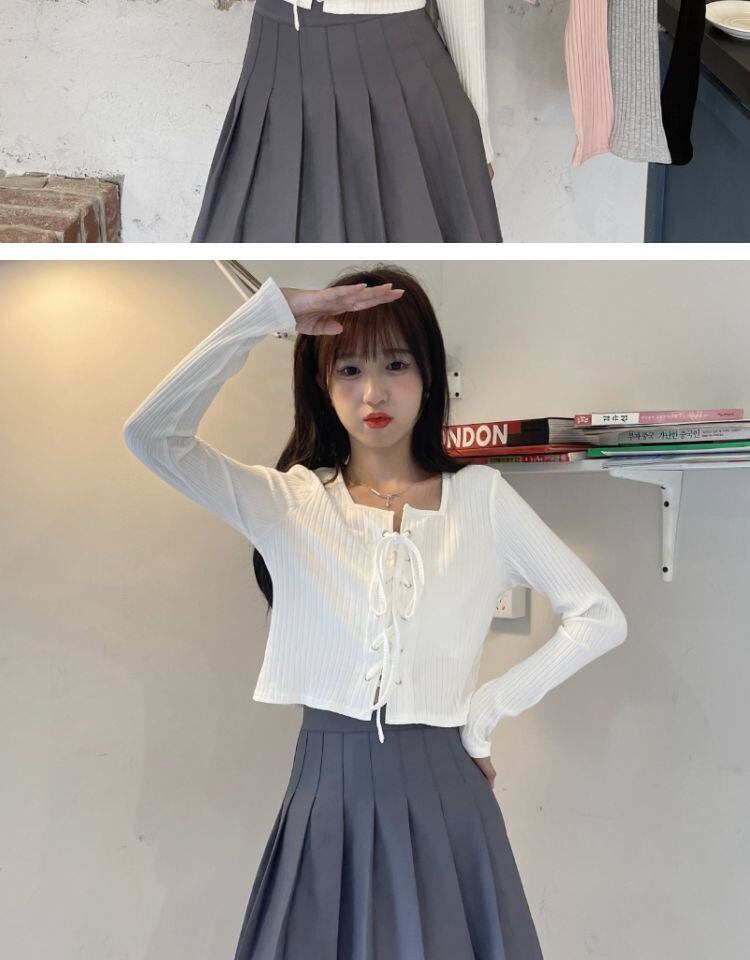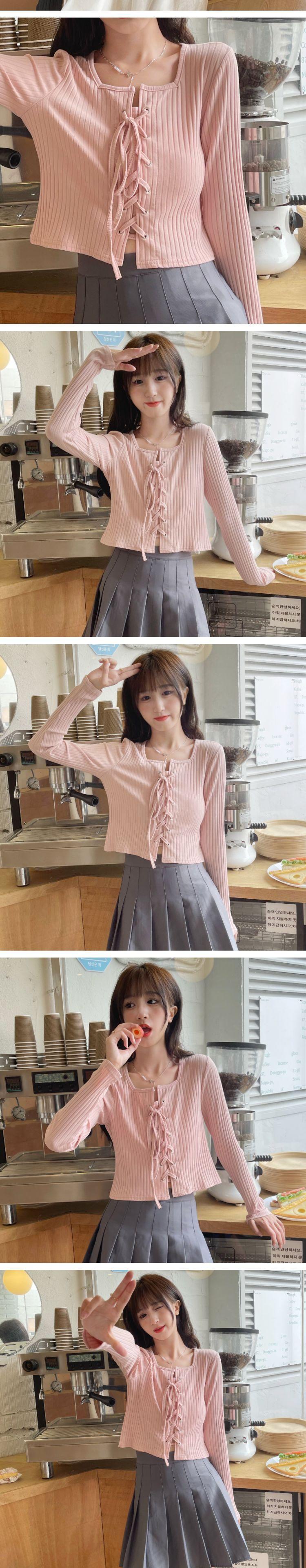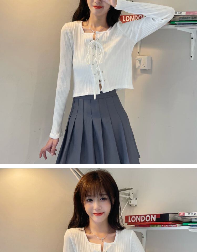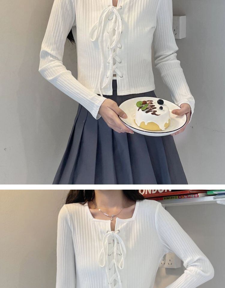 Tシャツ シャツ スプリングオータムクロスストラップ スリムトップス ロング 春物 秋物 スクウェア 萌量不足22815084777