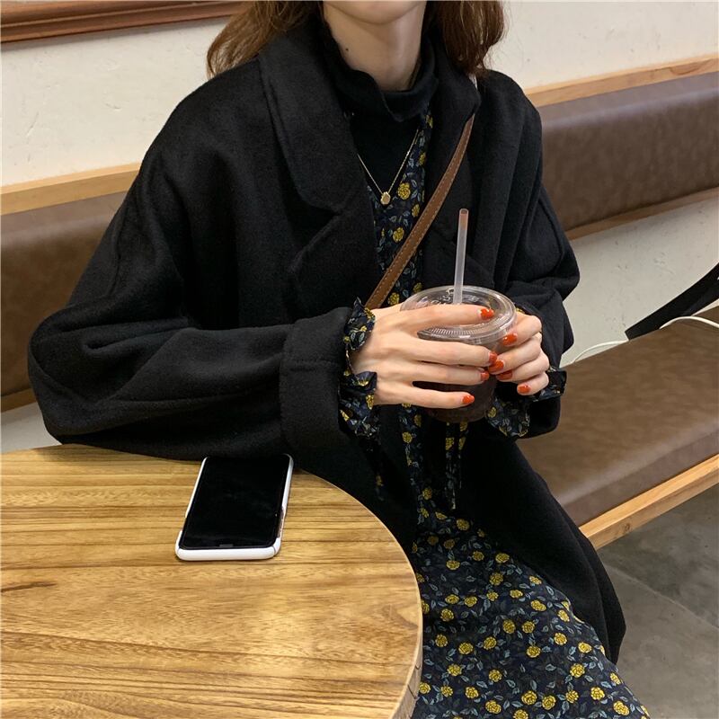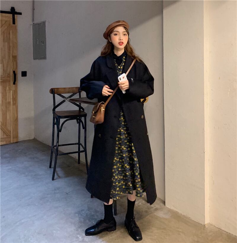 オータムウィンタースタイルコート スタンダードブラック レトロ 秋物 冬物 萌量不足39974059365