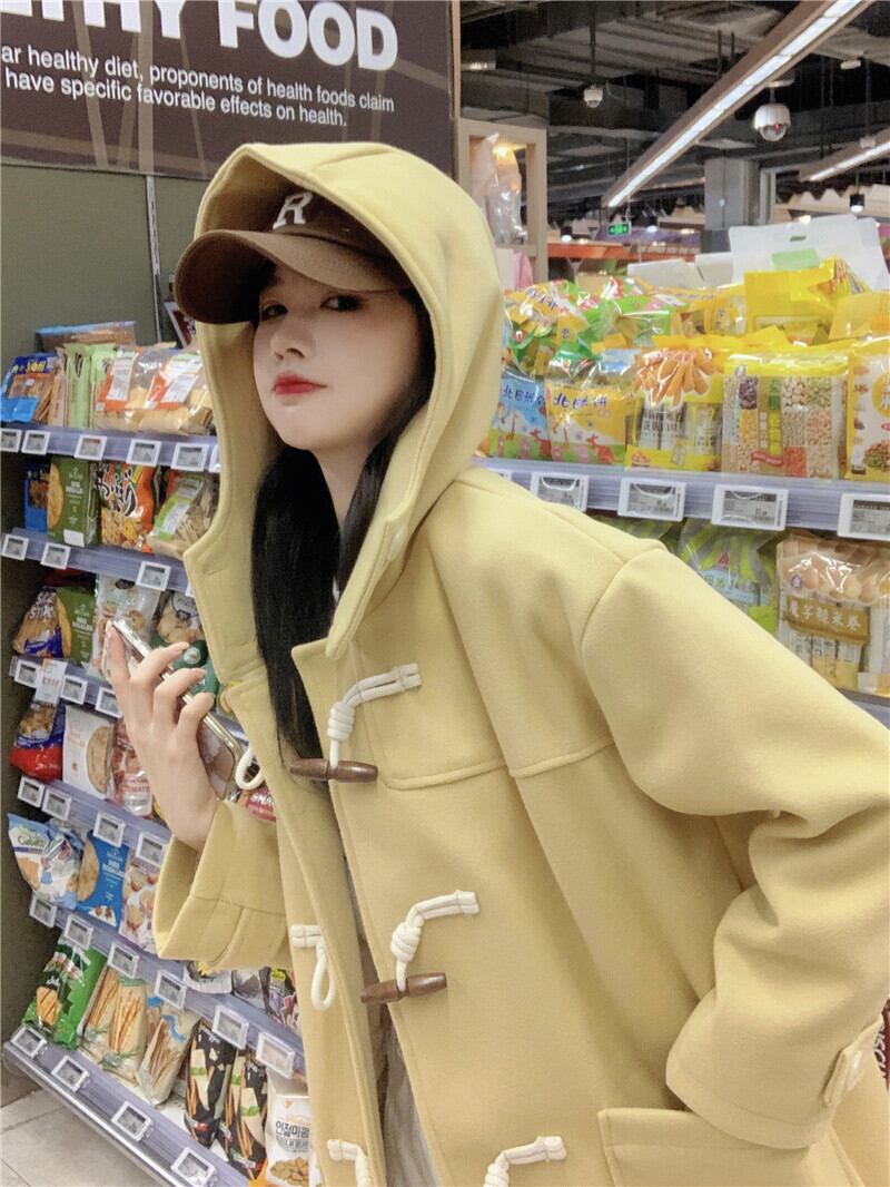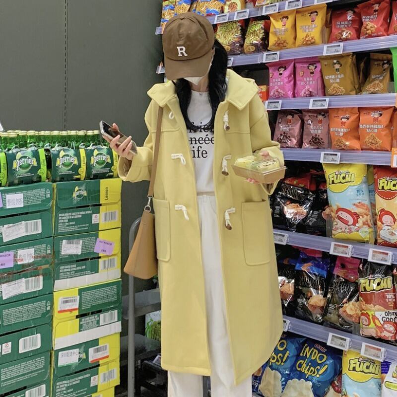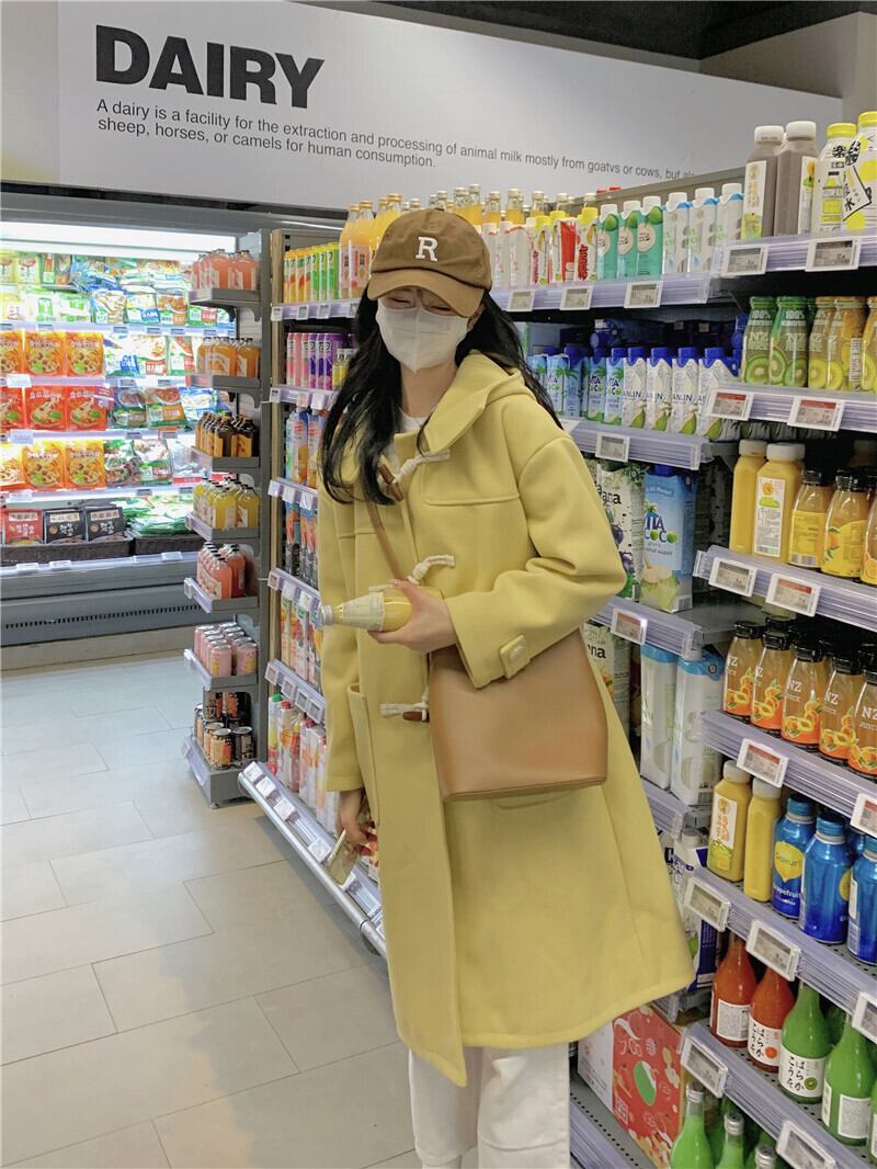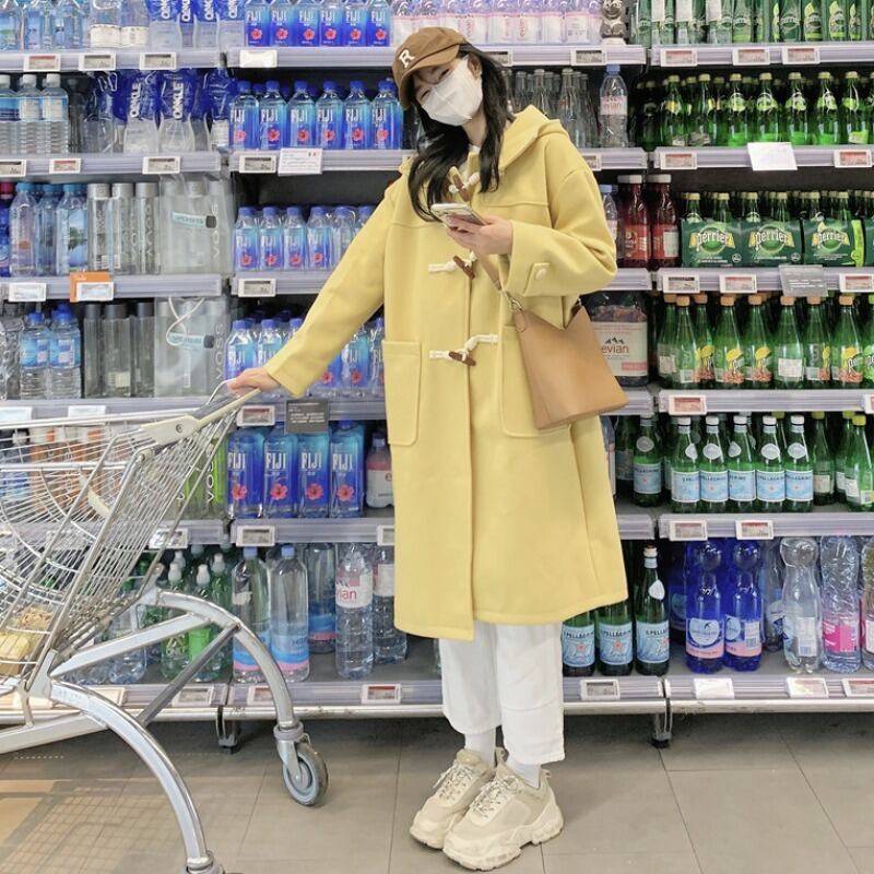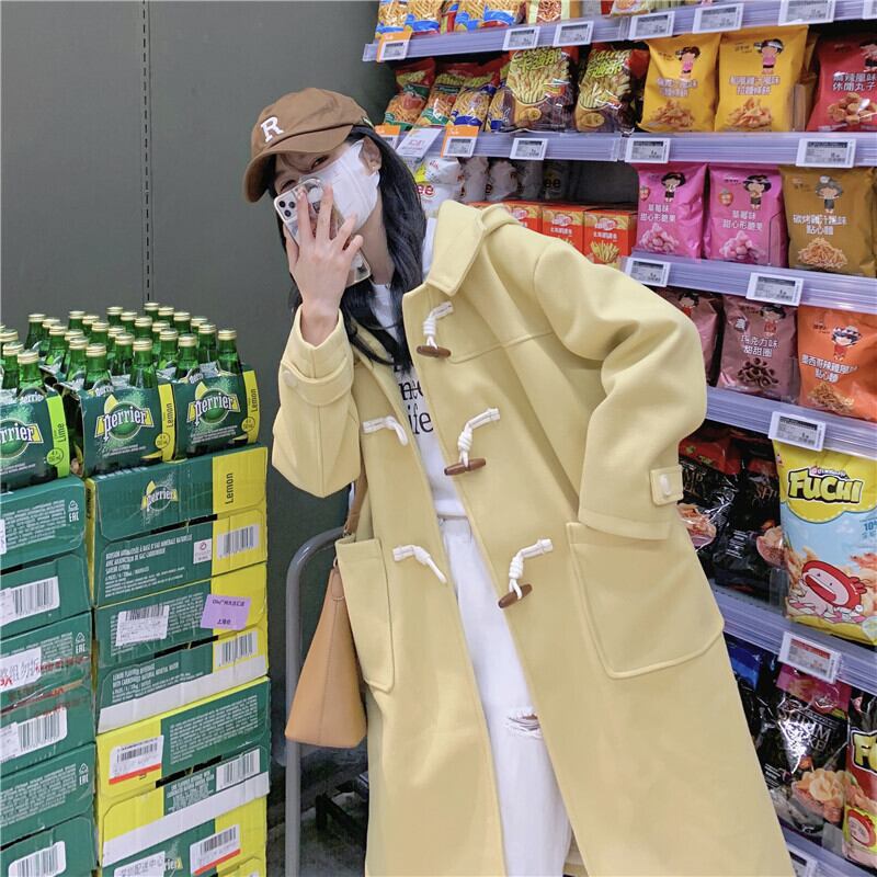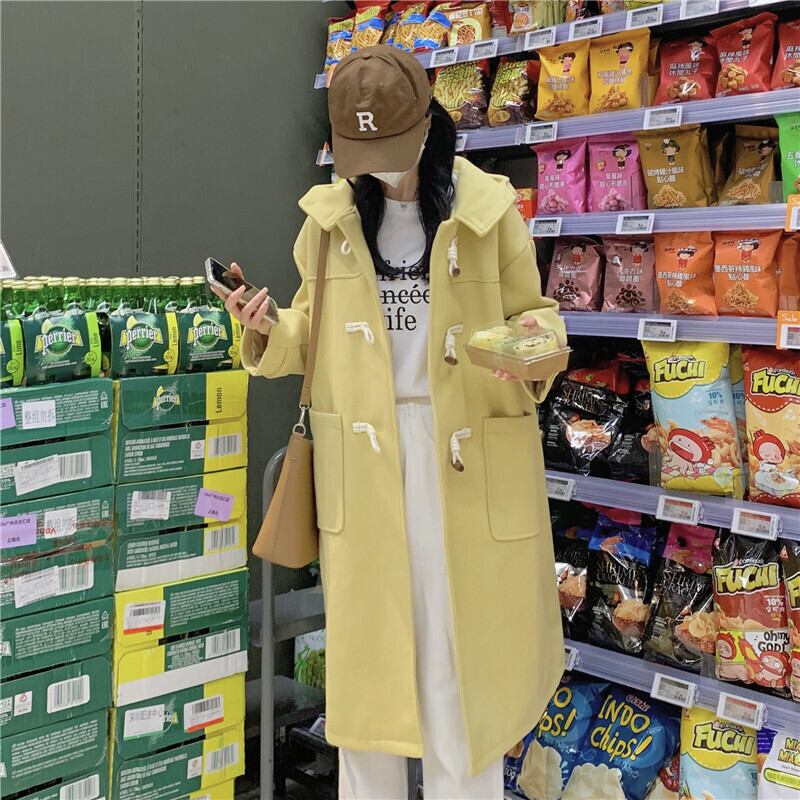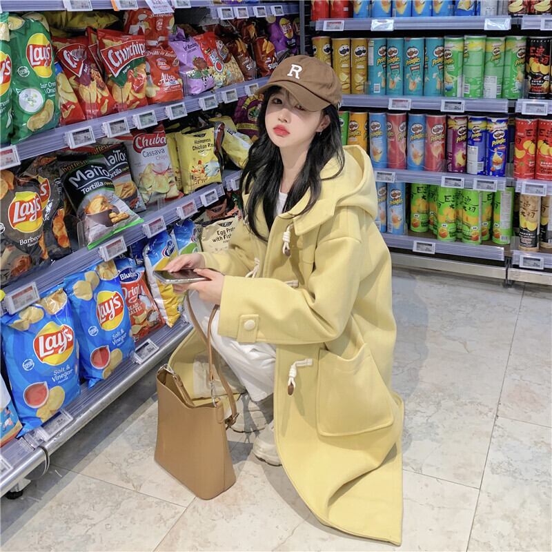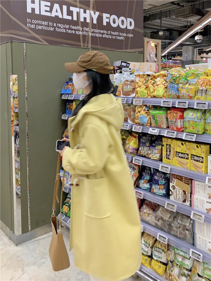 イエローロングフードバックルコート レディースウィンター 冬物 萌量不足31225090477