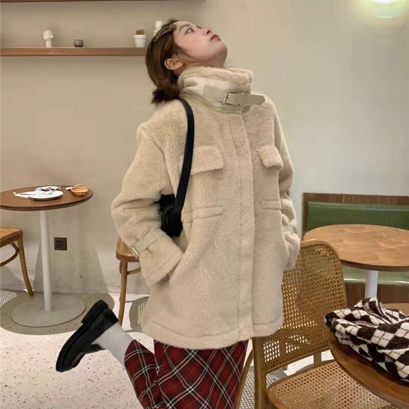 ルーズベルベットスタンドカラーカラージャケット コート ウィンター コットン 冬物 萌量不足55557463763