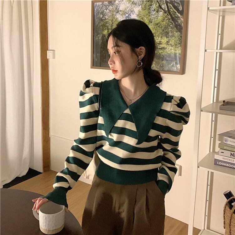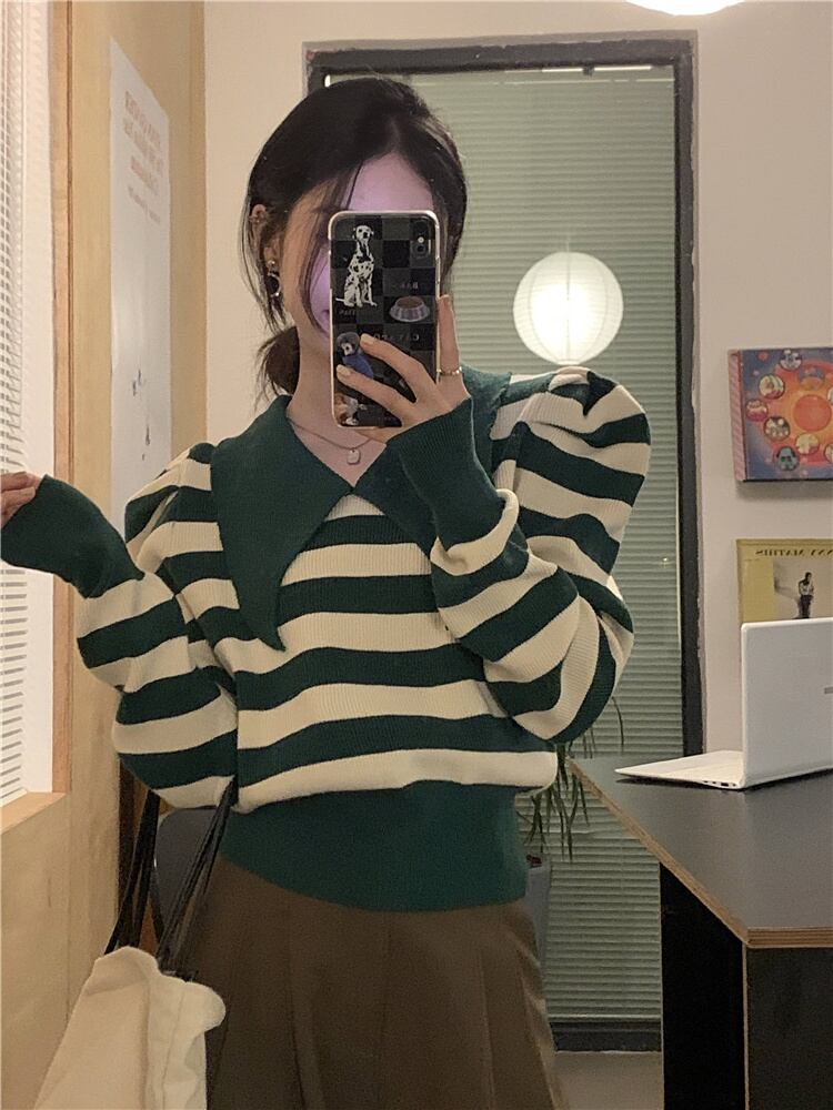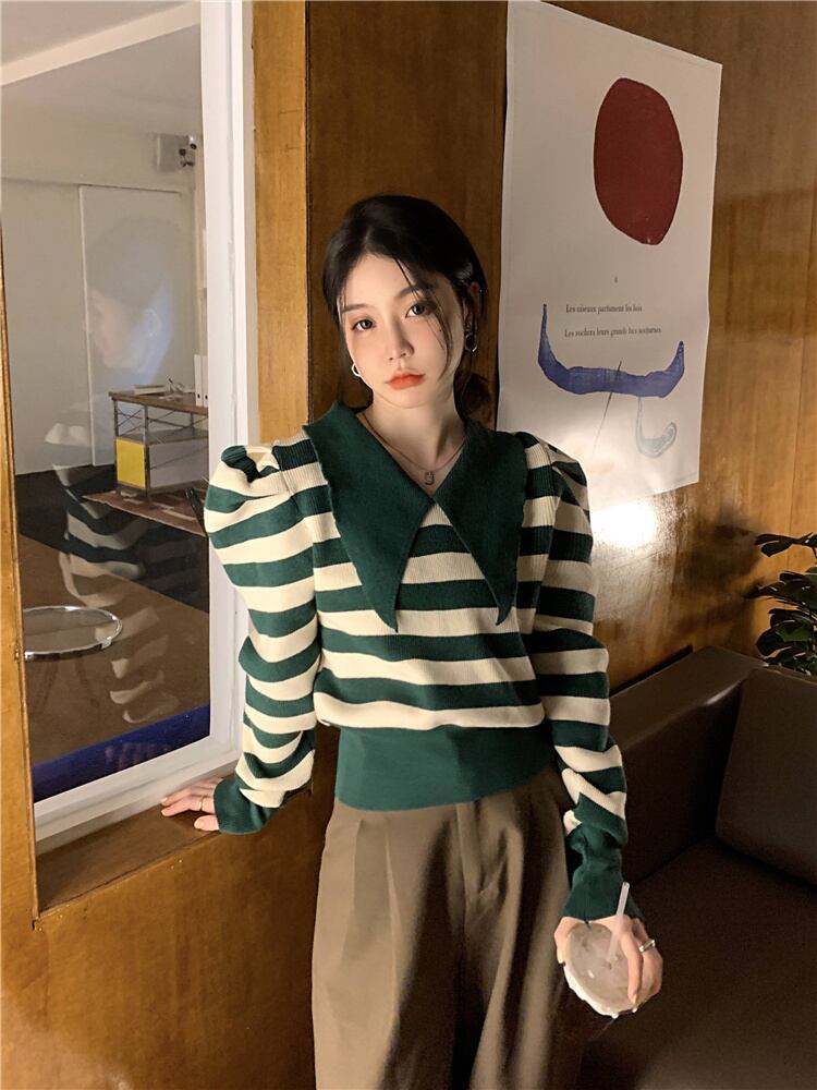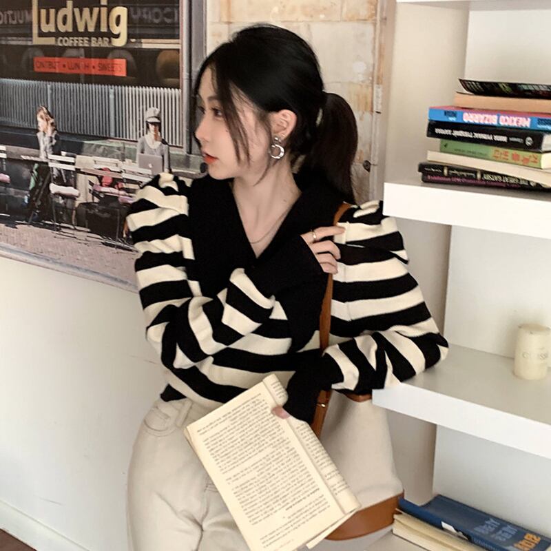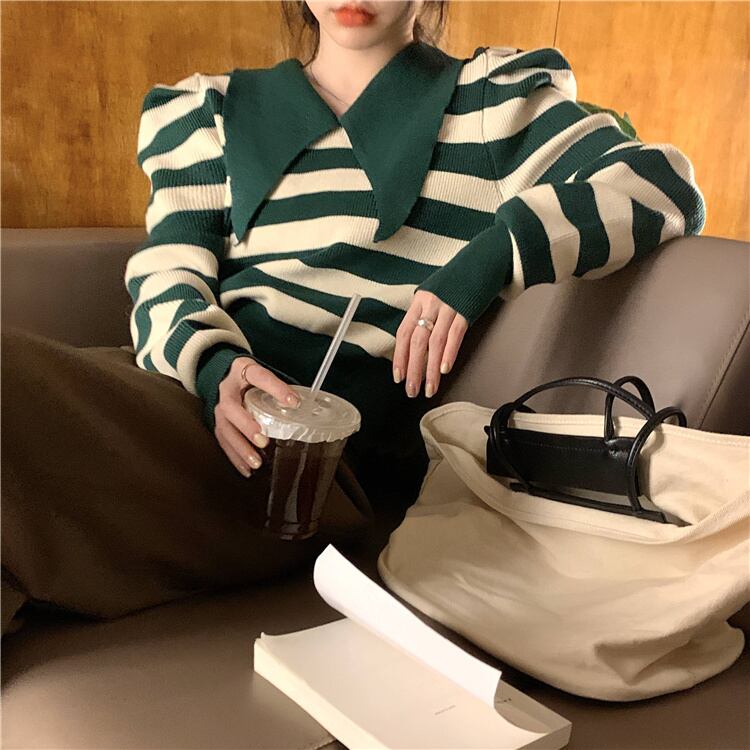 スタンダードストライププルオーバー セーター オータムウィンタートップス レトロ 秋物 冬物 萌量不足81398372311