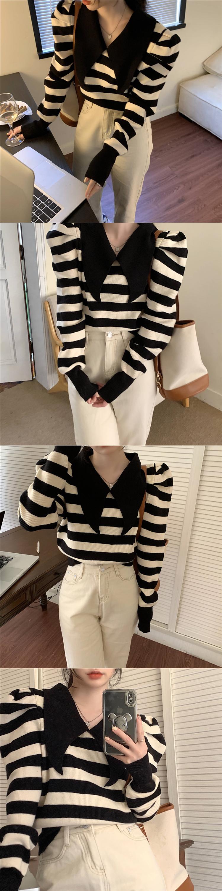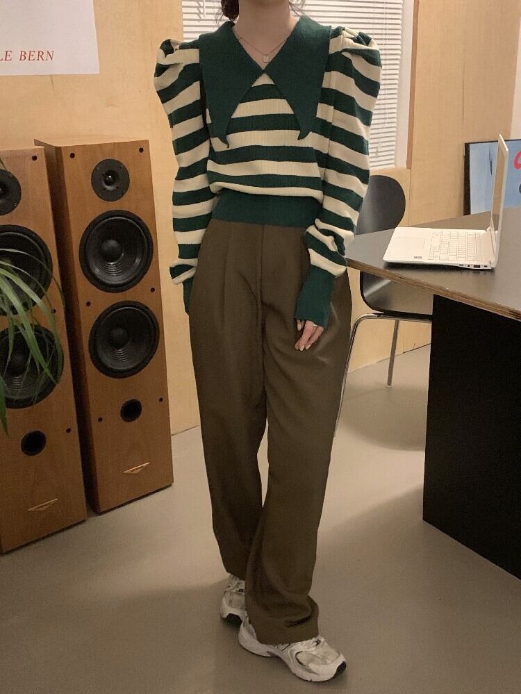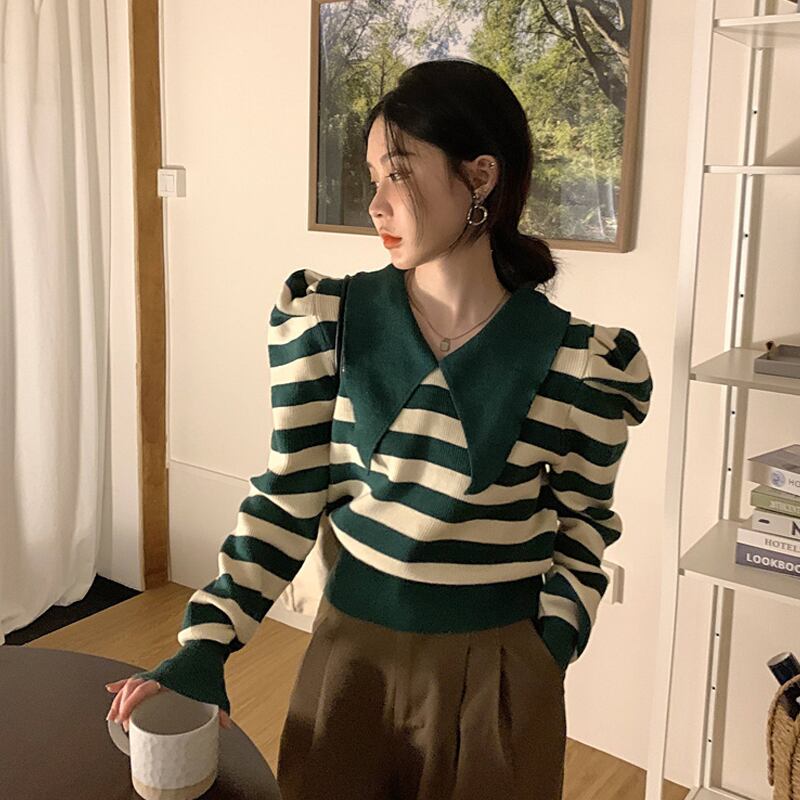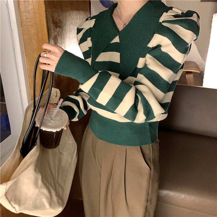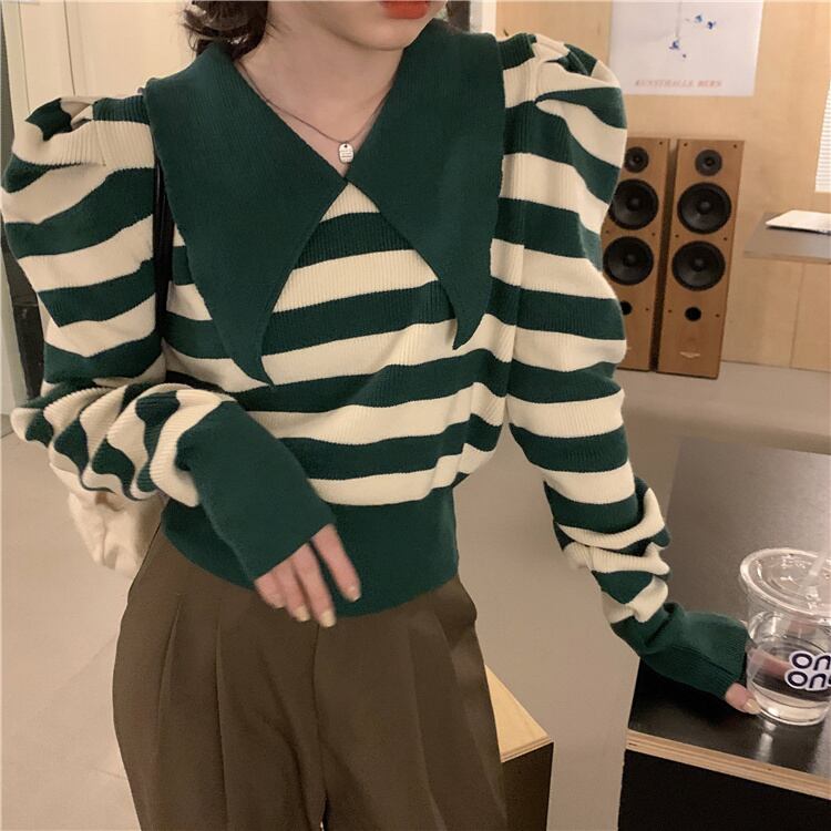 スタンダードストライププルオーバー セーター オータムウィンタートップス レトロ 秋物 冬物 萌量不足81398372311