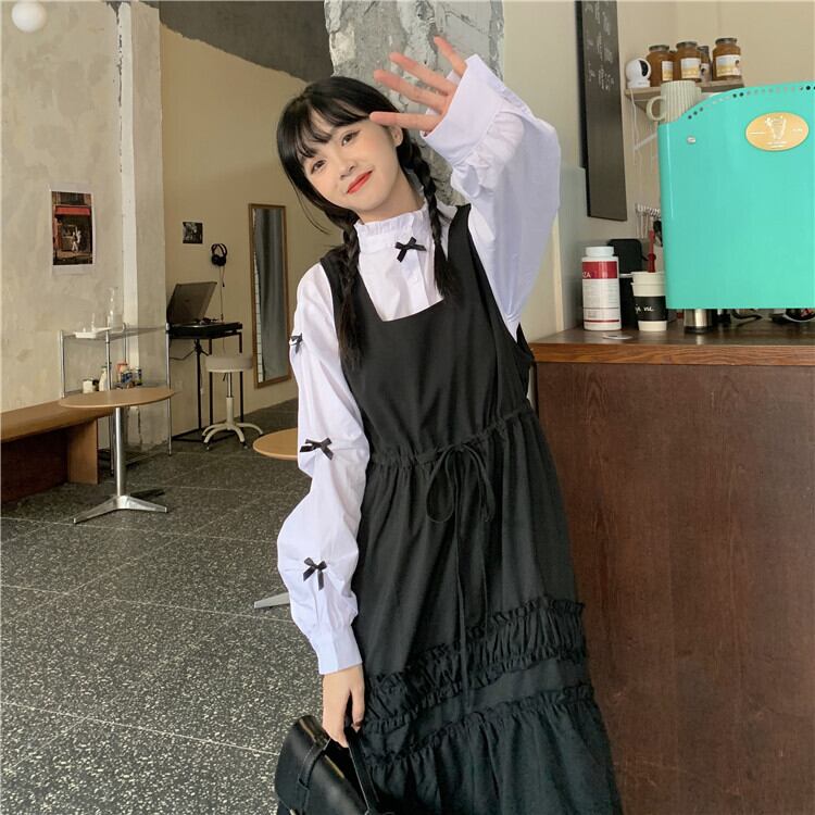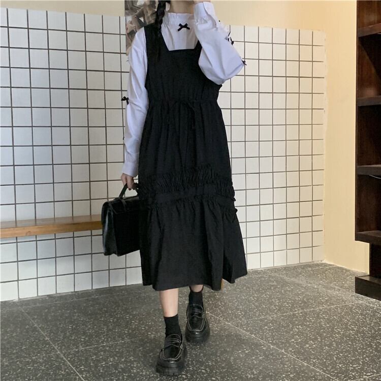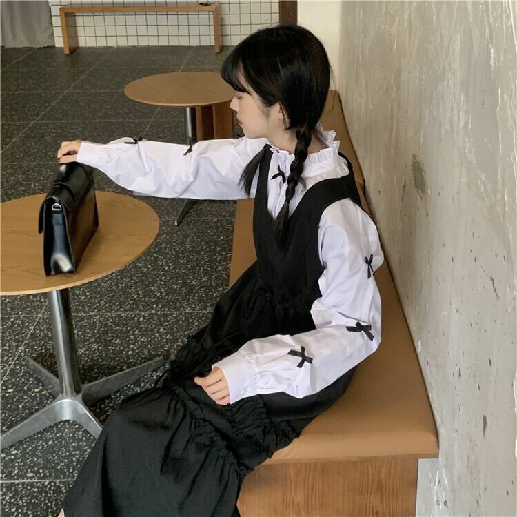 オータムブラックスカート ルーズ薄手スタイル 大人ガーリー スウィート キュート カジュアル 秋物 萌量不足96004768754