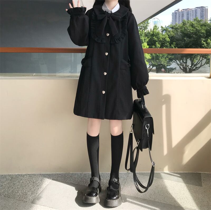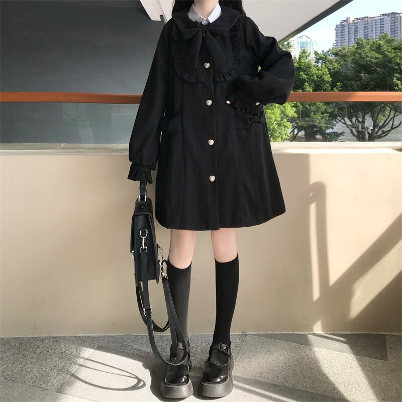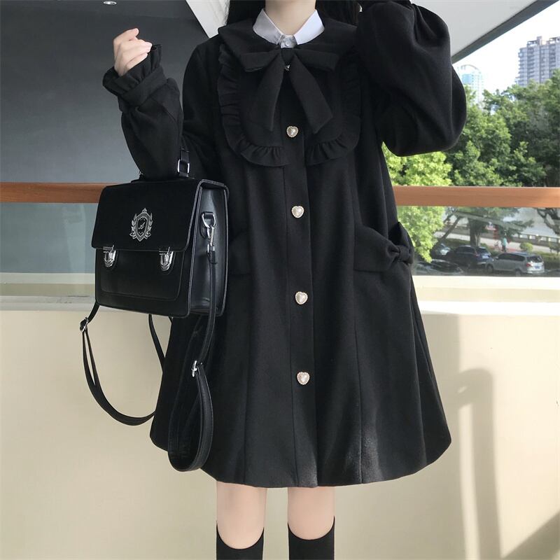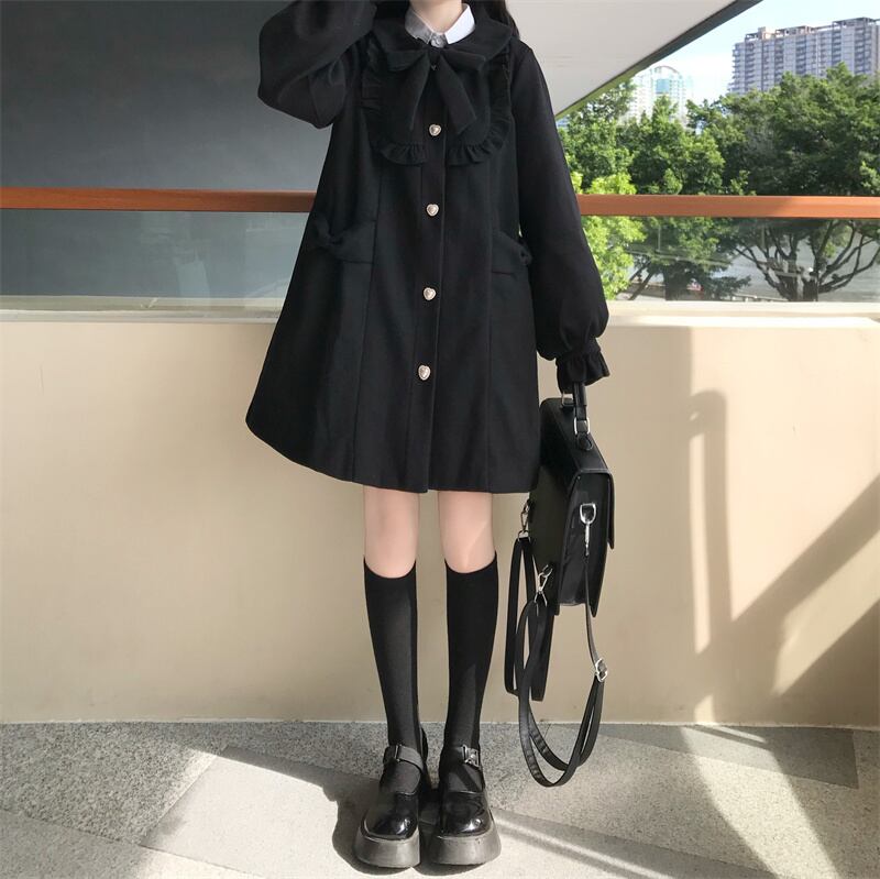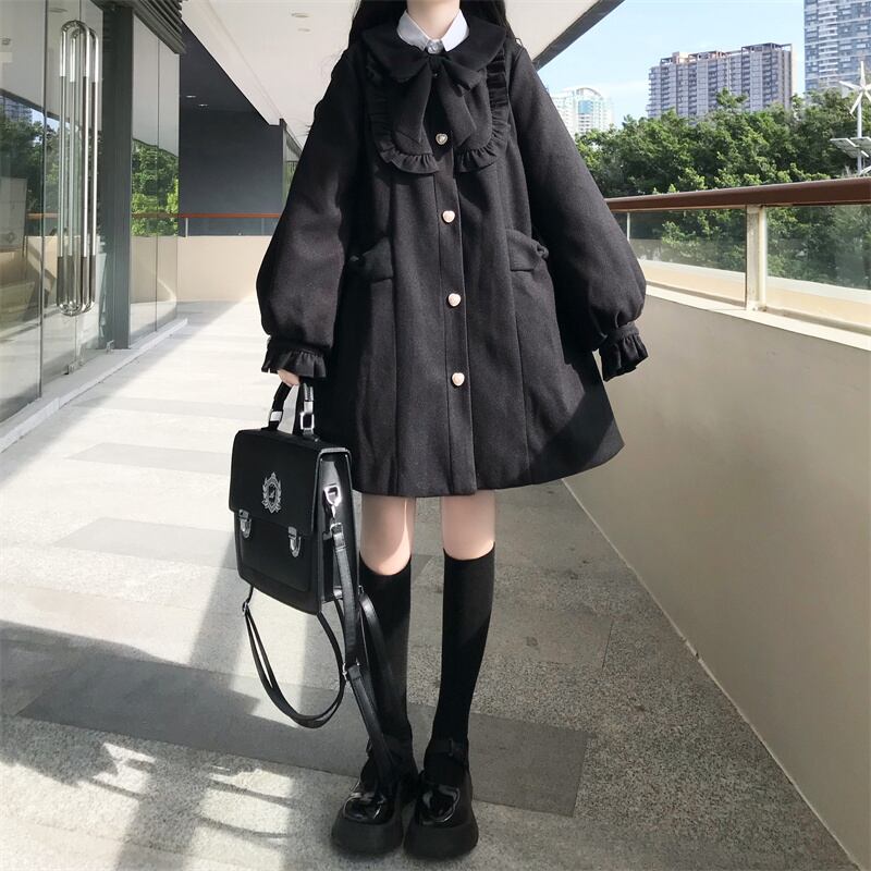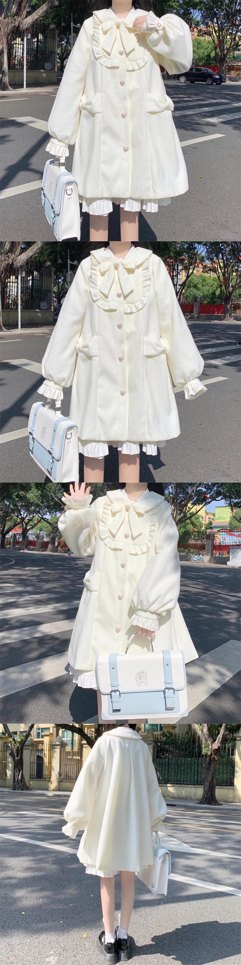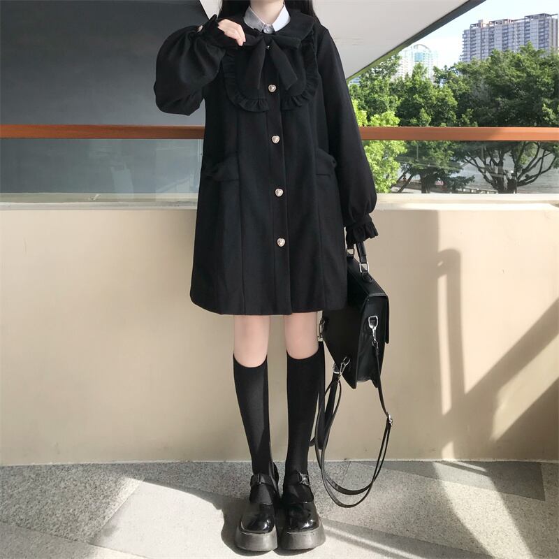 レーススリーブコート レディースウィンターロング ランタンスリーブ リボン 冬物 萌量不足261539698