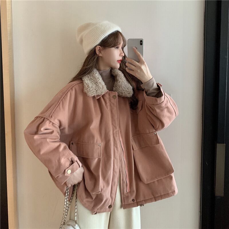 ウィンターベルベットジャケット ルーズファーカラー 冬物 萌量不足54093261887
