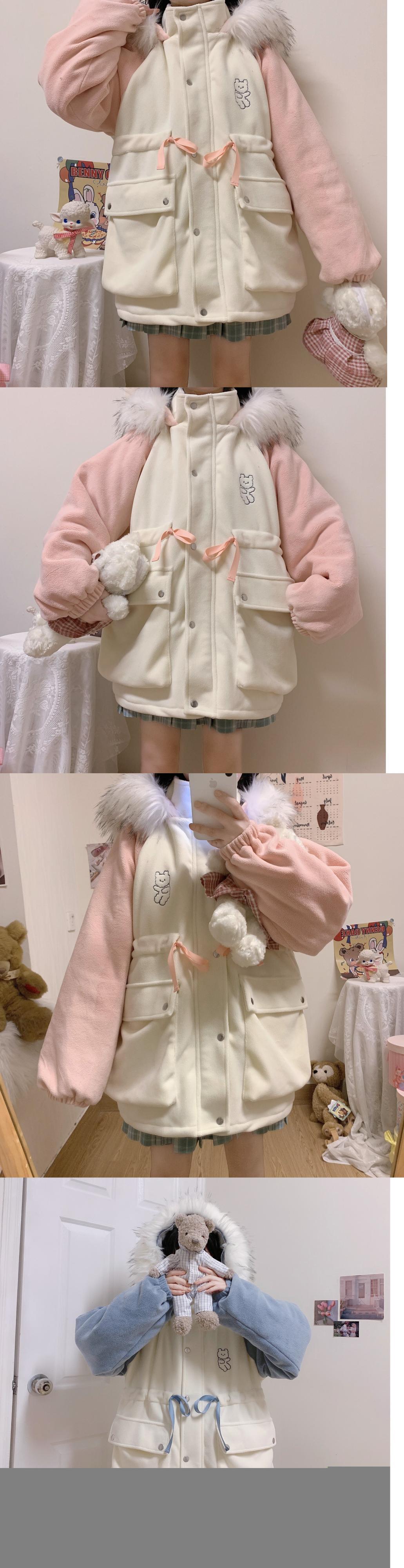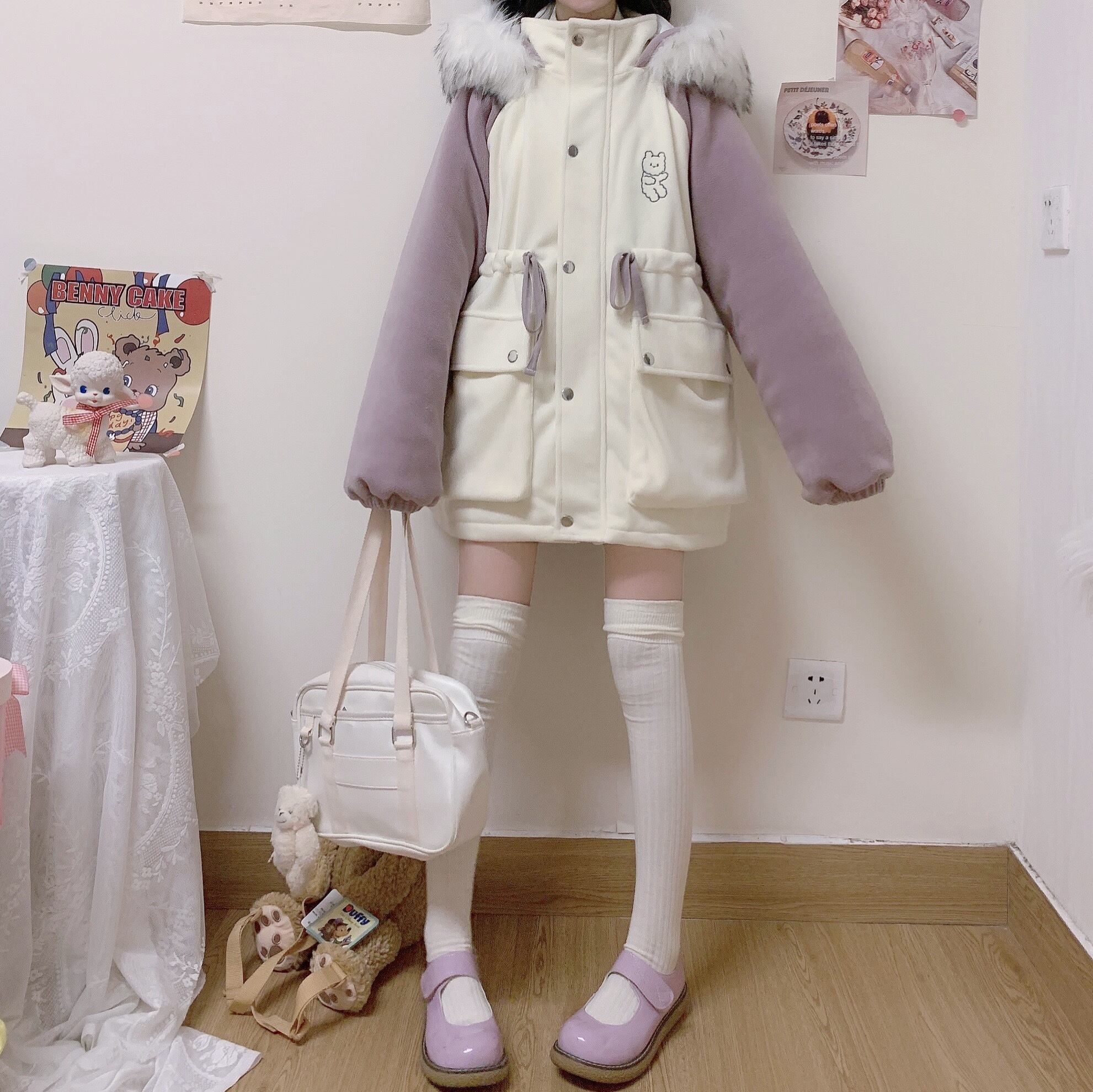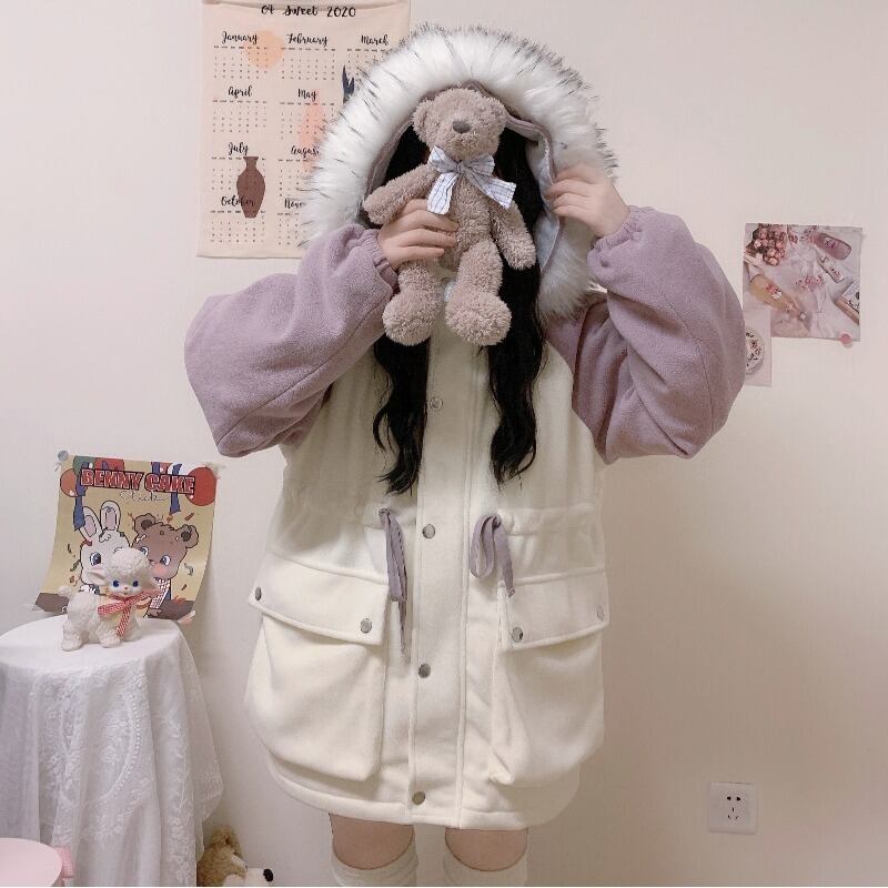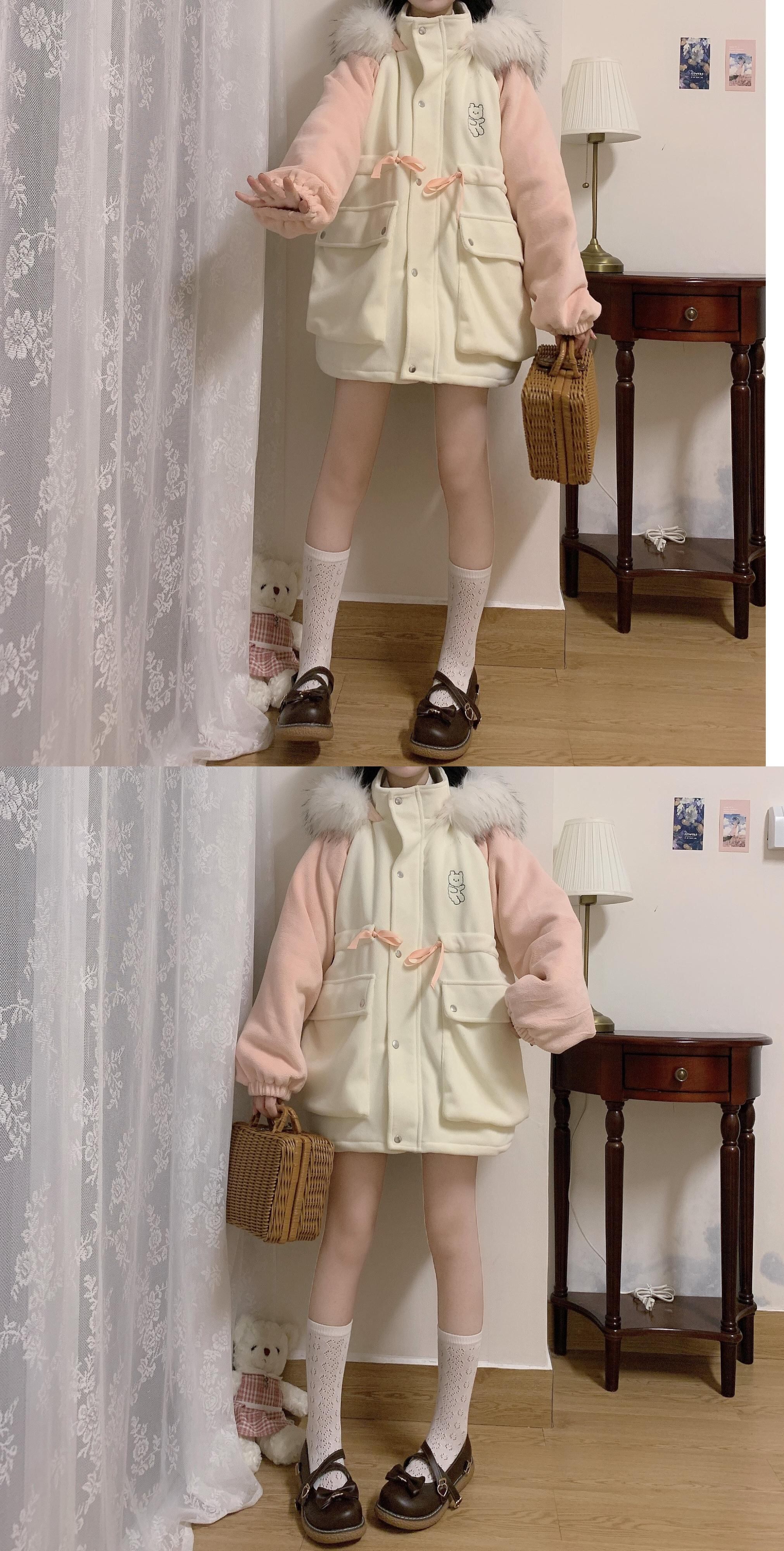 ファーカラーフードコート ルーズウィンタージャケット レディースオータム コットン 大人ガーリー スウィート キュート カジュアル 秋物 冬物 萌量不足73674889412