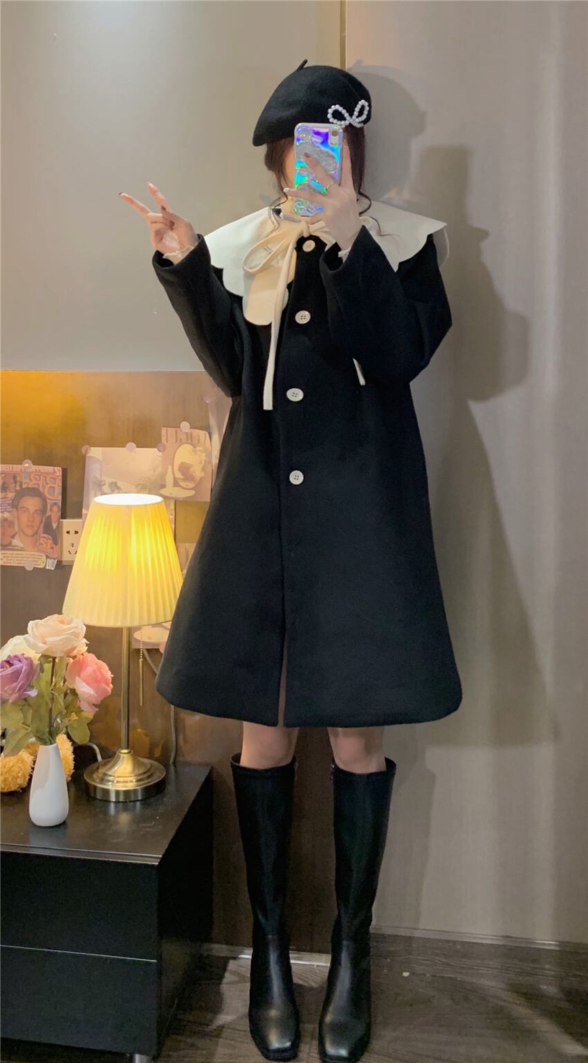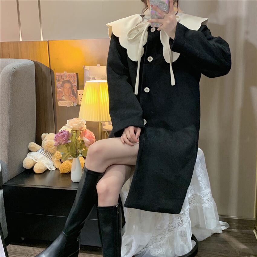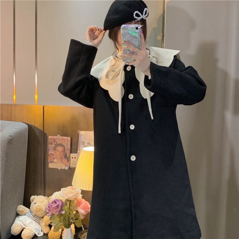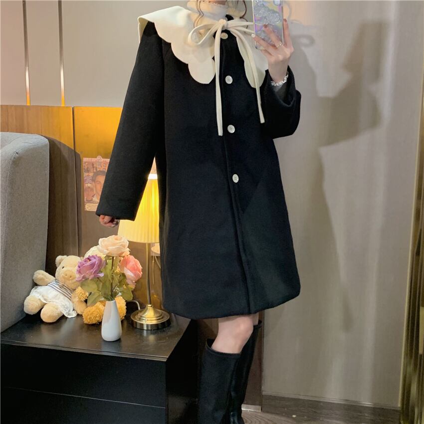 リボンコート レディースオータムウィンター コットン 秋物 冬物 萌量不足95475340847
