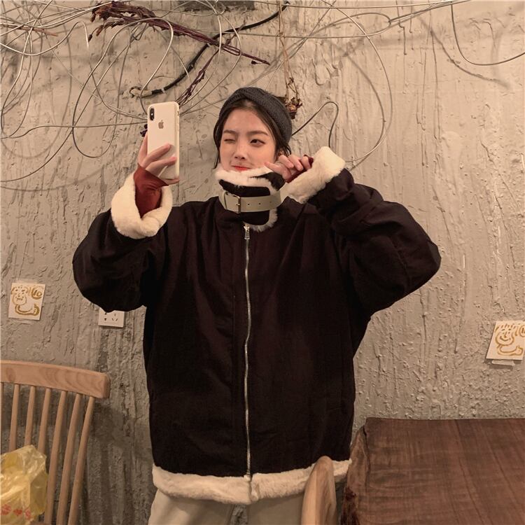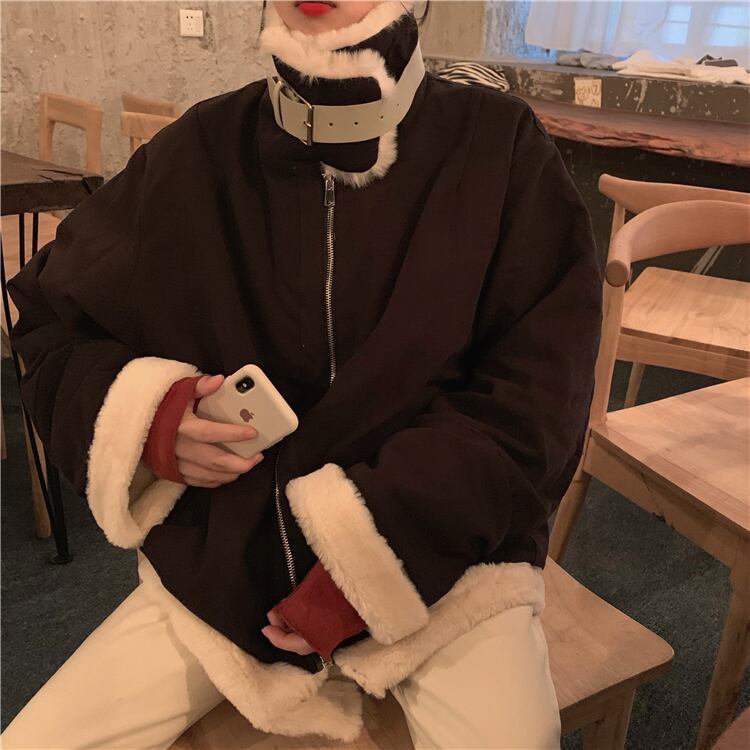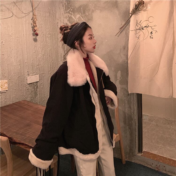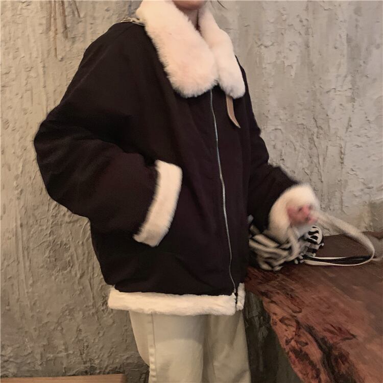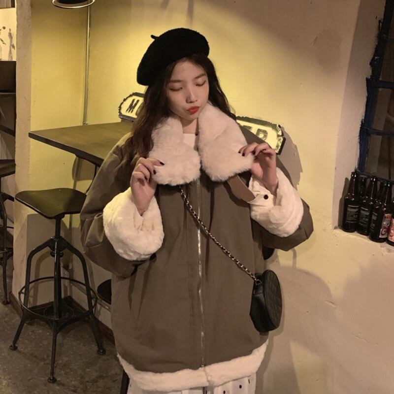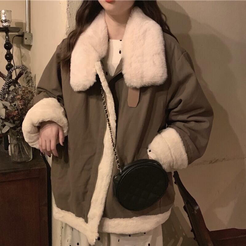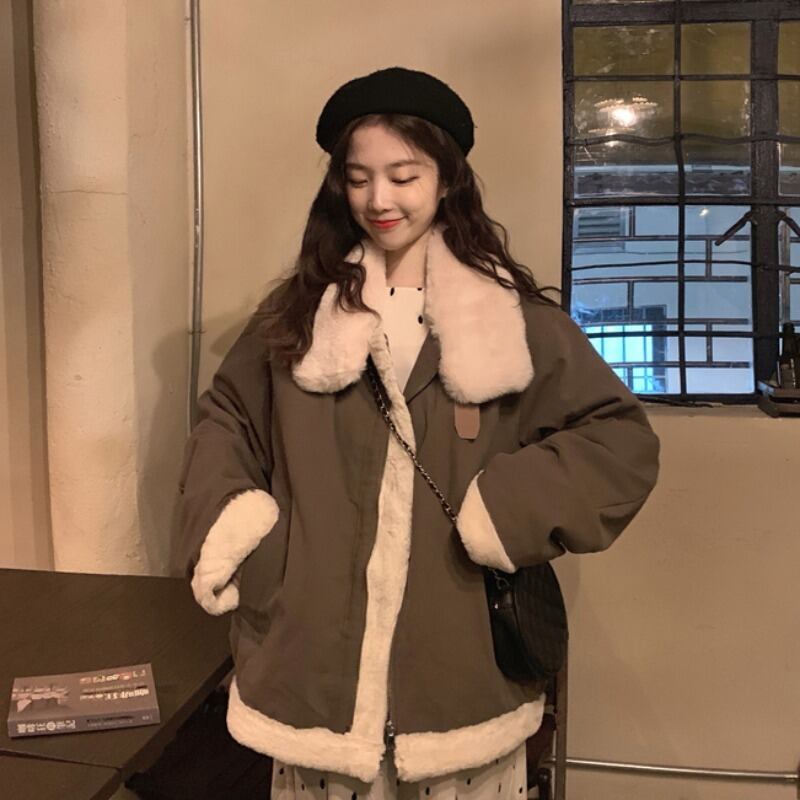 ウィンターウールコート ルーズカジュアルジャケット レディース コットン 冬物 萌量不足77450439200