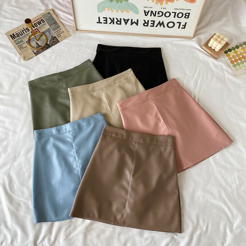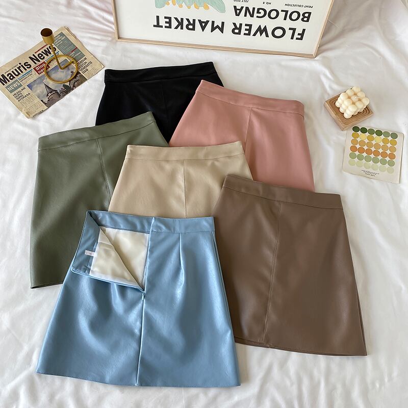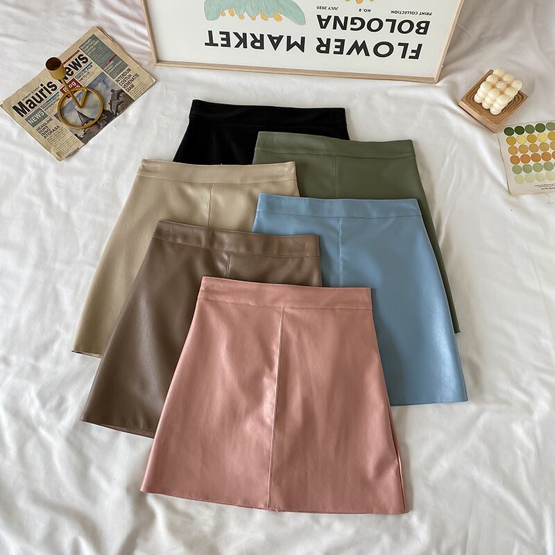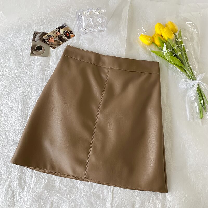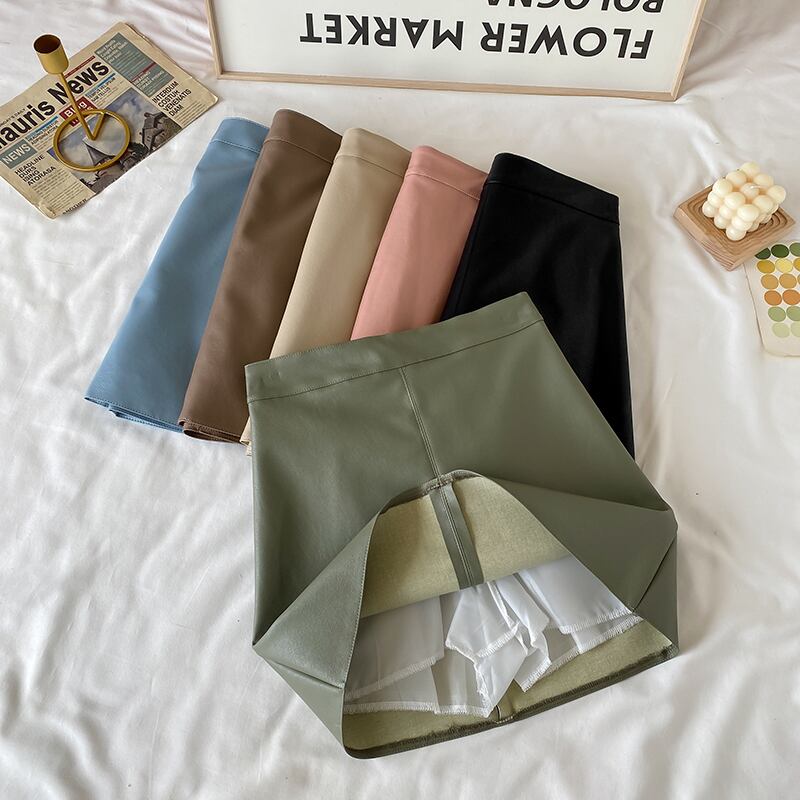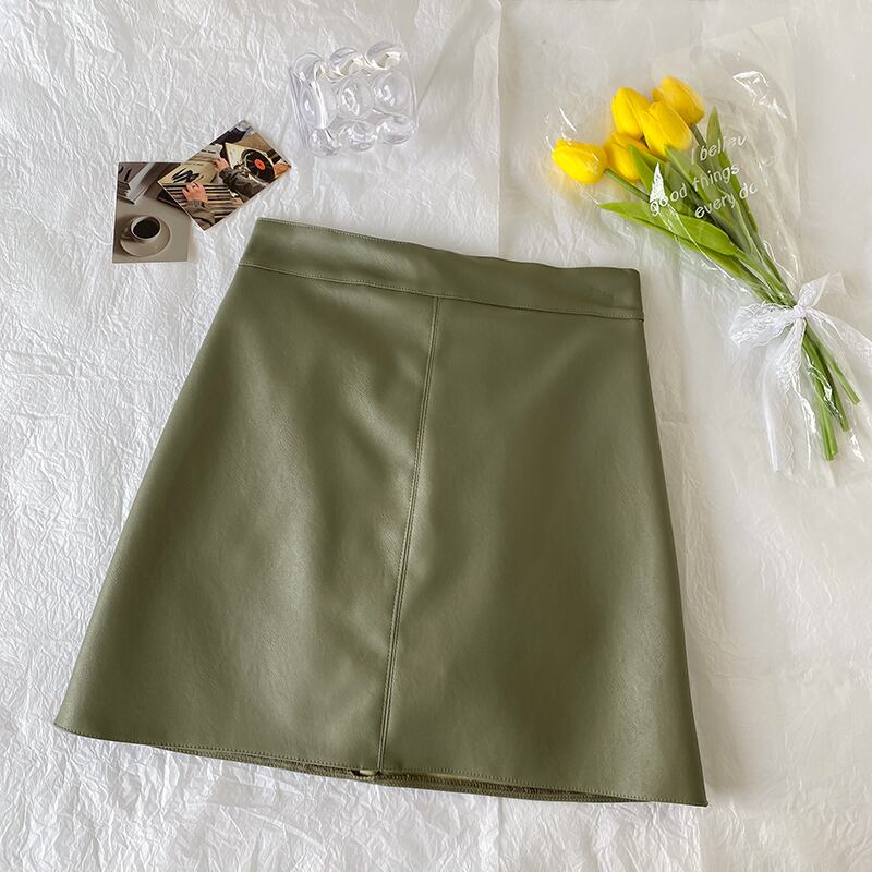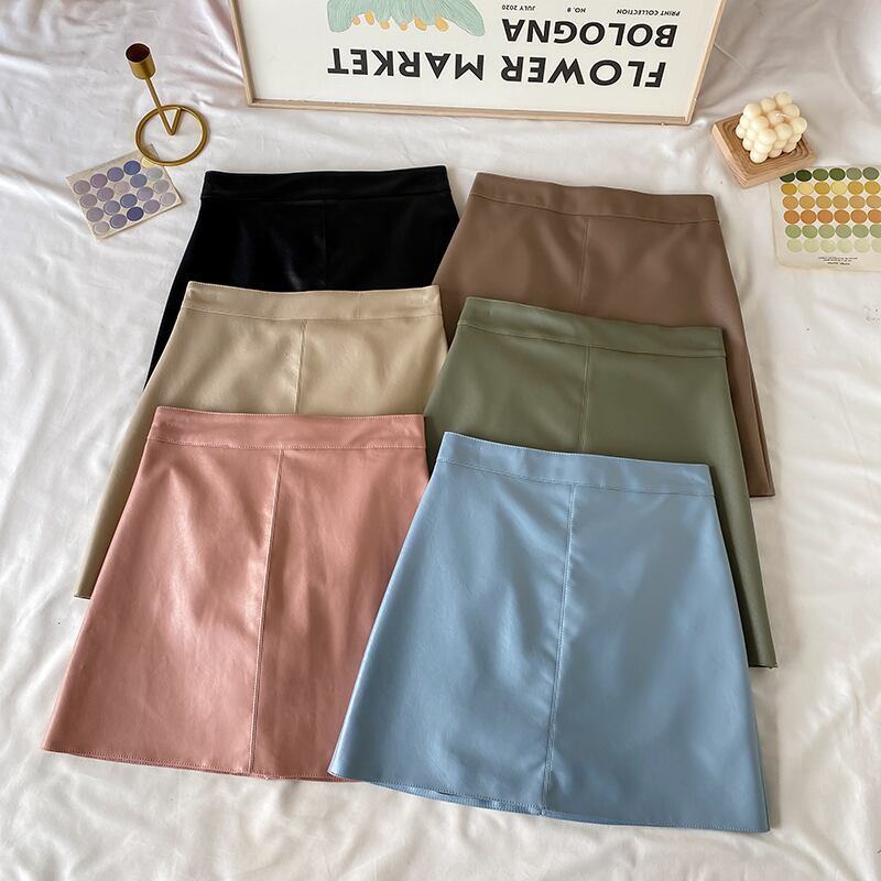 Aラインスカート レザーハイウェストウェストオータムショート薄手ウィンター 秋物 冬物 萌量不足85129097829