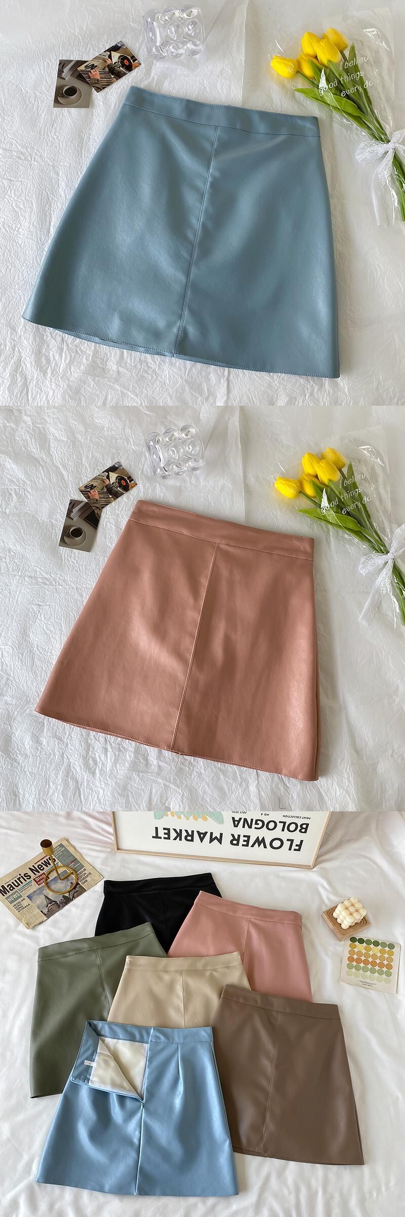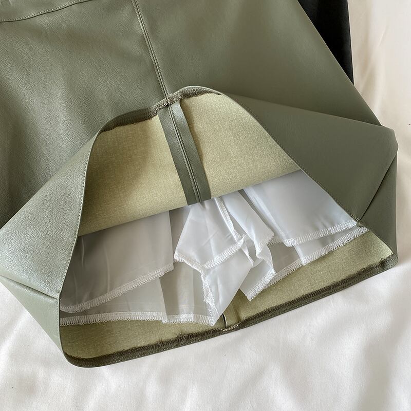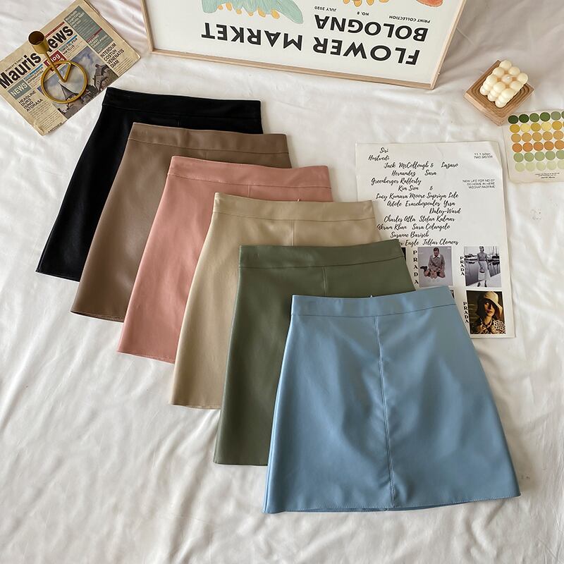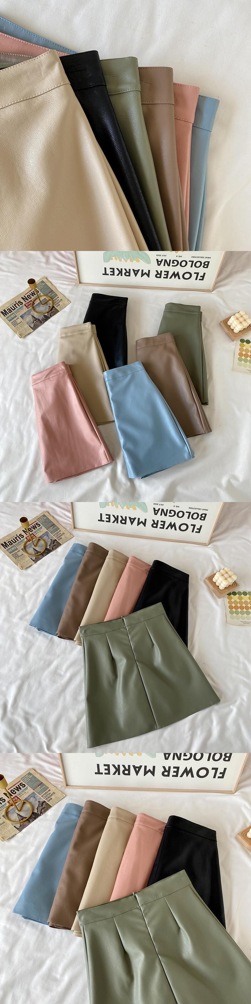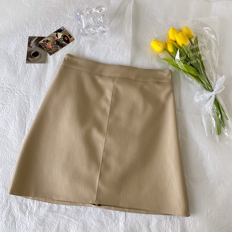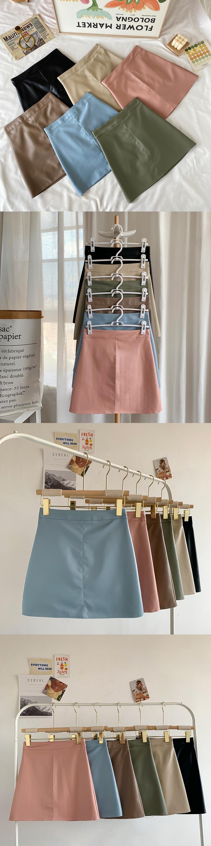 Aラインスカート レザーハイウェストウェストオータムショート薄手ウィンター 秋物 冬物 萌量不足85129097829