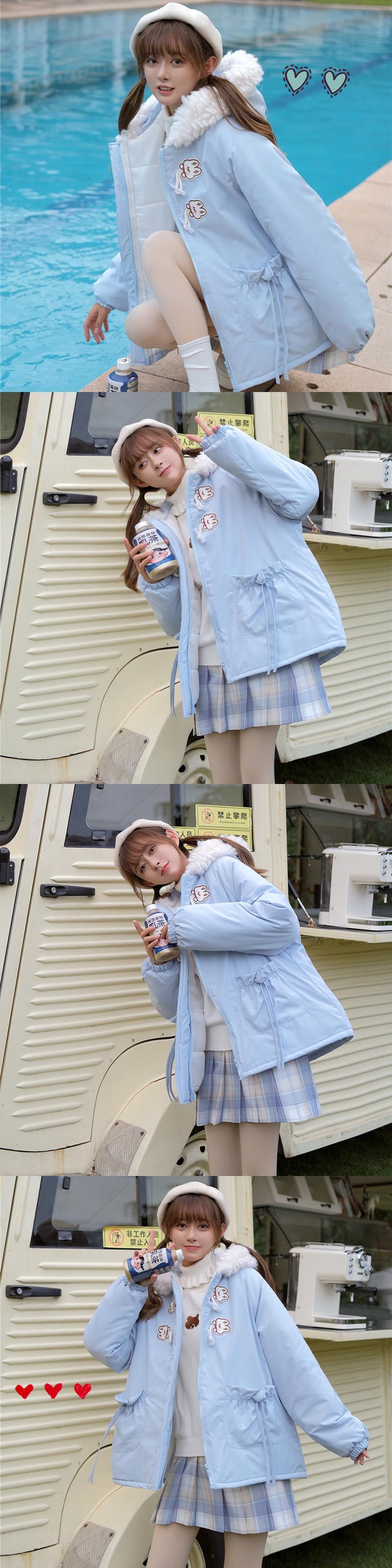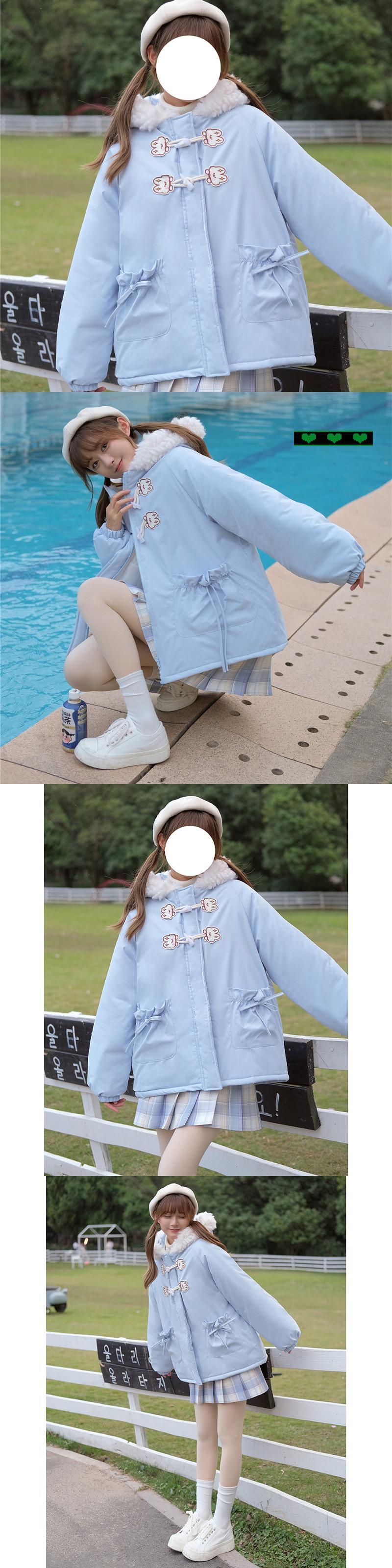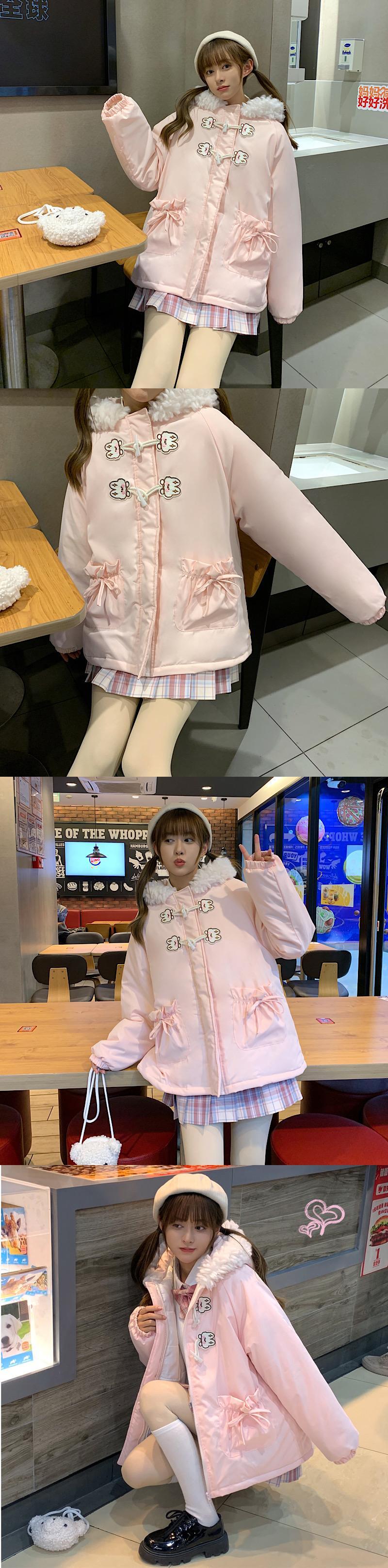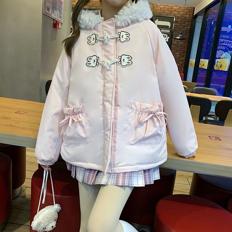 ウィンターレッドコート レディースベルベットルーズファーカラーフードジャケット コットン 冬物 萌量不足72851012383