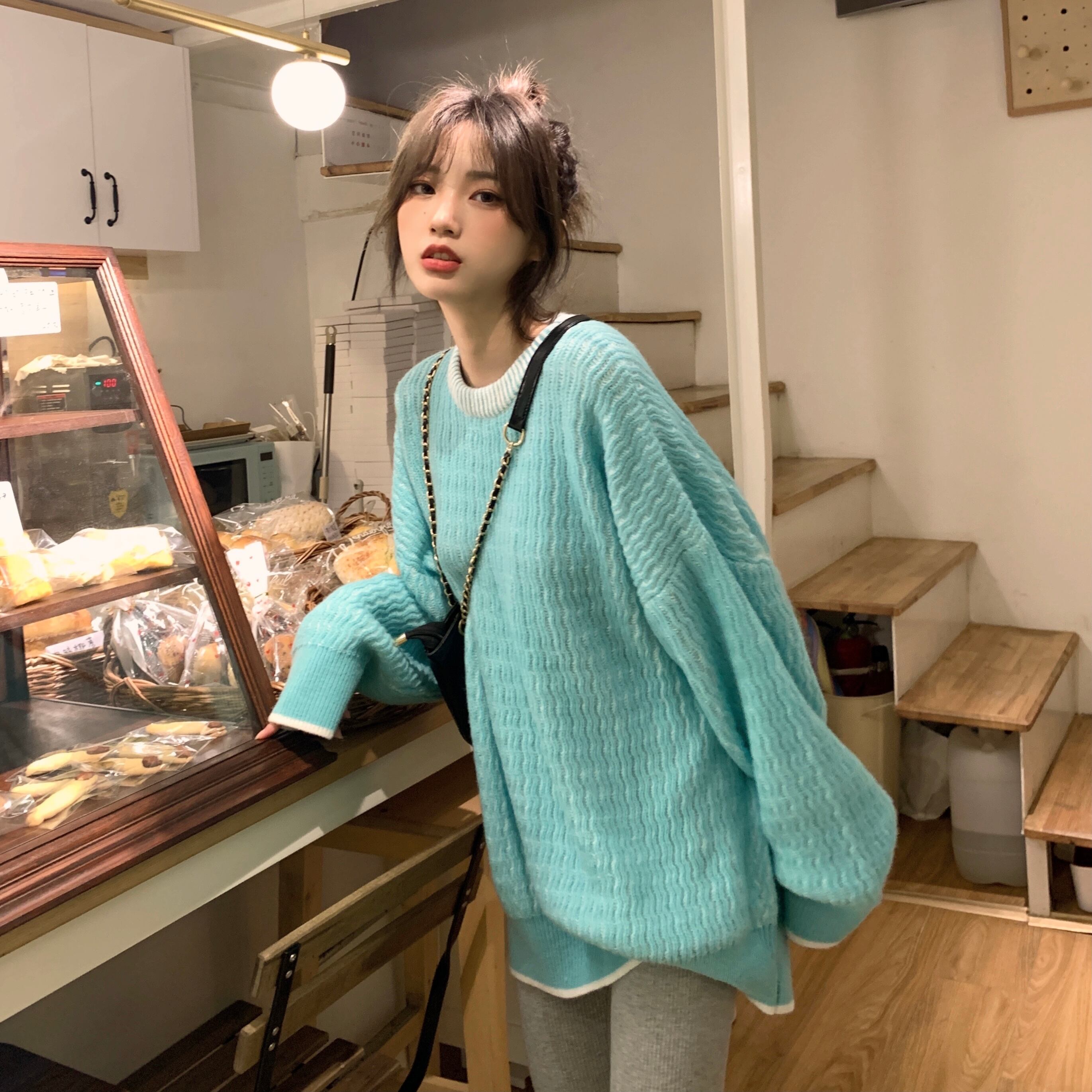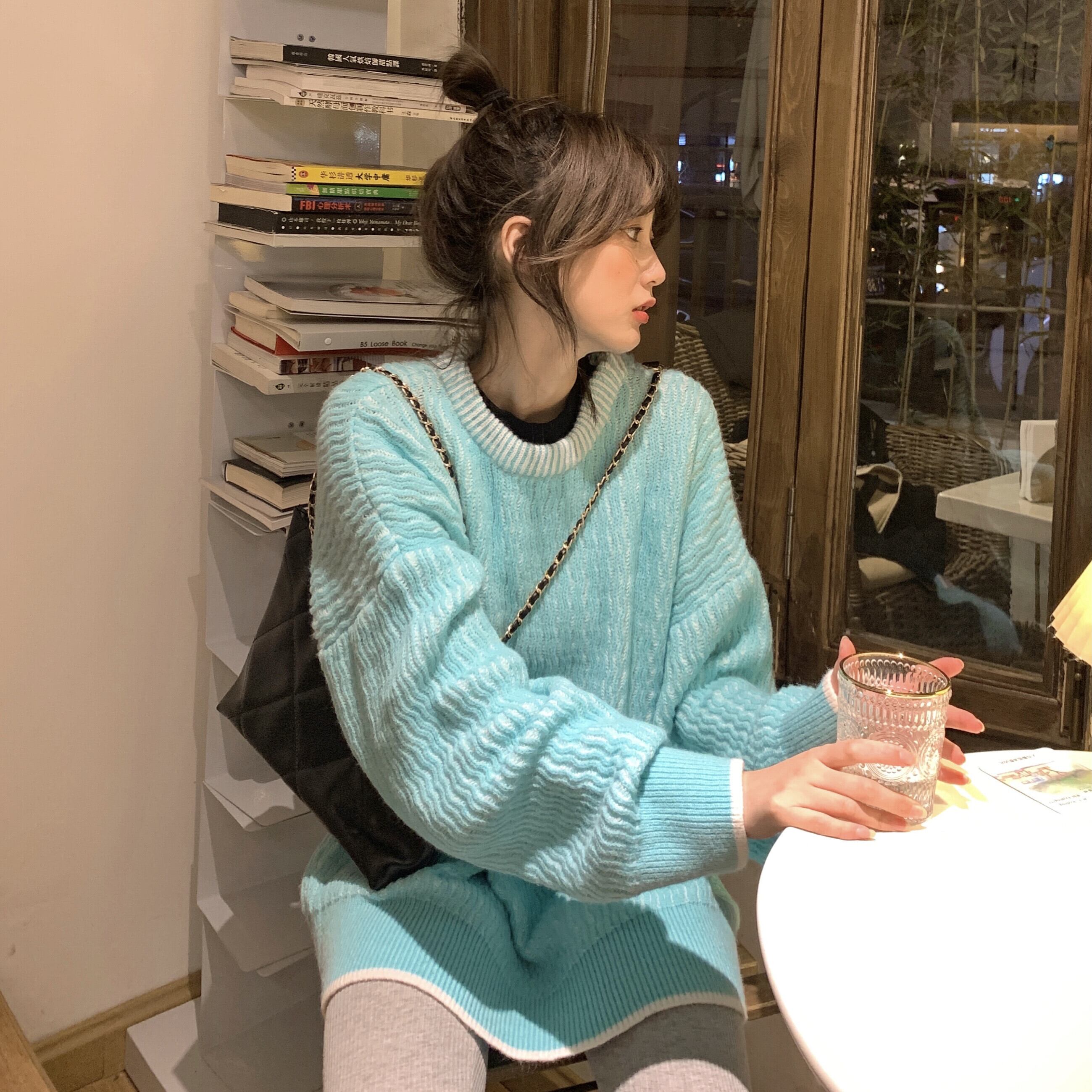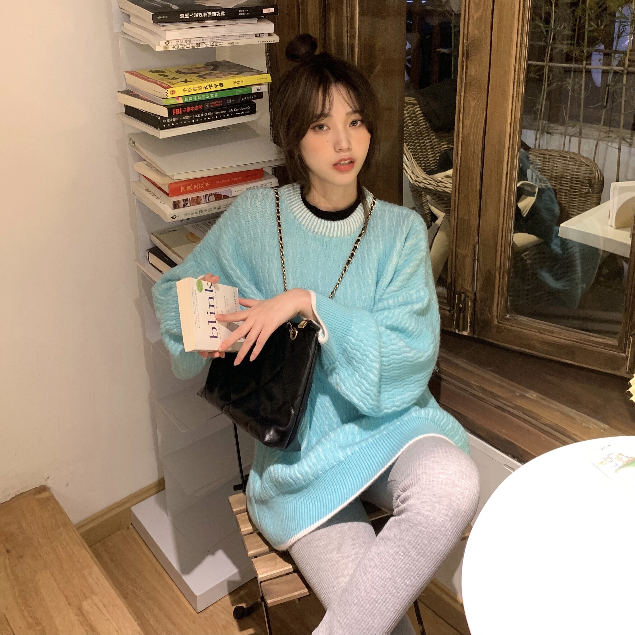 オータムウィンタールーズブルーラウンドネックプルオーバー セーター ブラウス 秋物 冬物 Oネック 萌量不足37451227028