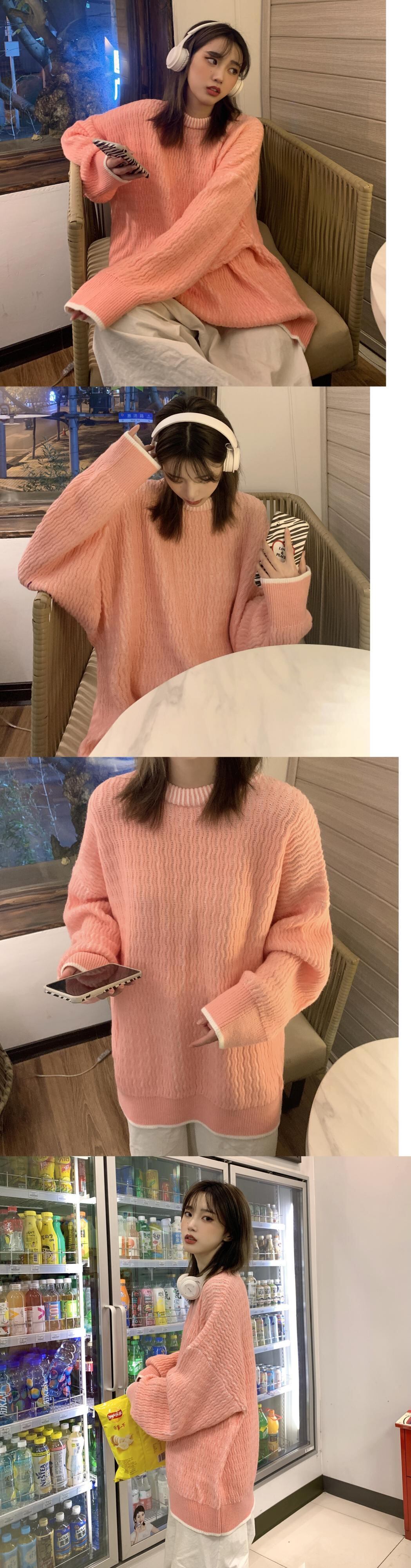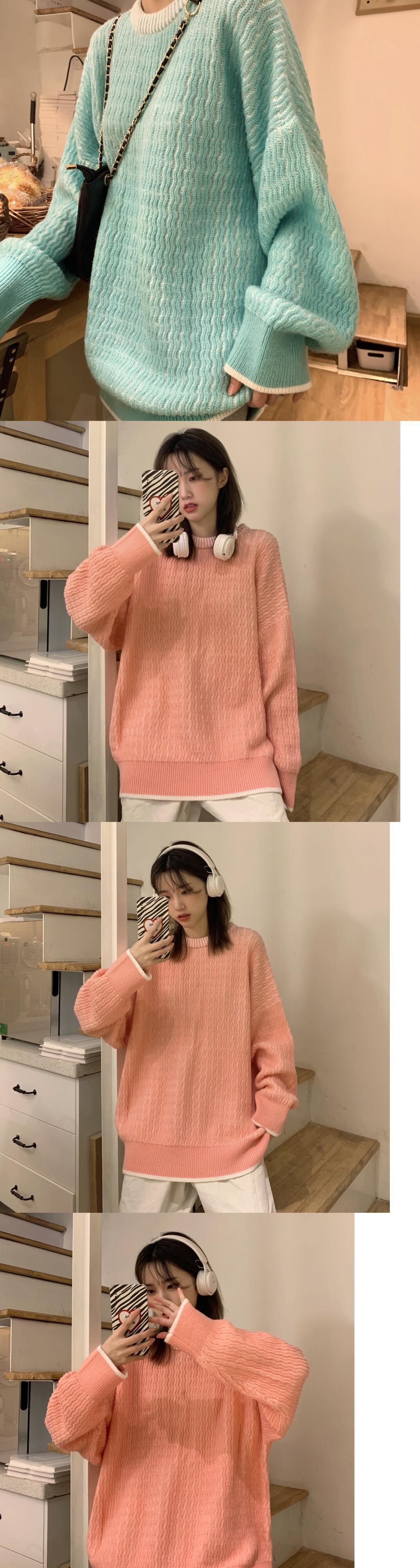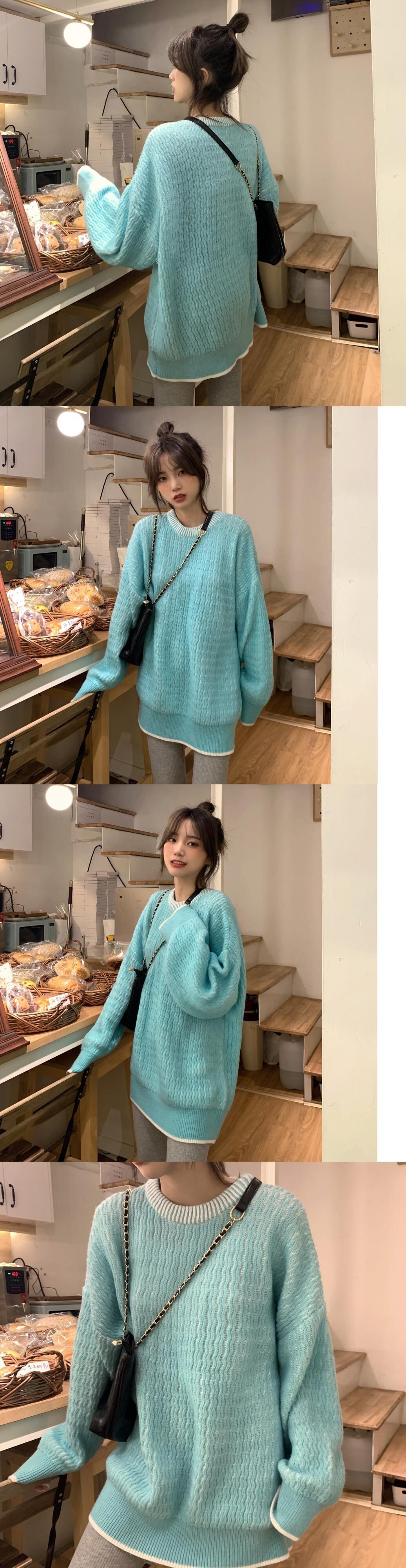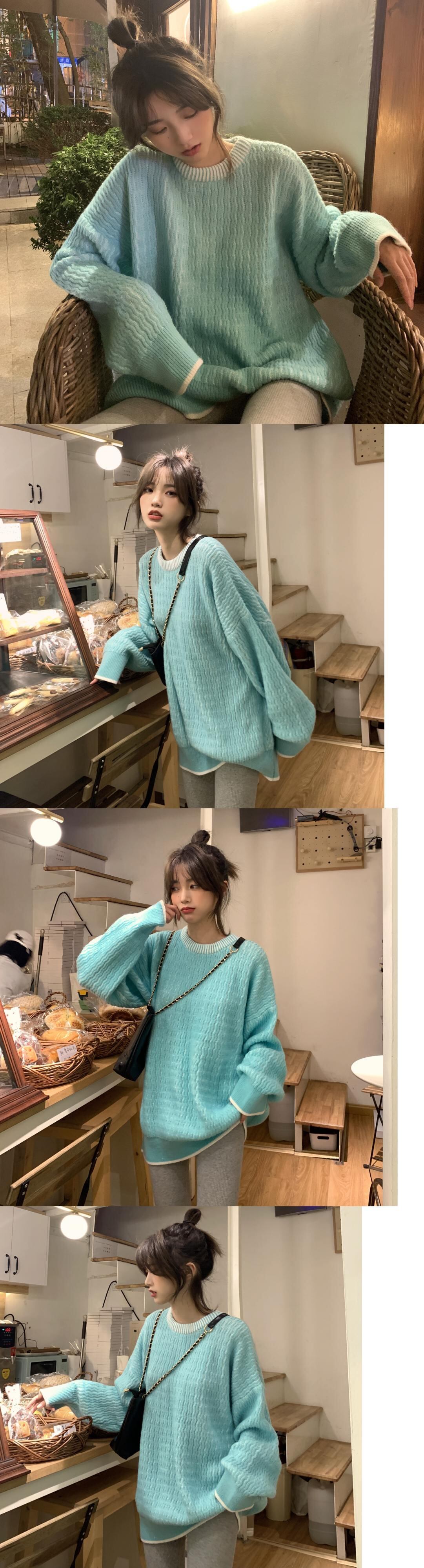 オータムウィンタールーズブルーラウンドネックプルオーバー セーター ブラウス 秋物 冬物 Oネック 萌量不足37451227028
