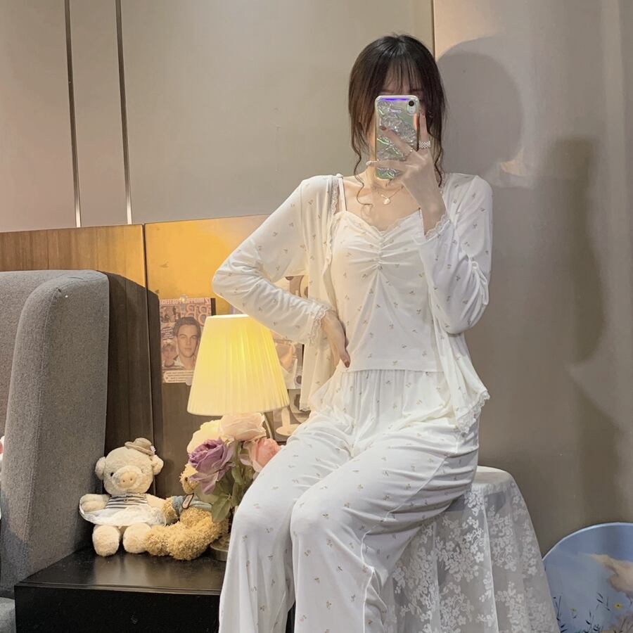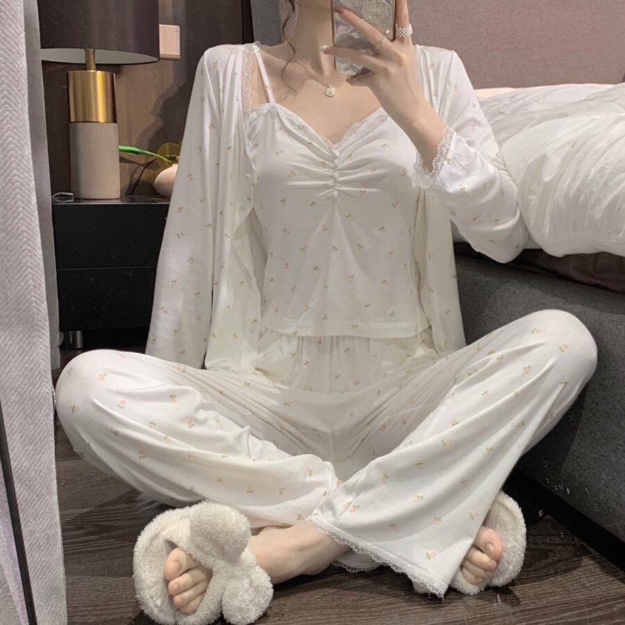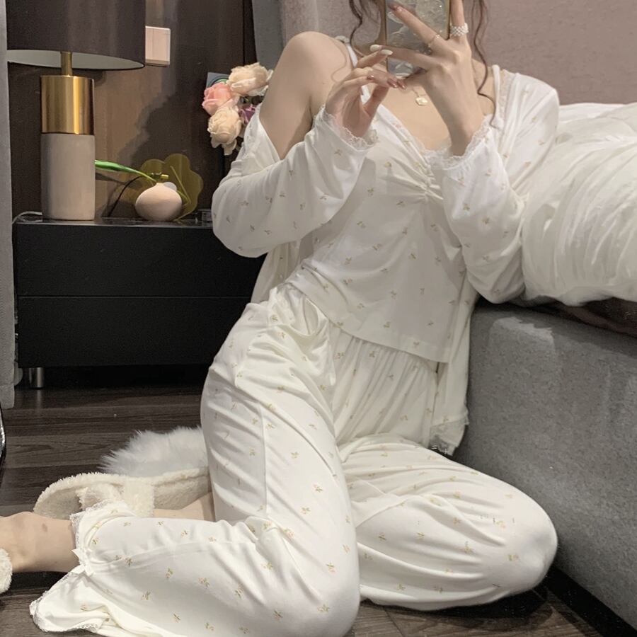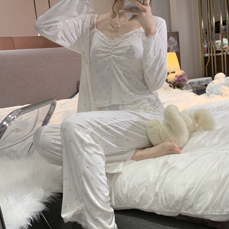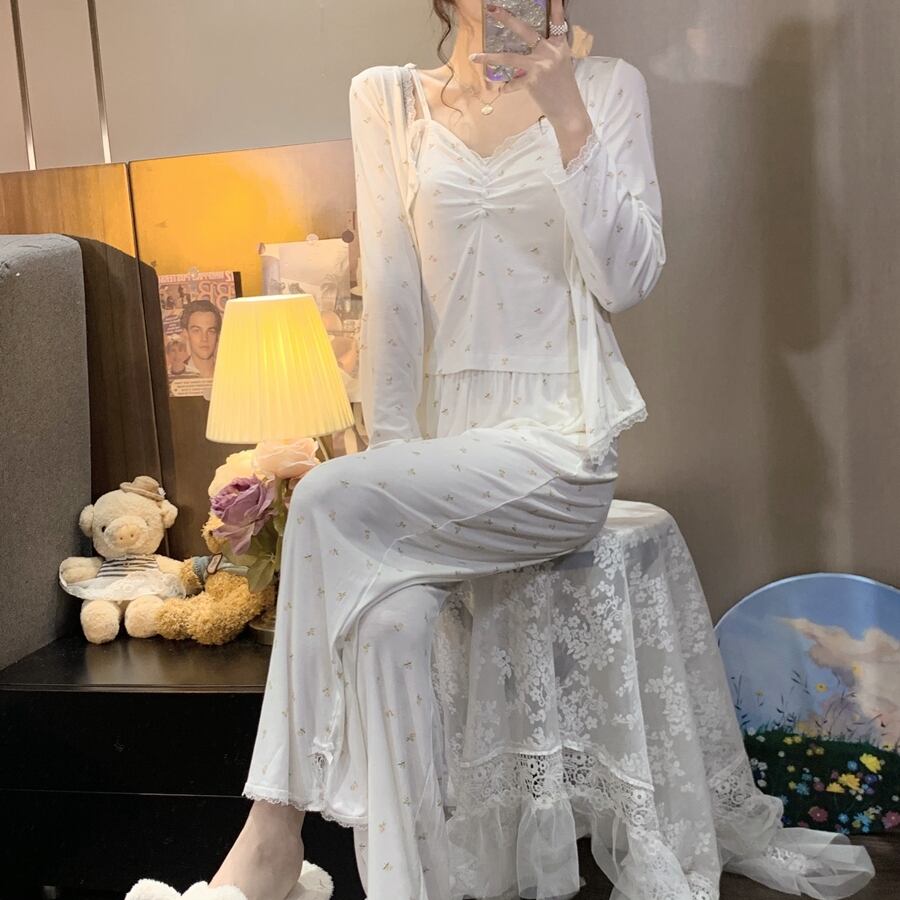 色:花柄のスリーピーススーツ,花のネグリジェ