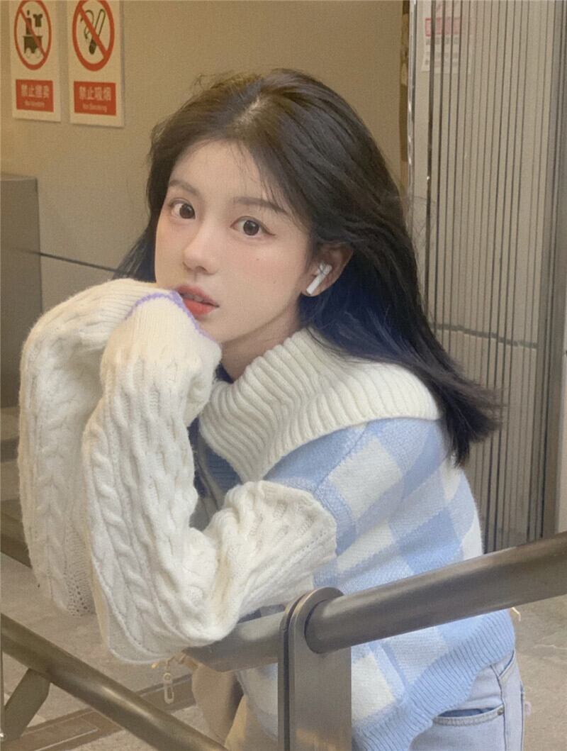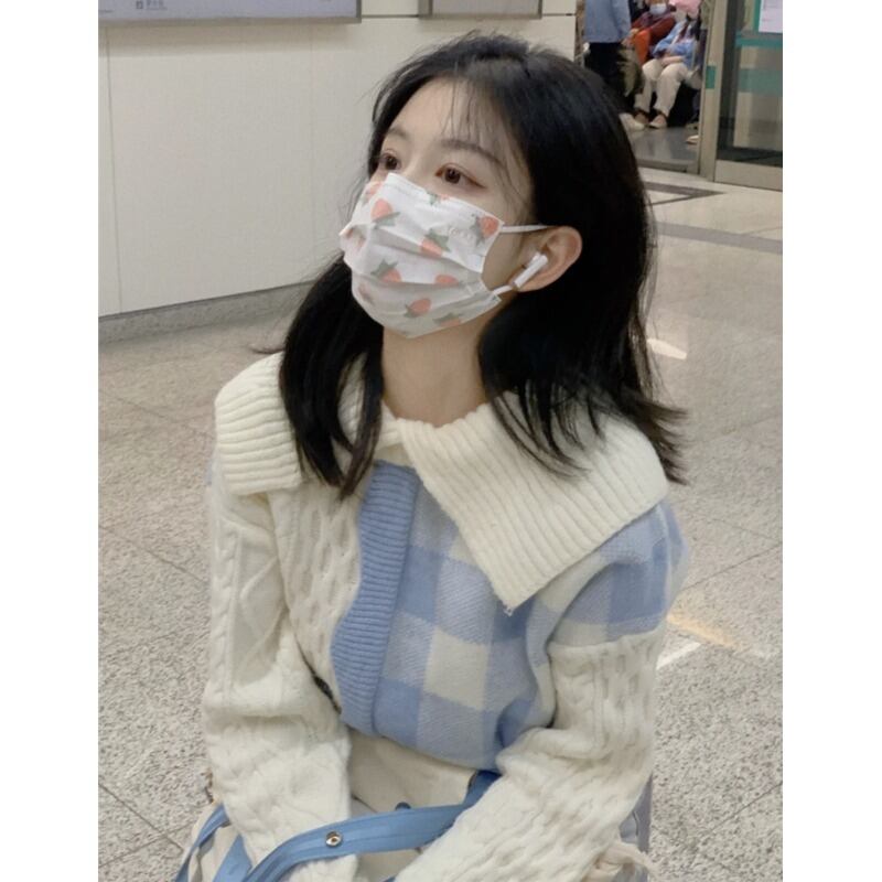 格子柄セーター レディースオータムウィンターニットカーディガンジャケット 秋物 冬物 ステッチ 萌量不足5729756275