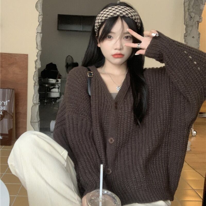 セーター ジャケット オータムウィンタースタンダードスタイルニットカーディガントップス レトロ 秋物 冬物 萌量不足46645375396