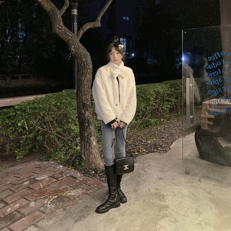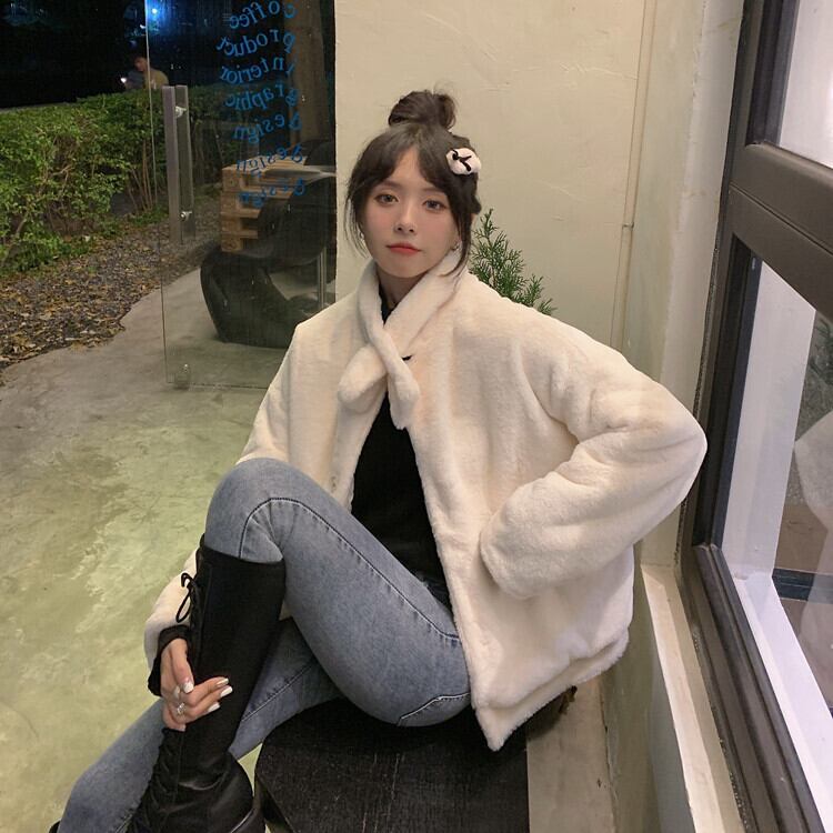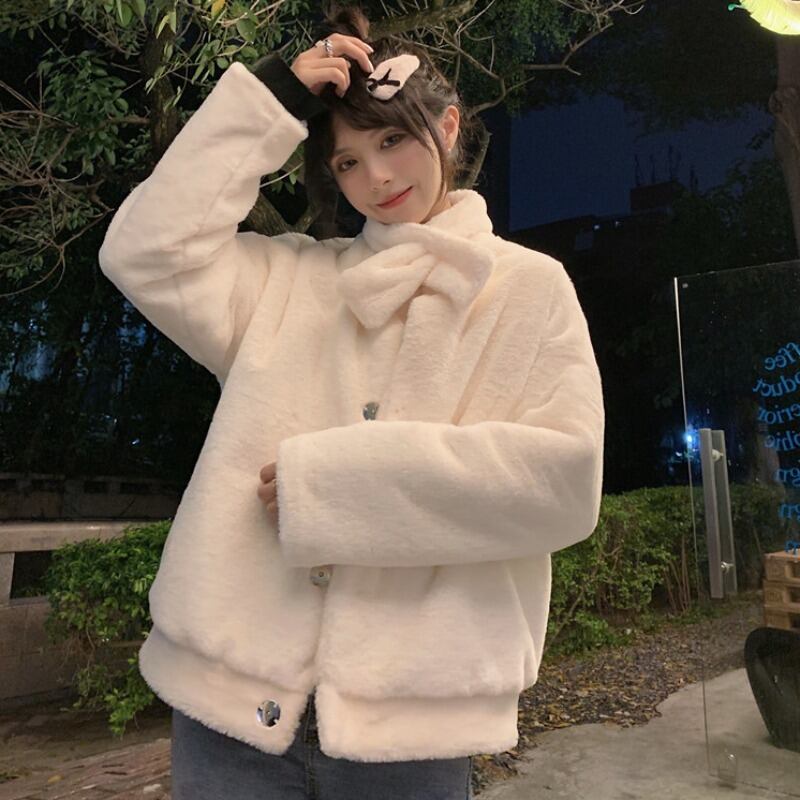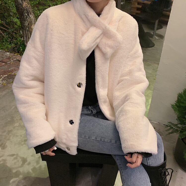 ウィンタースカーフ カラーベルベットコート 冬物 萌量不足1811453833