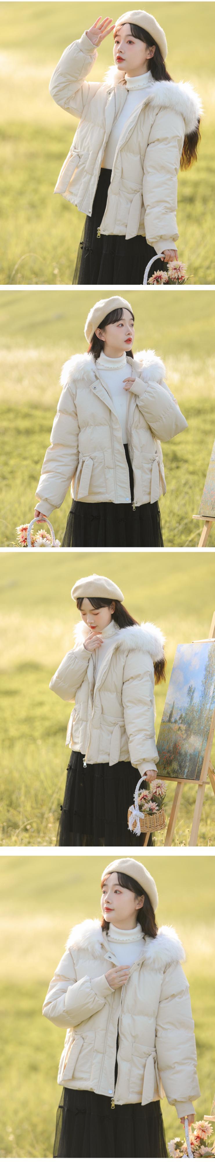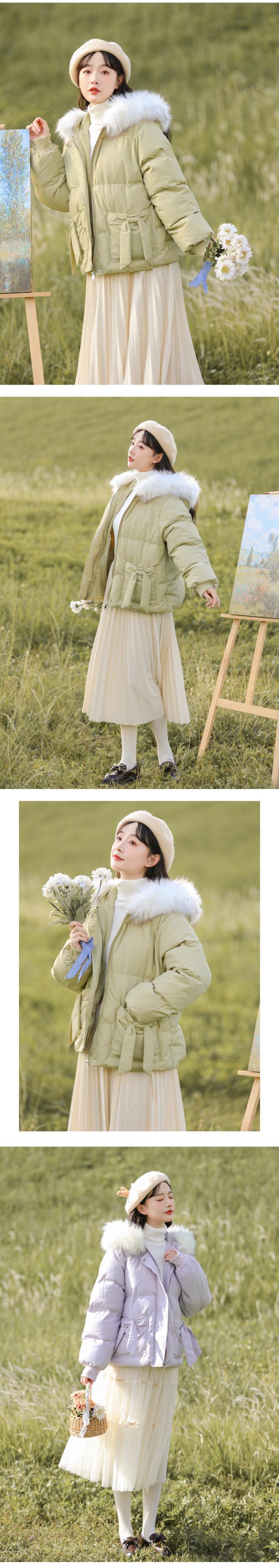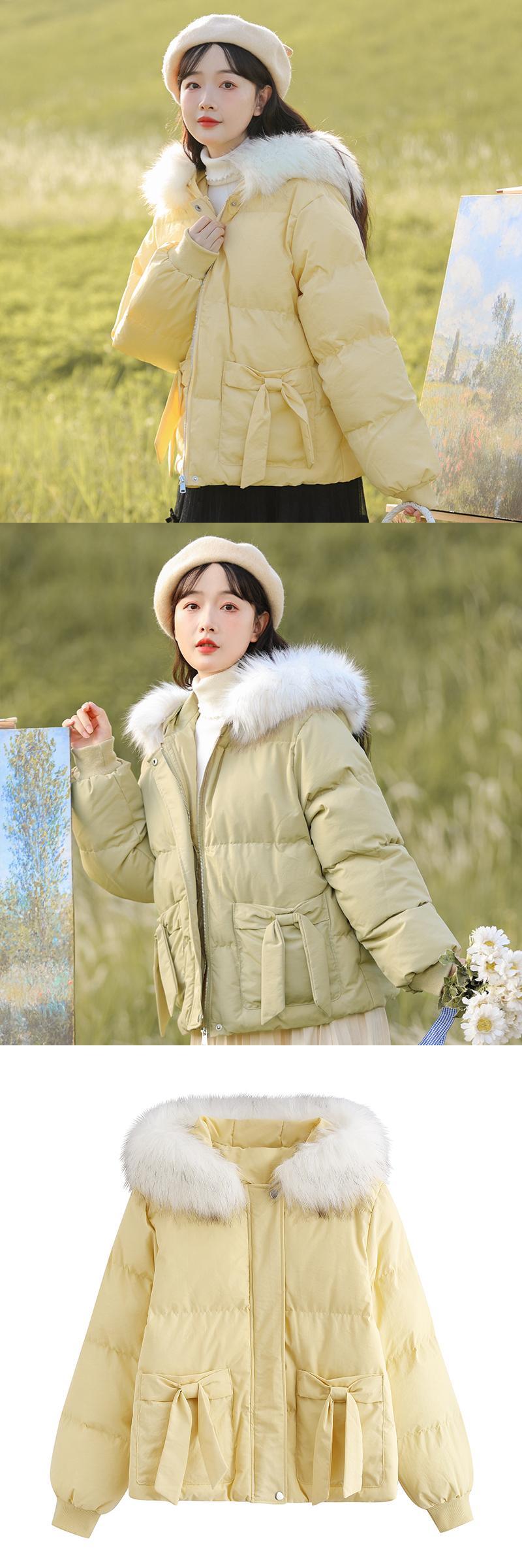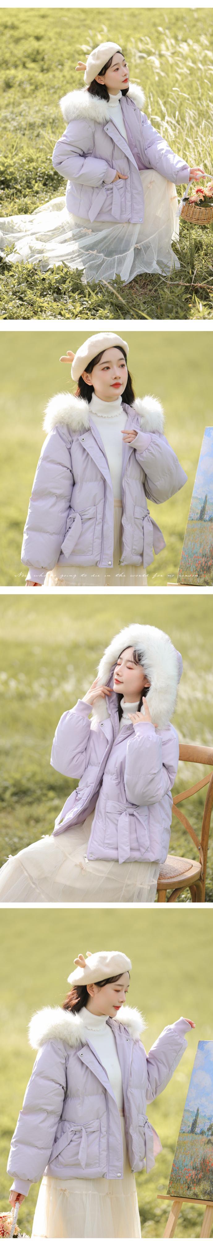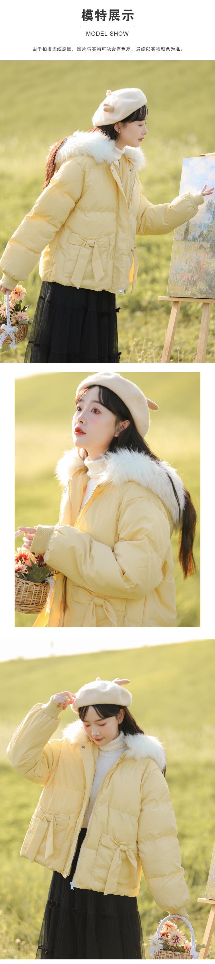 ファーカラーショートジャケット ウィンター リボン コットン 冬物 萌量不足39541051189