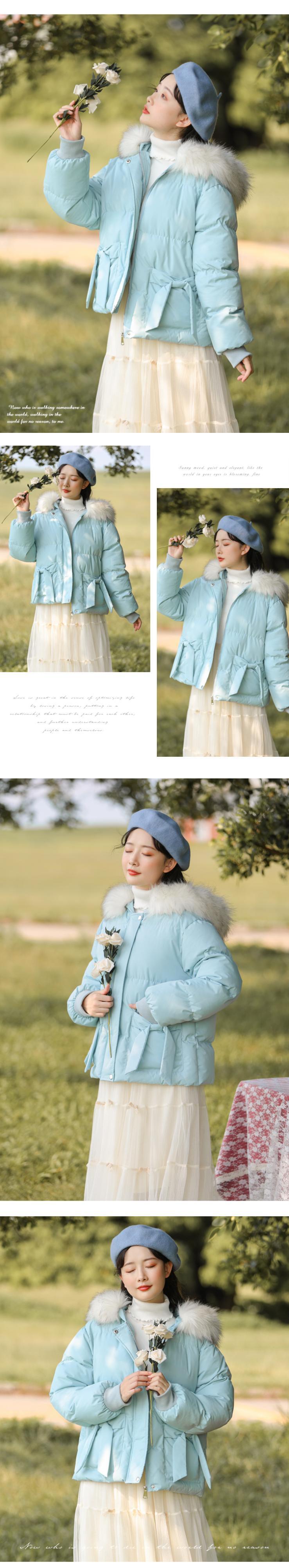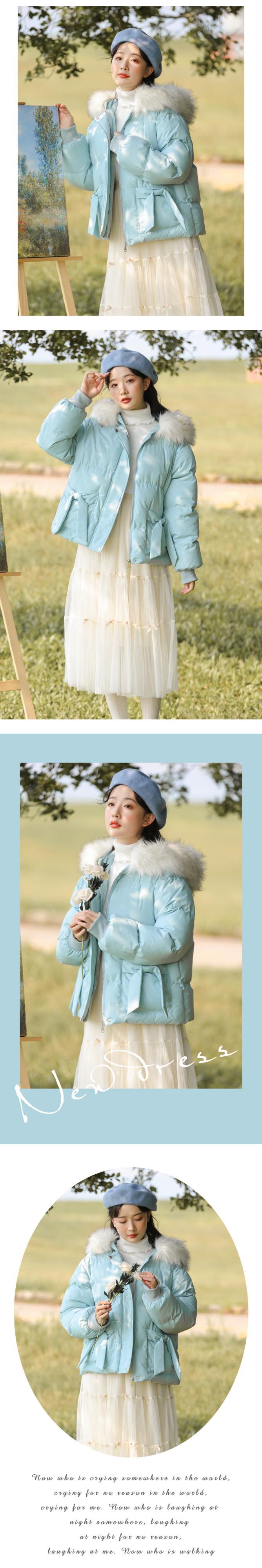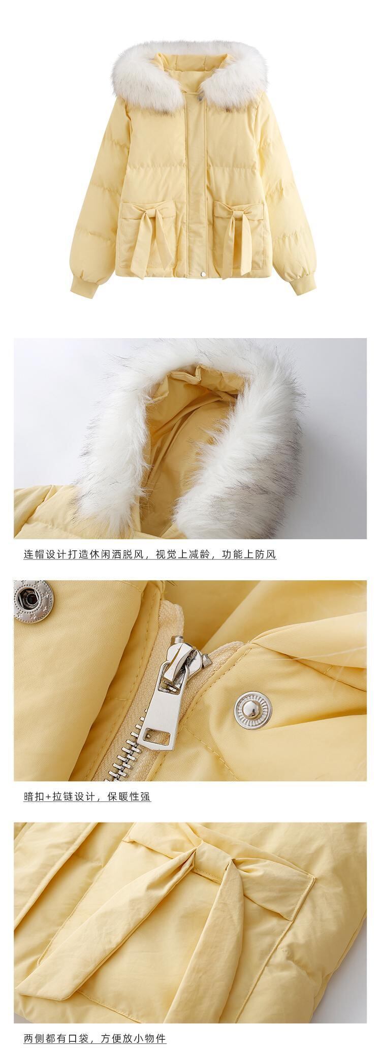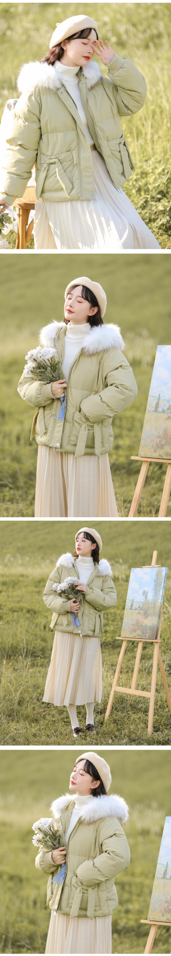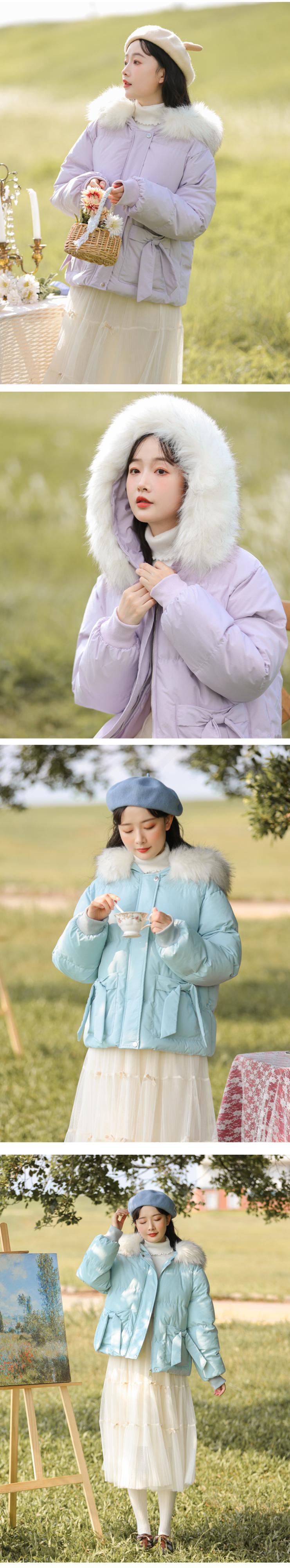 ファーカラーショートジャケット ウィンター リボン コットン 冬物 萌量不足39541051189