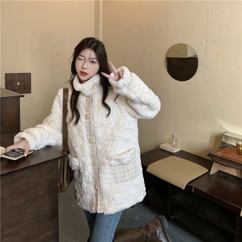 ウィンターウールジャケット ベルベットレディースルーズカラー コットン 冬物 萌量不足21240572888