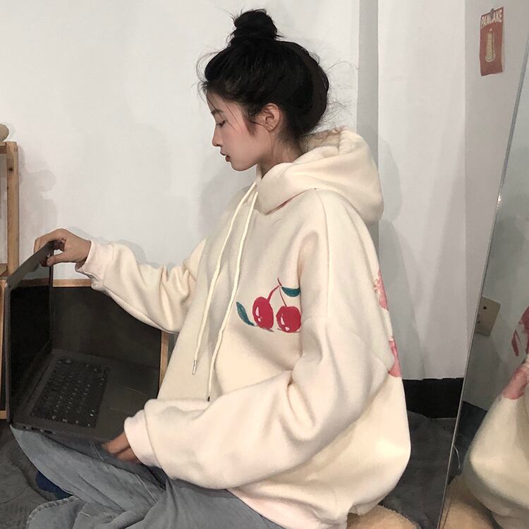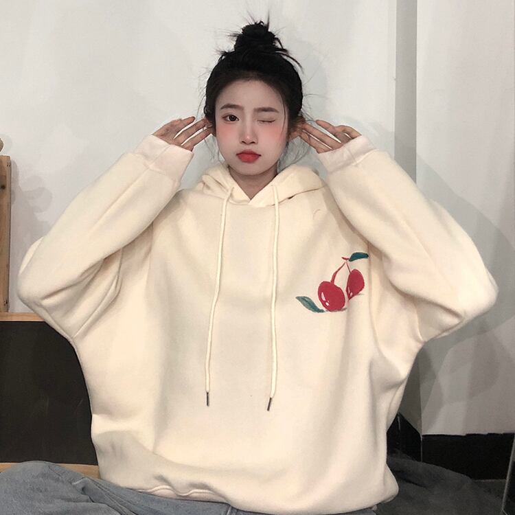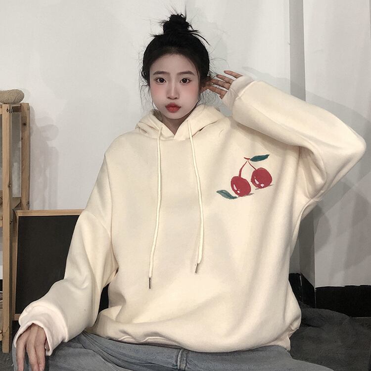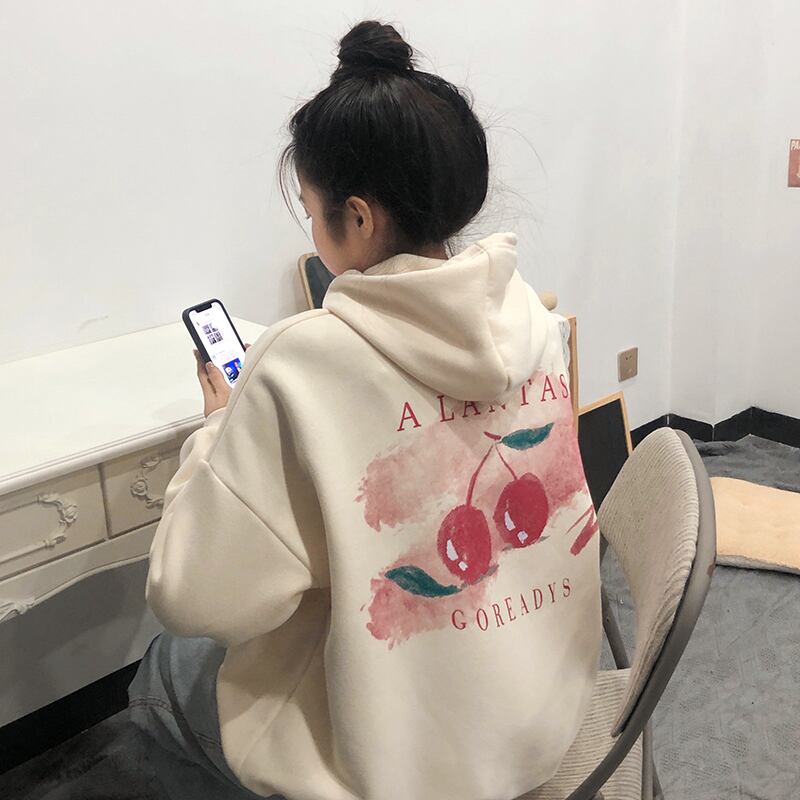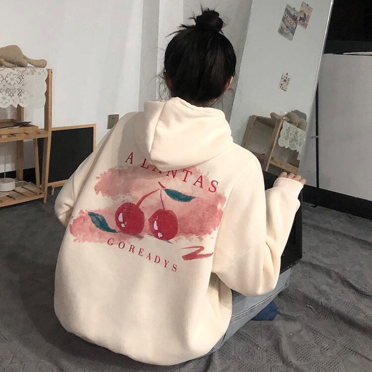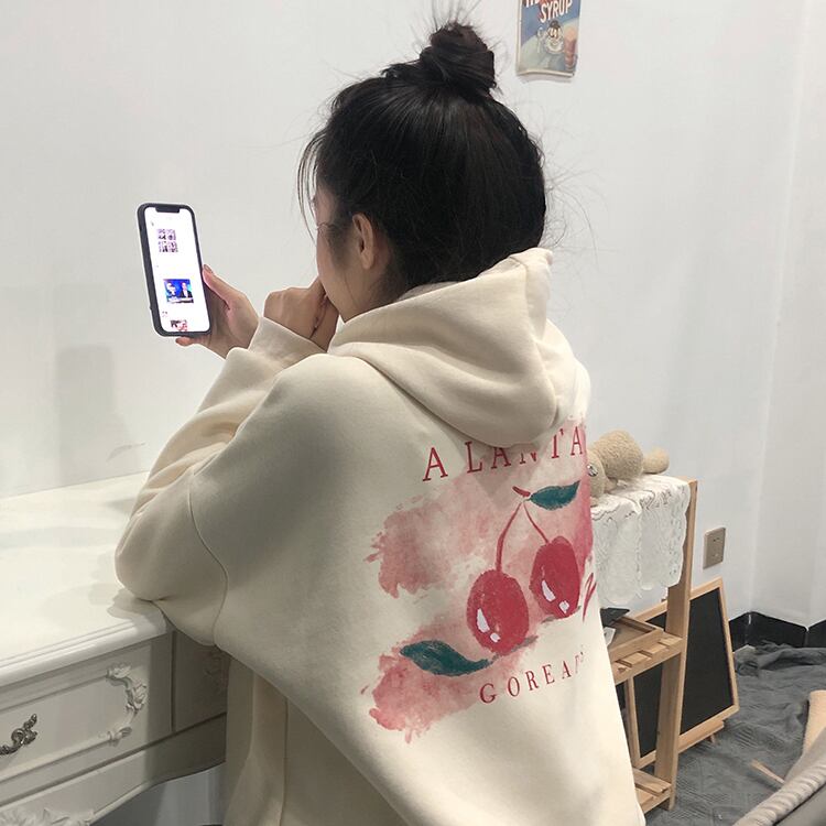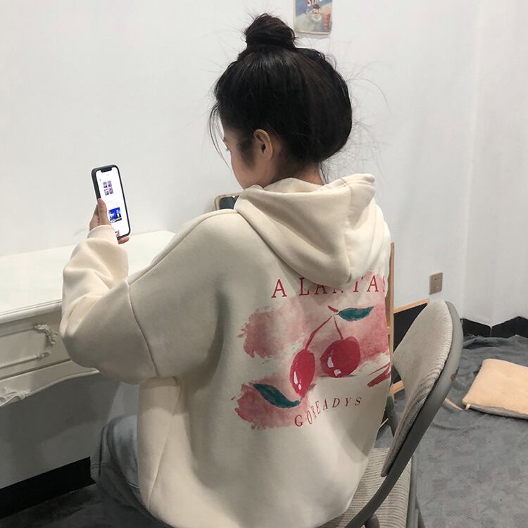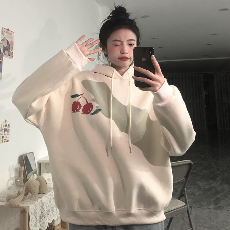 ウィンターベルベットセーター プリント柄フードルーズジャケット オータム 秋物 冬物 萌量不足46200881920