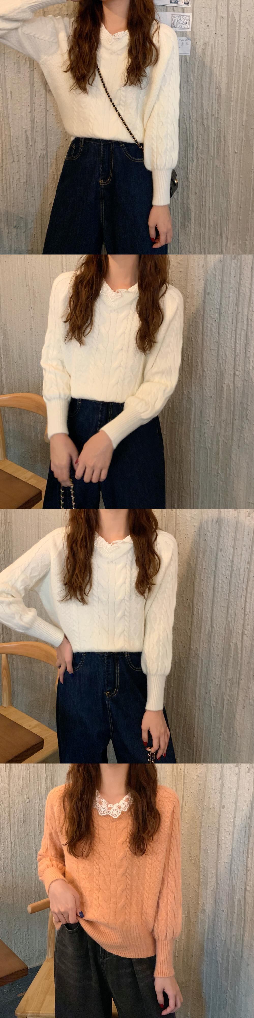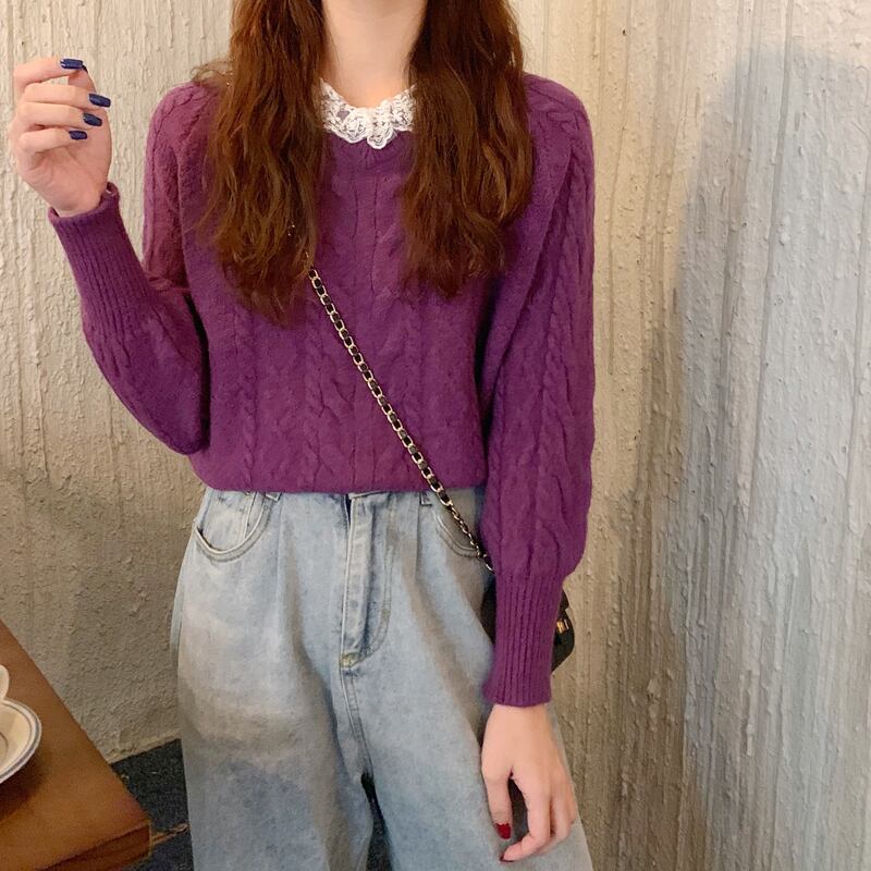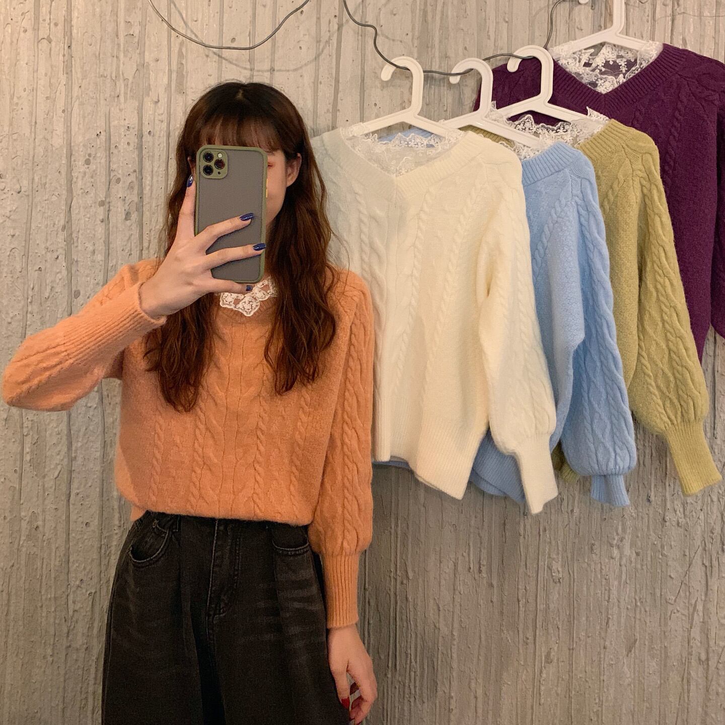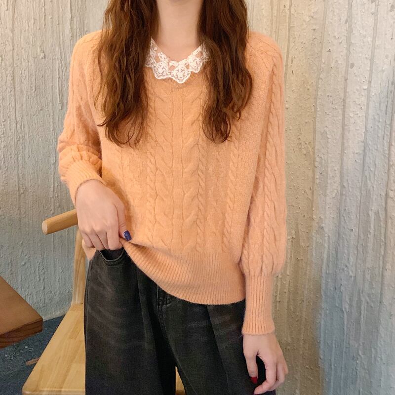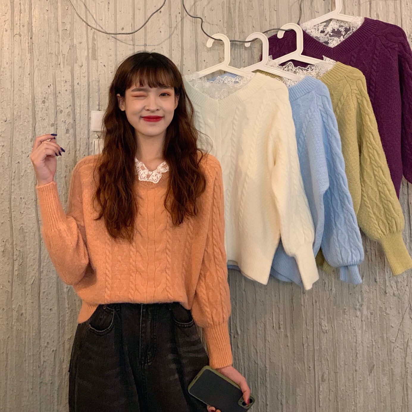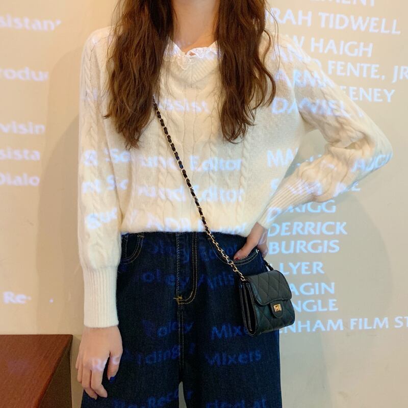 ホワイトプルオーバー オータムウィンタースタイルスタンダードルーズVネックセーター レトロ 秋物 冬物 萌量不足5267406009