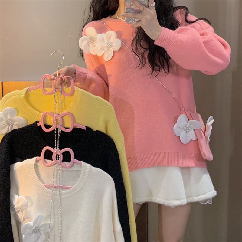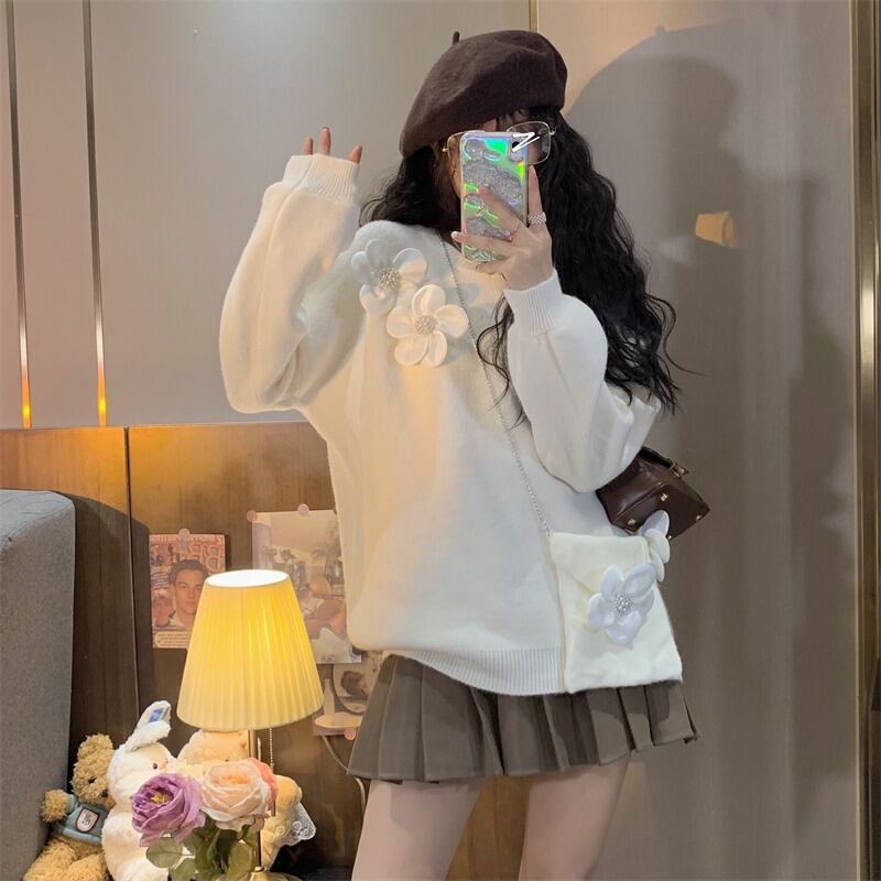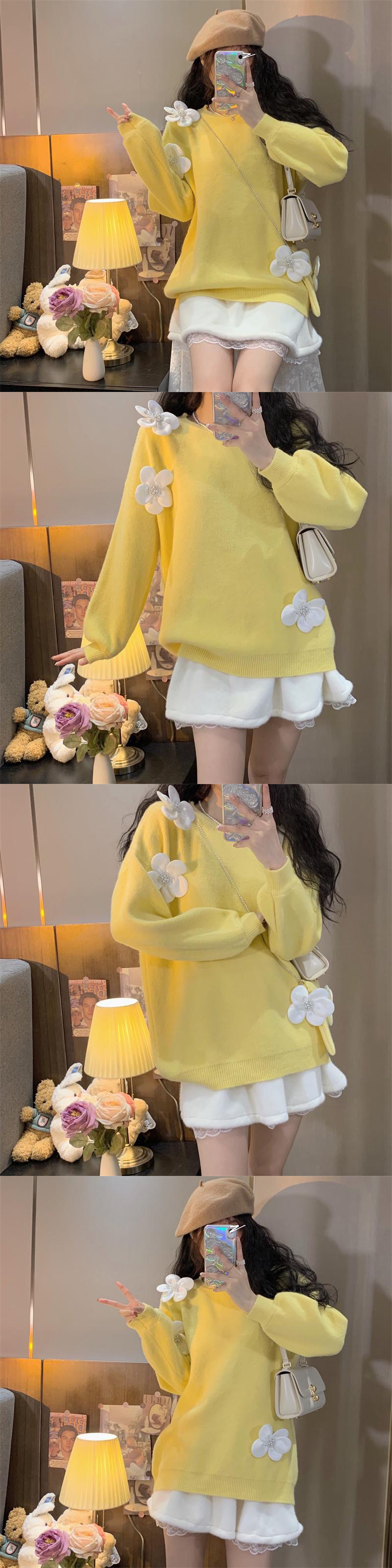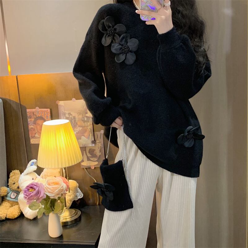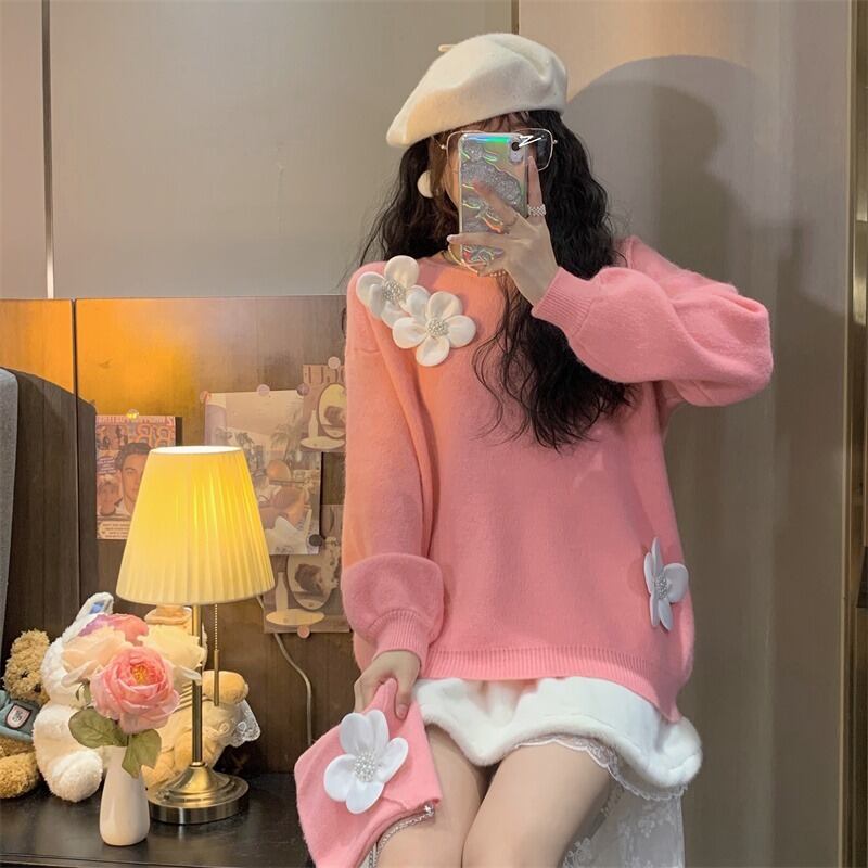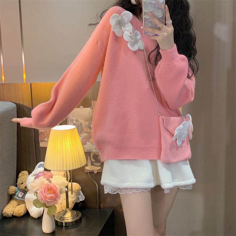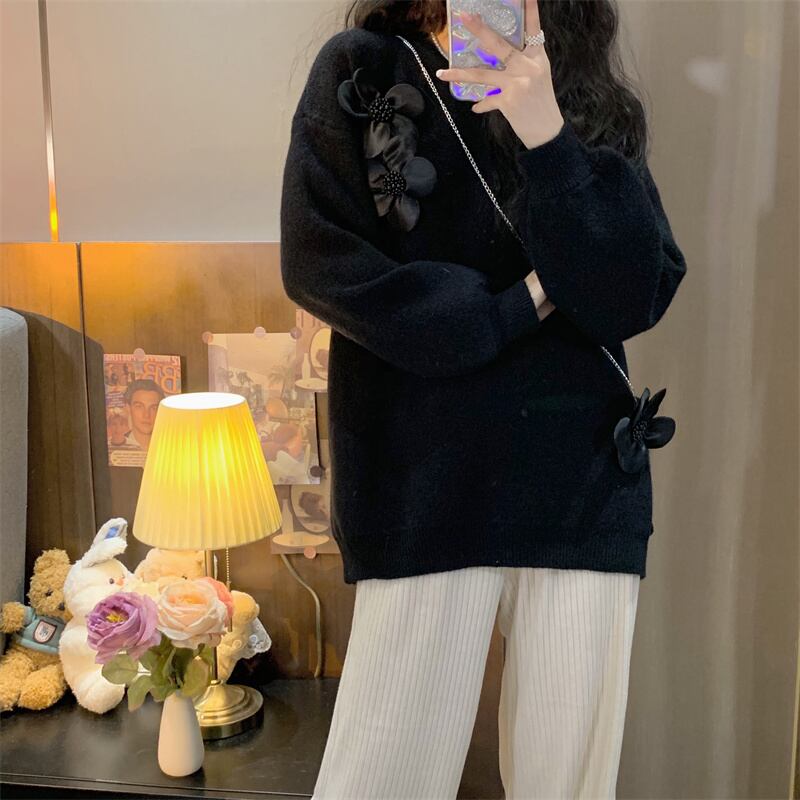 ルーズセーター レディースオータムウィンターニットブラウス 秋物 冬物 フラワーデザイン 萌量不足86783315052