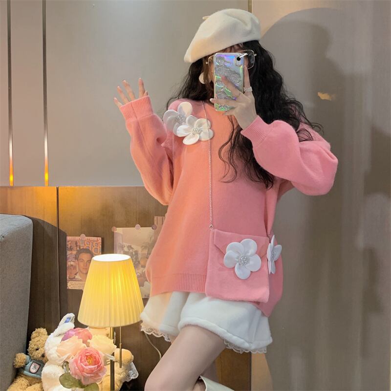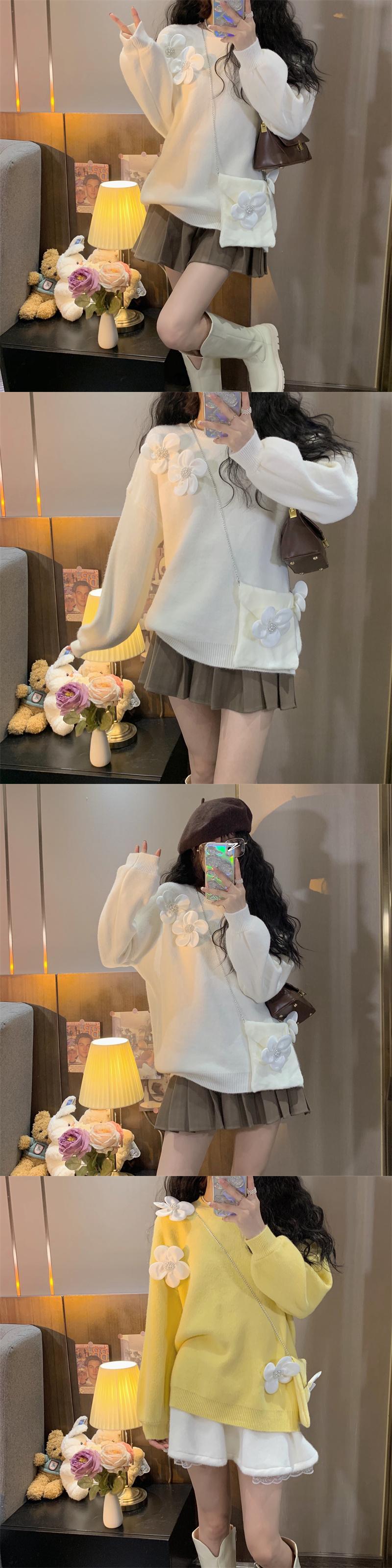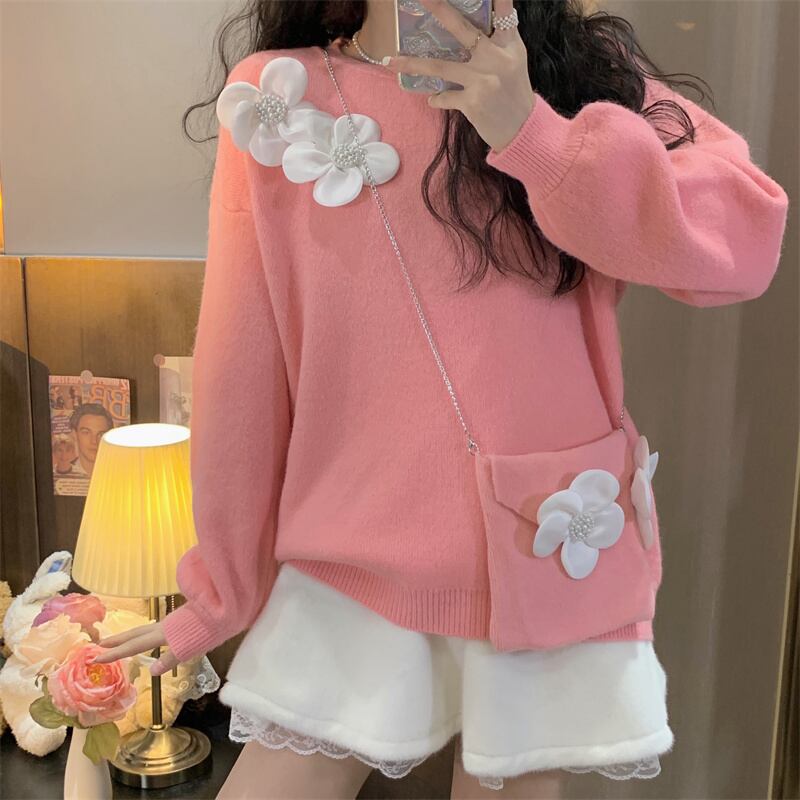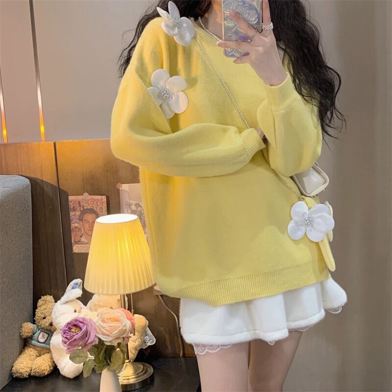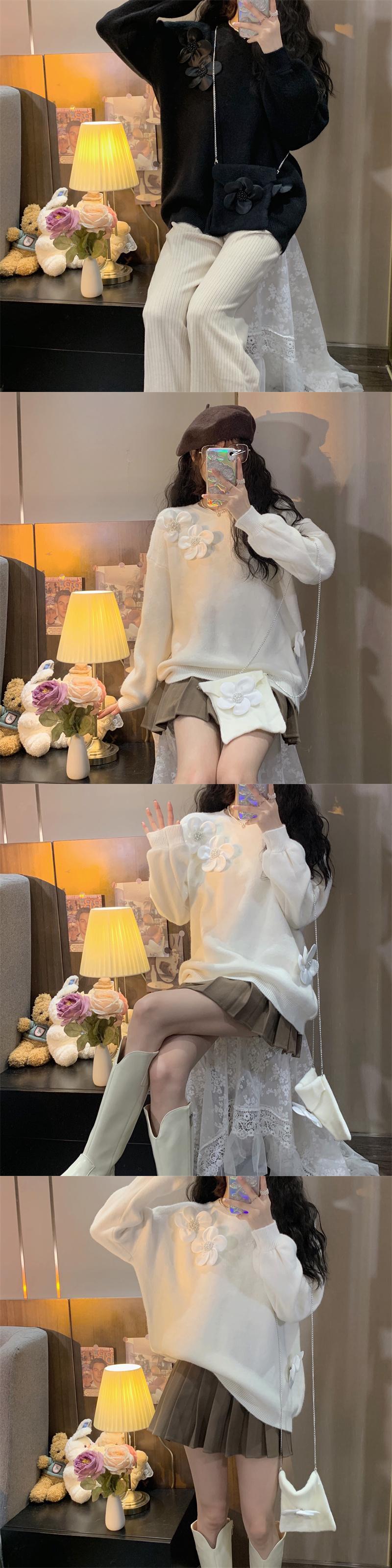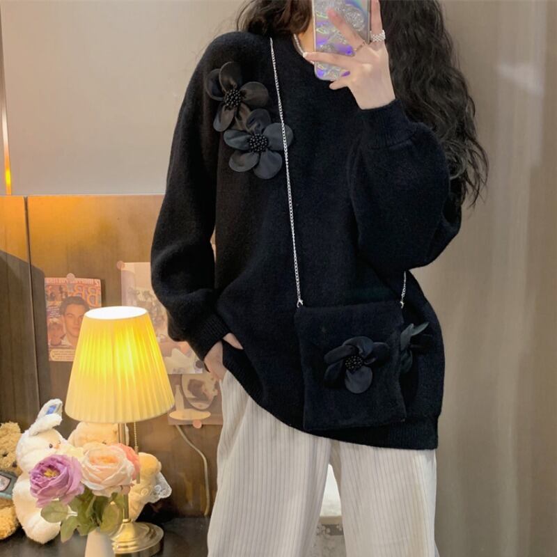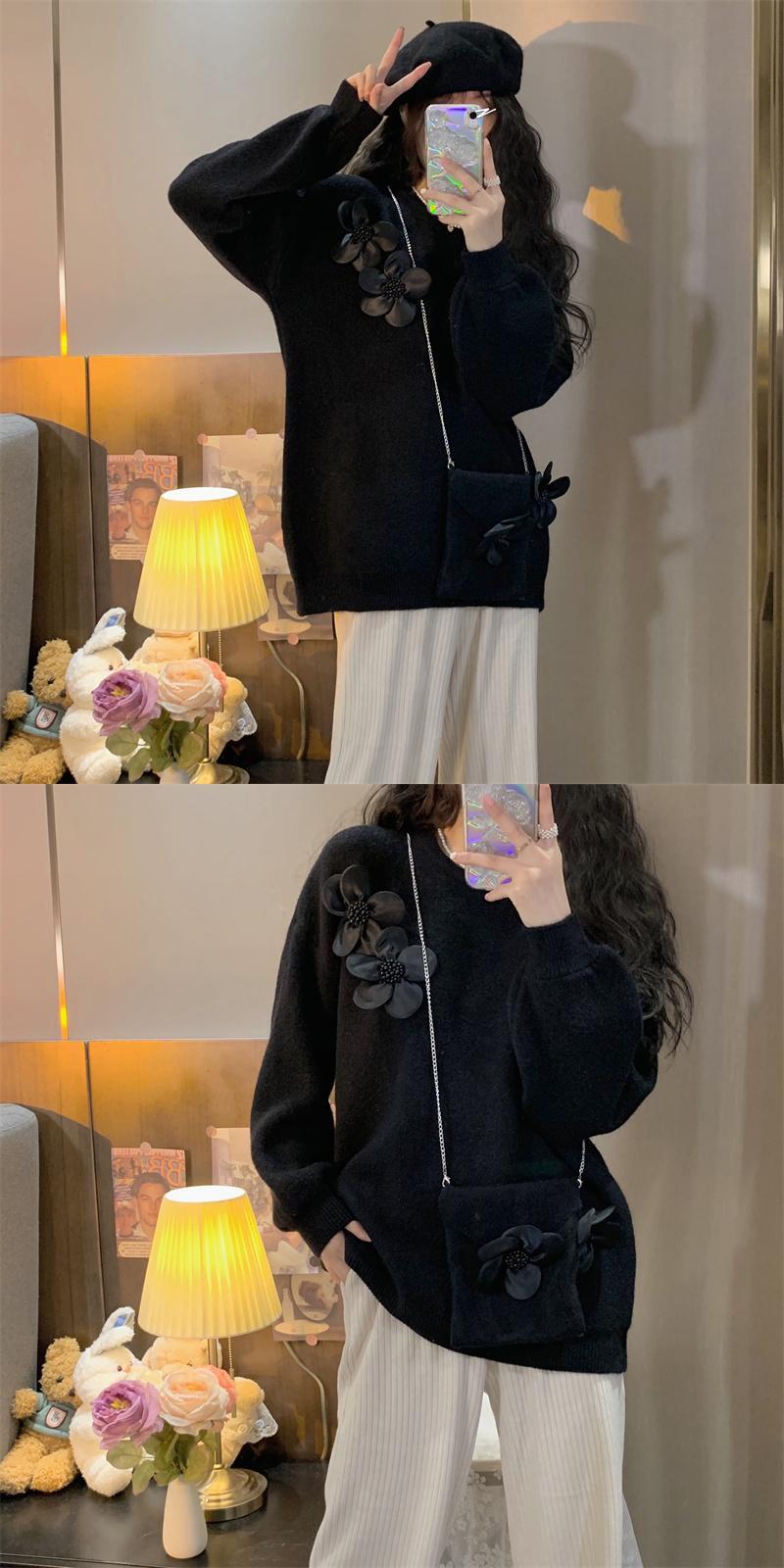 ルーズセーター レディースオータムウィンターニットブラウス 秋物 冬物 フラワーデザイン 萌量不足86783315052