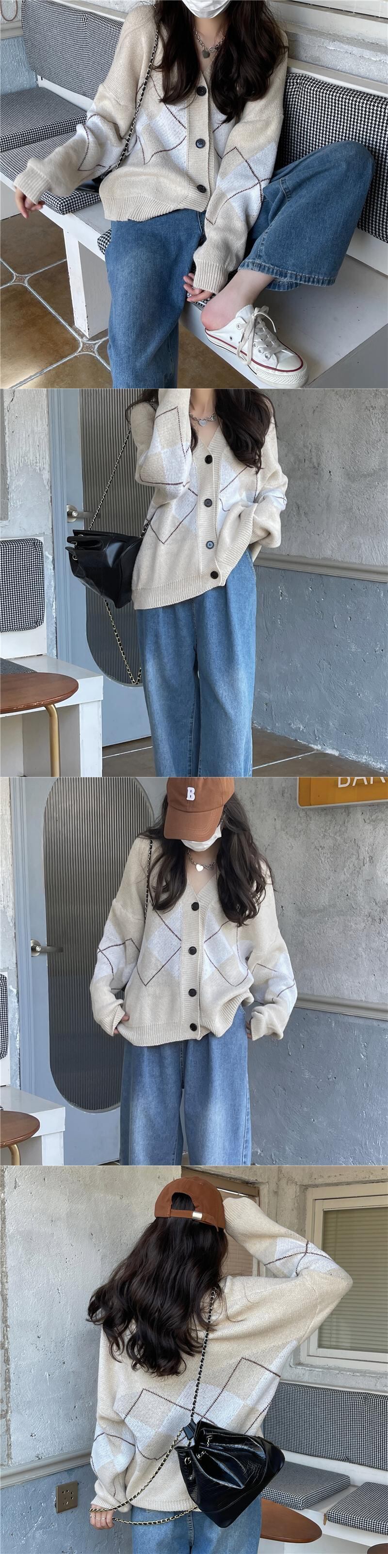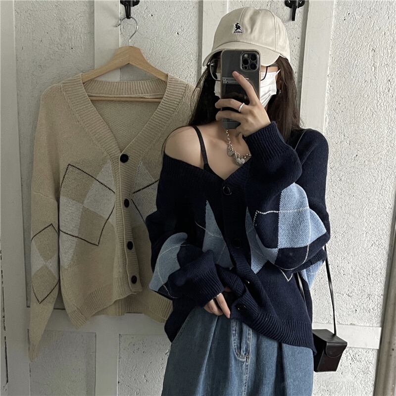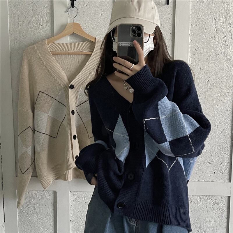 Vネックセーター ジャケット オータムウィンタースタンダード レトロ 秋物 冬物 萌量不足99462856837