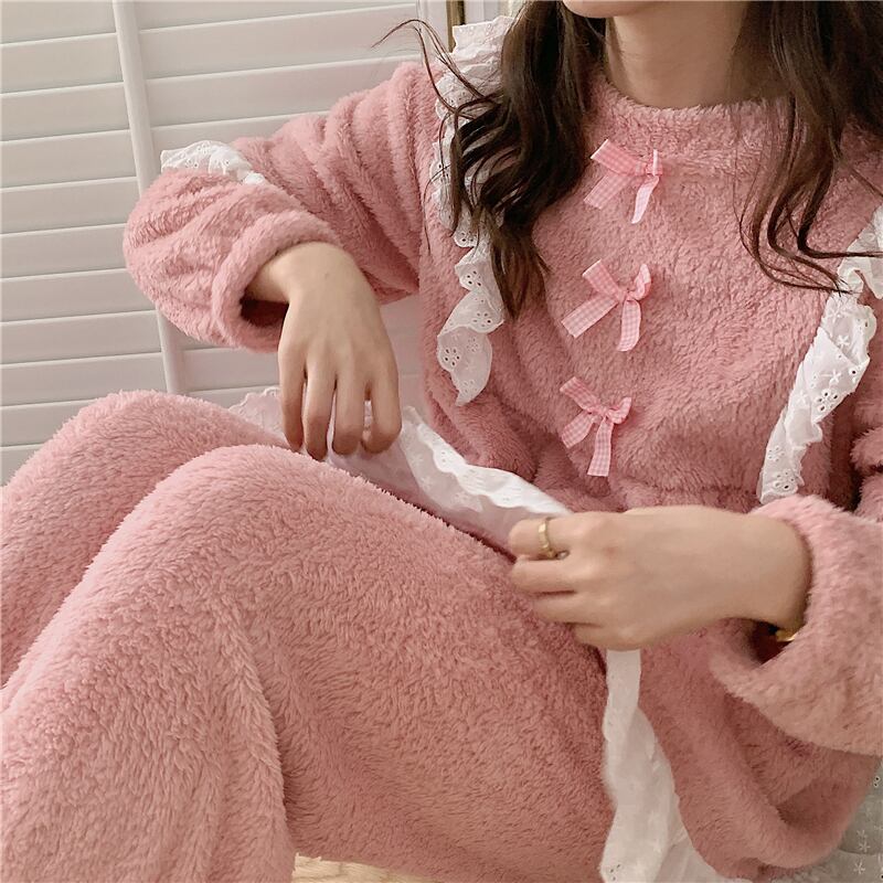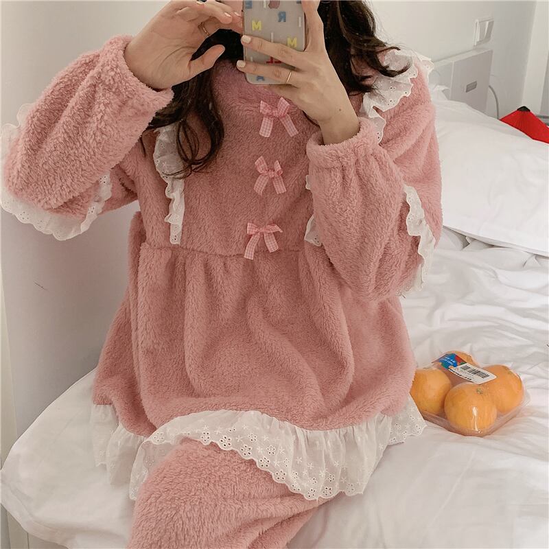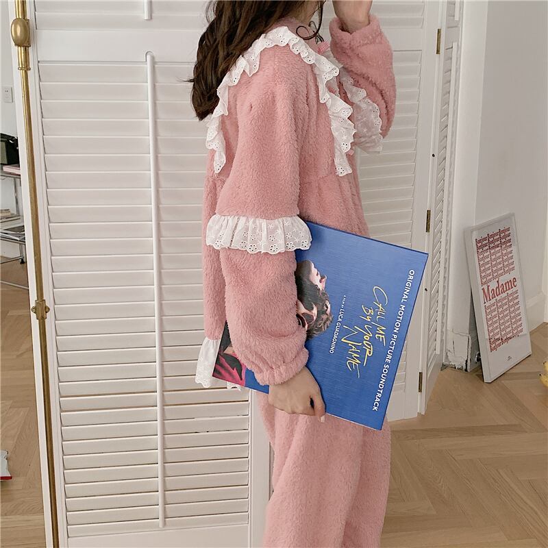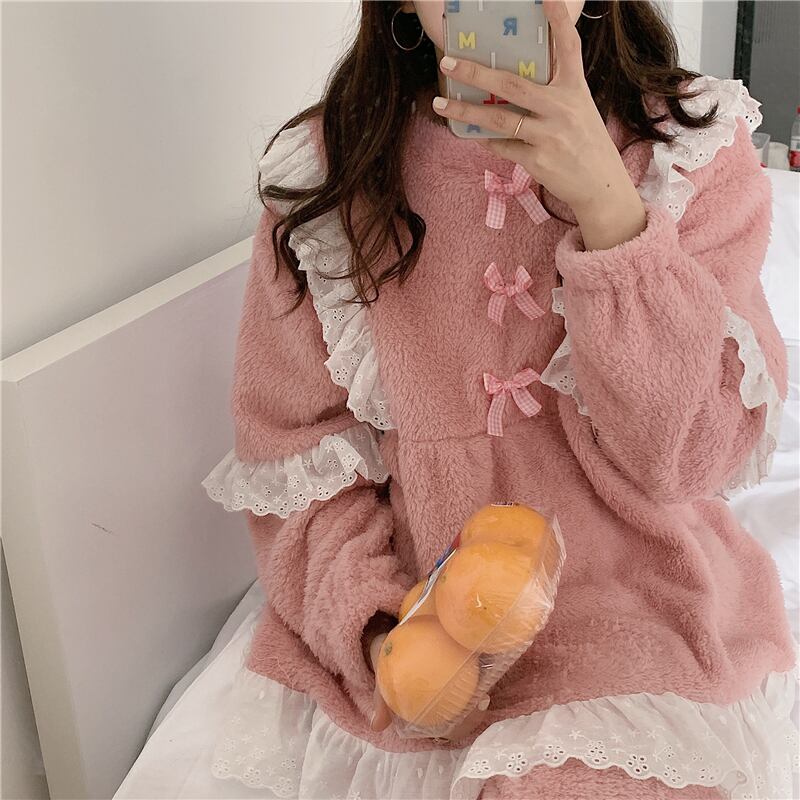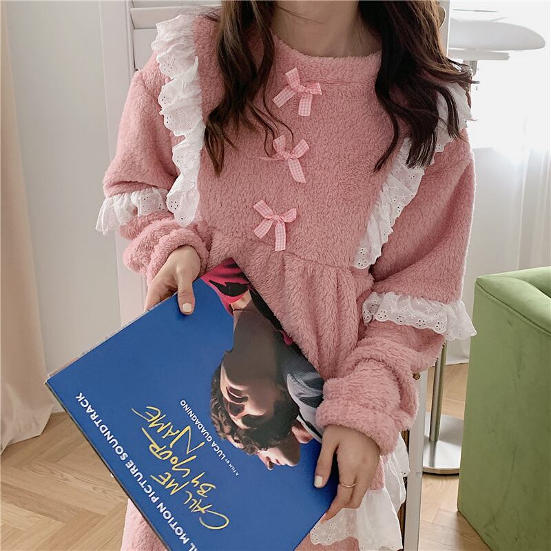 レースコーラルレディースオータムウィンターフランネル ロング 大人ガーリー スウィート キュート カジュアル 秋物 冬物 萌量不足65813906960