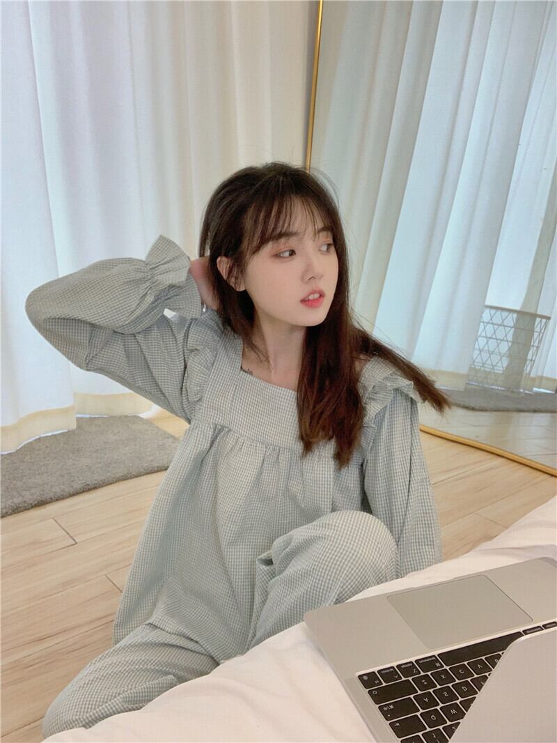 グリーン格子柄オータム ロング 秋物 萌量不足91713324931