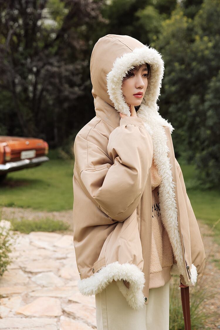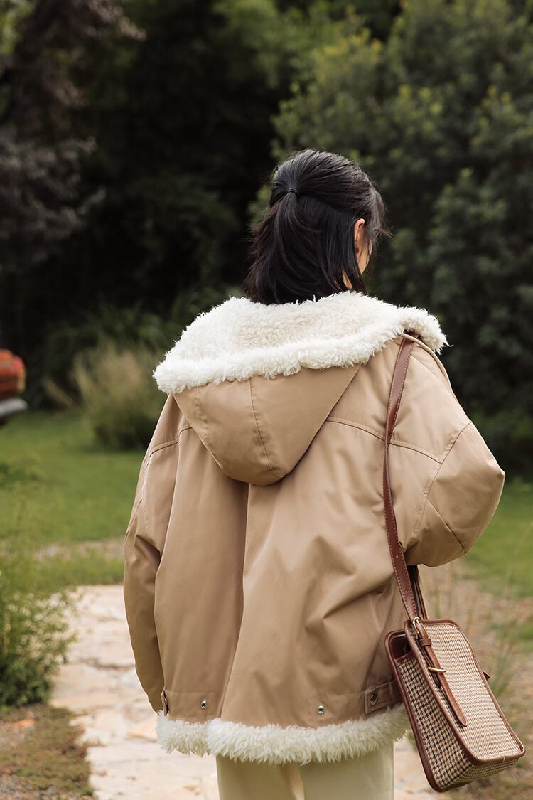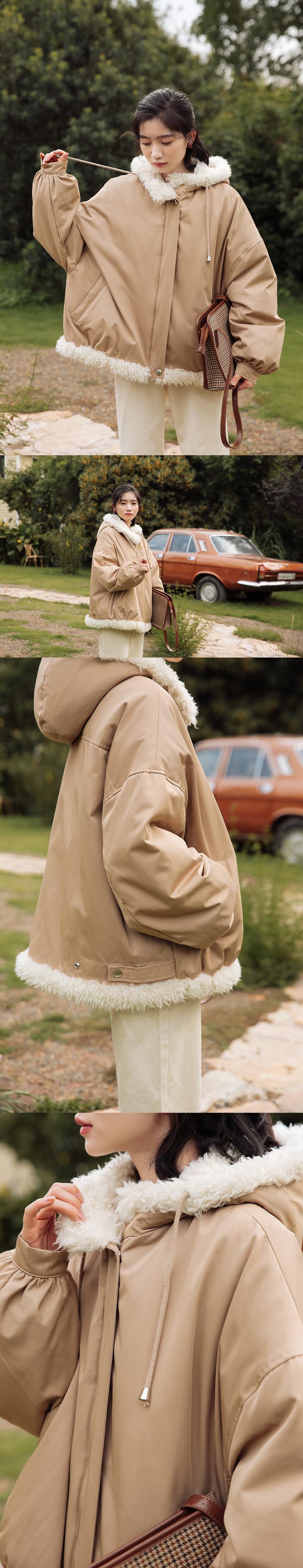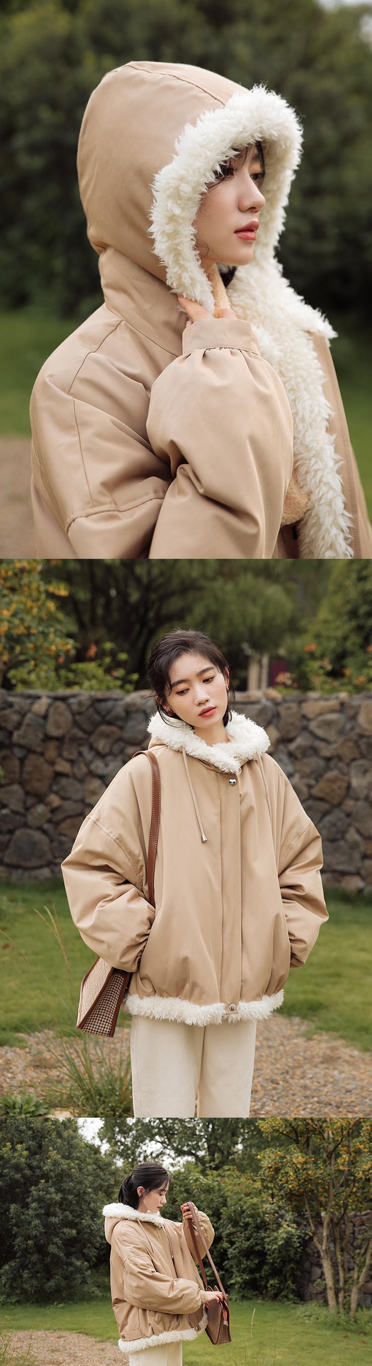 ウールベルベットジャケット ウィンターフードコート コットン 冬物 萌量不足68665124605