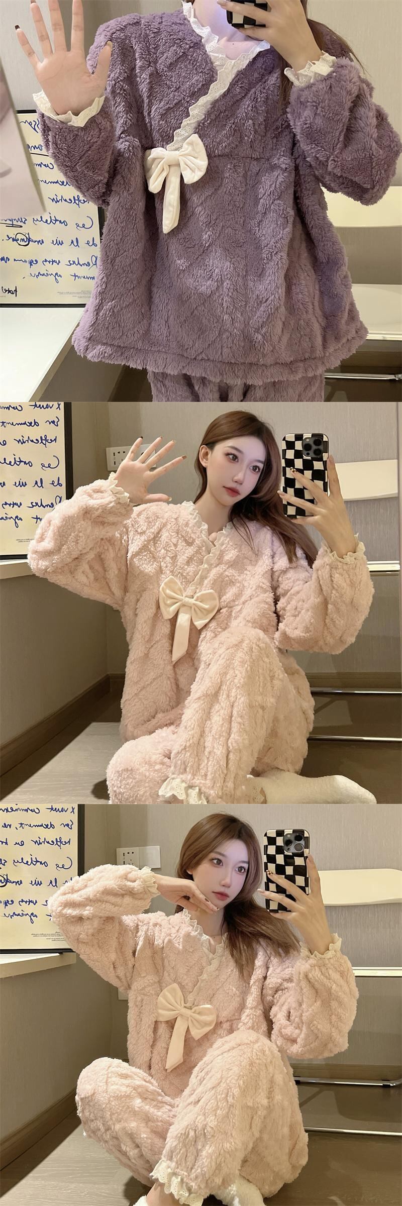 レースベルベットレディースウィンター リボン 冬物 萌量不足19989849311