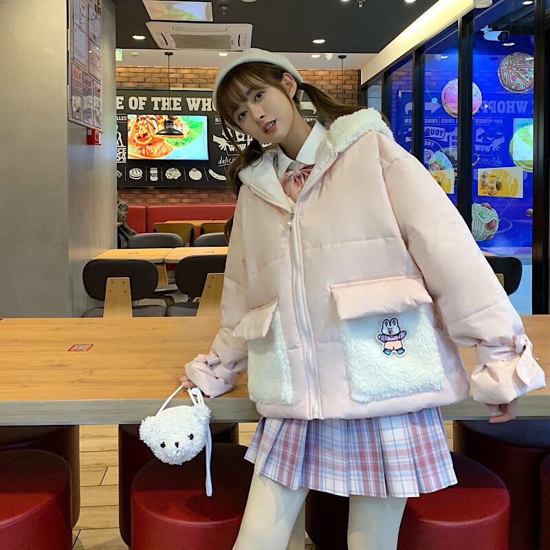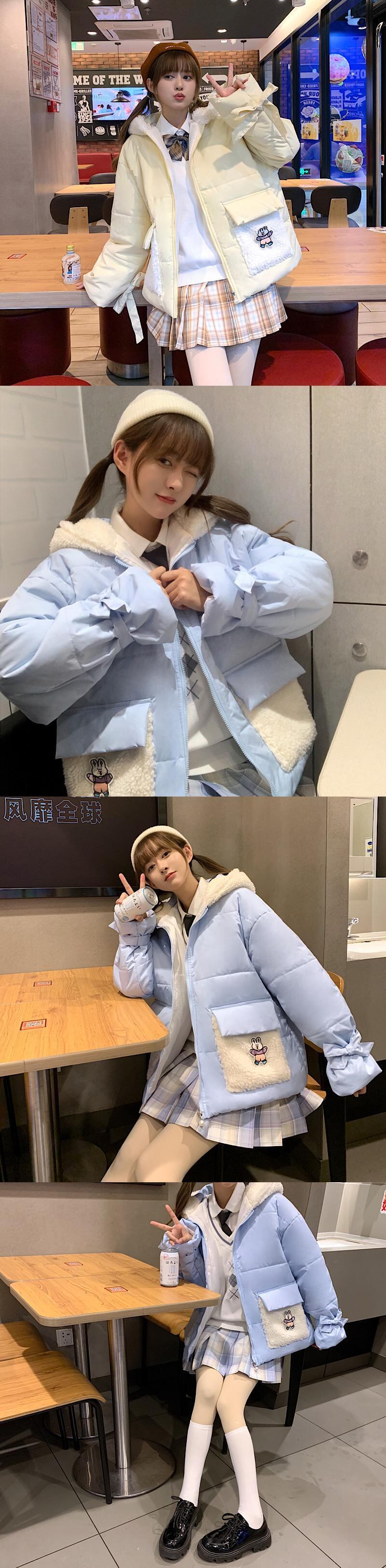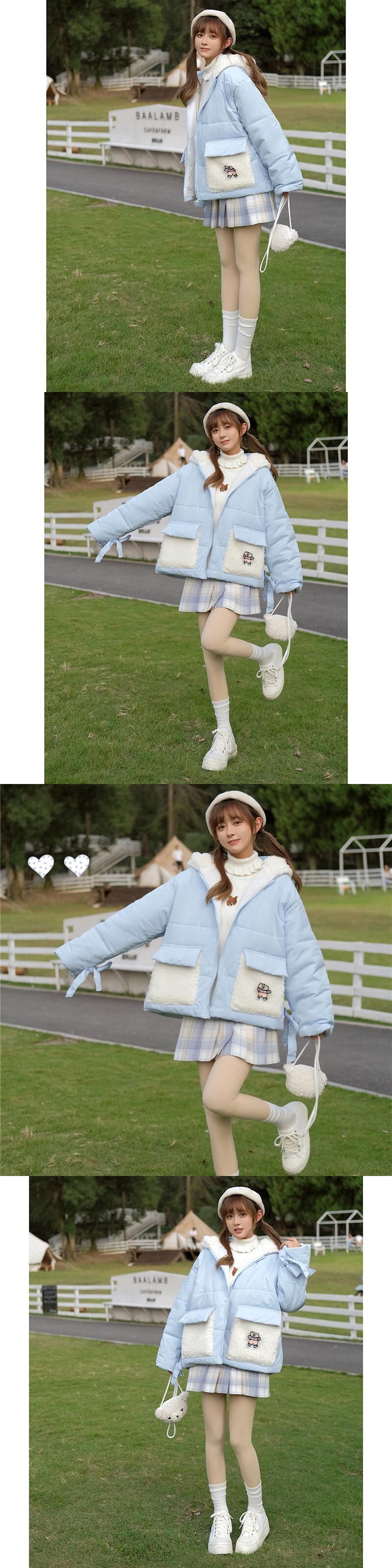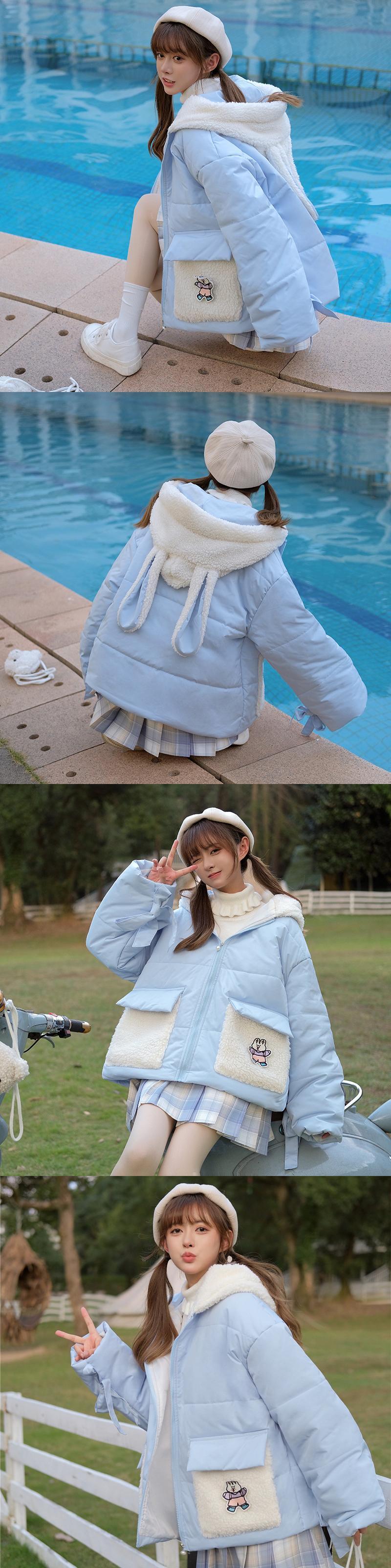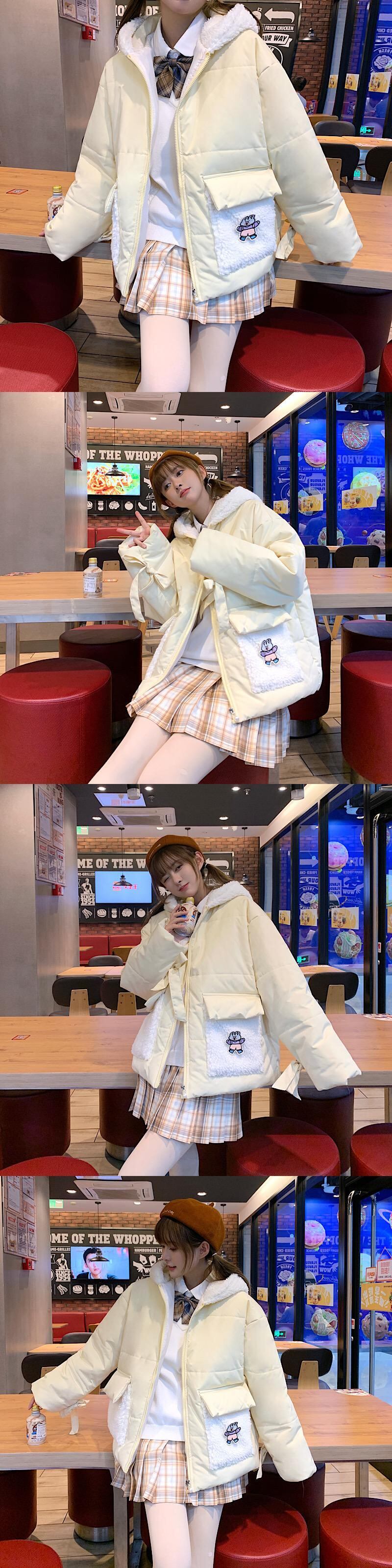 ウィンターフードジャケット コットン 大人ガーリー スウィート キュート カジュアル 冬物 ステッチ 萌量不足19595680912